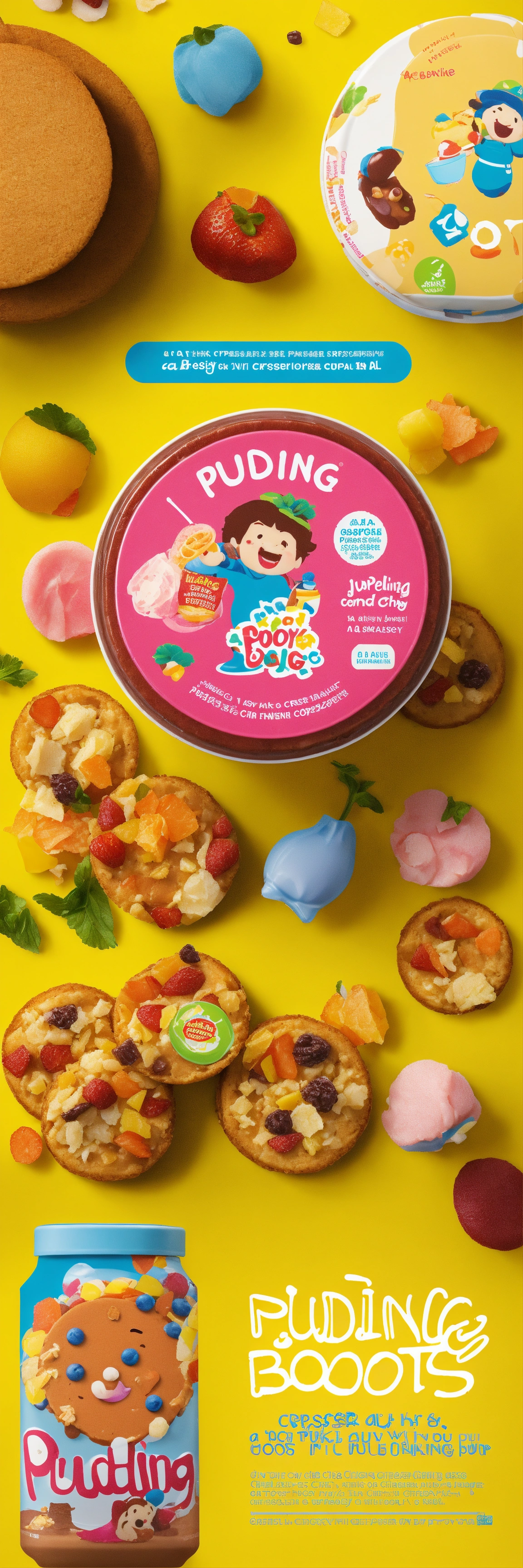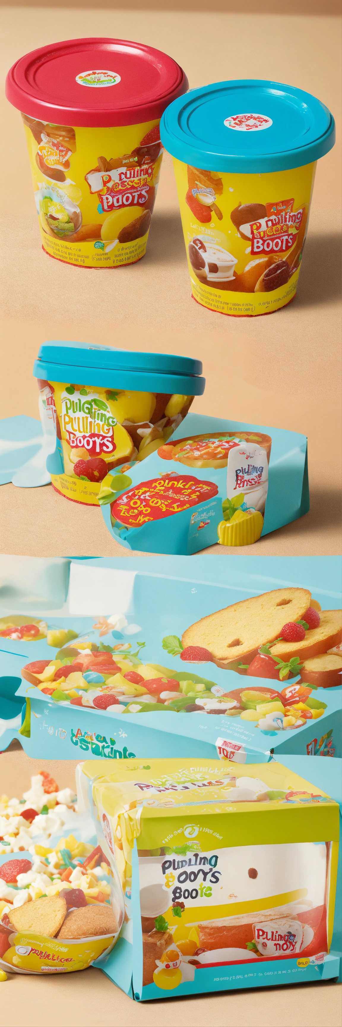Design packaging for a toy ‘a crisper that can’t accommodate junk food’ brand named ‘pudding boots’