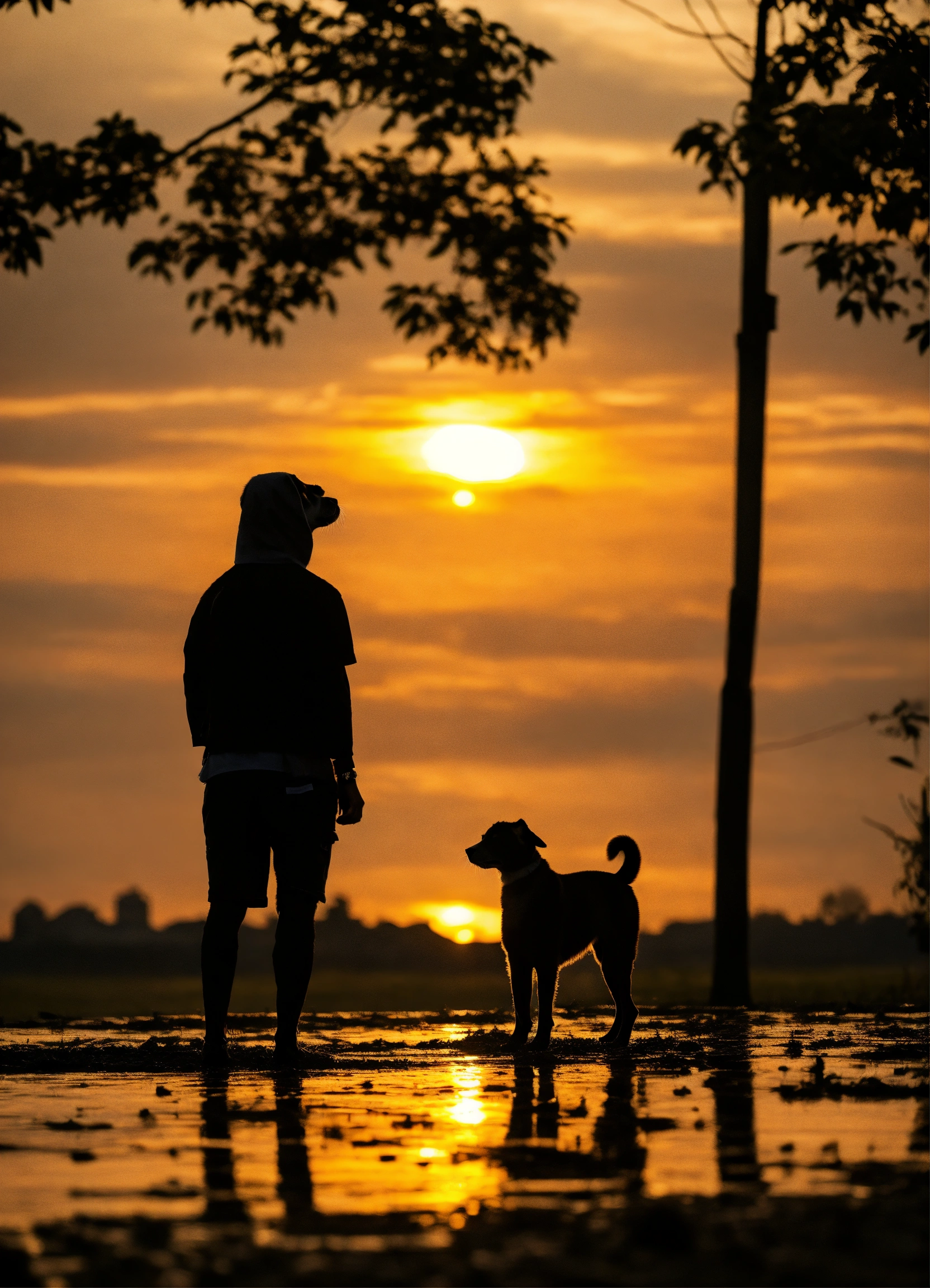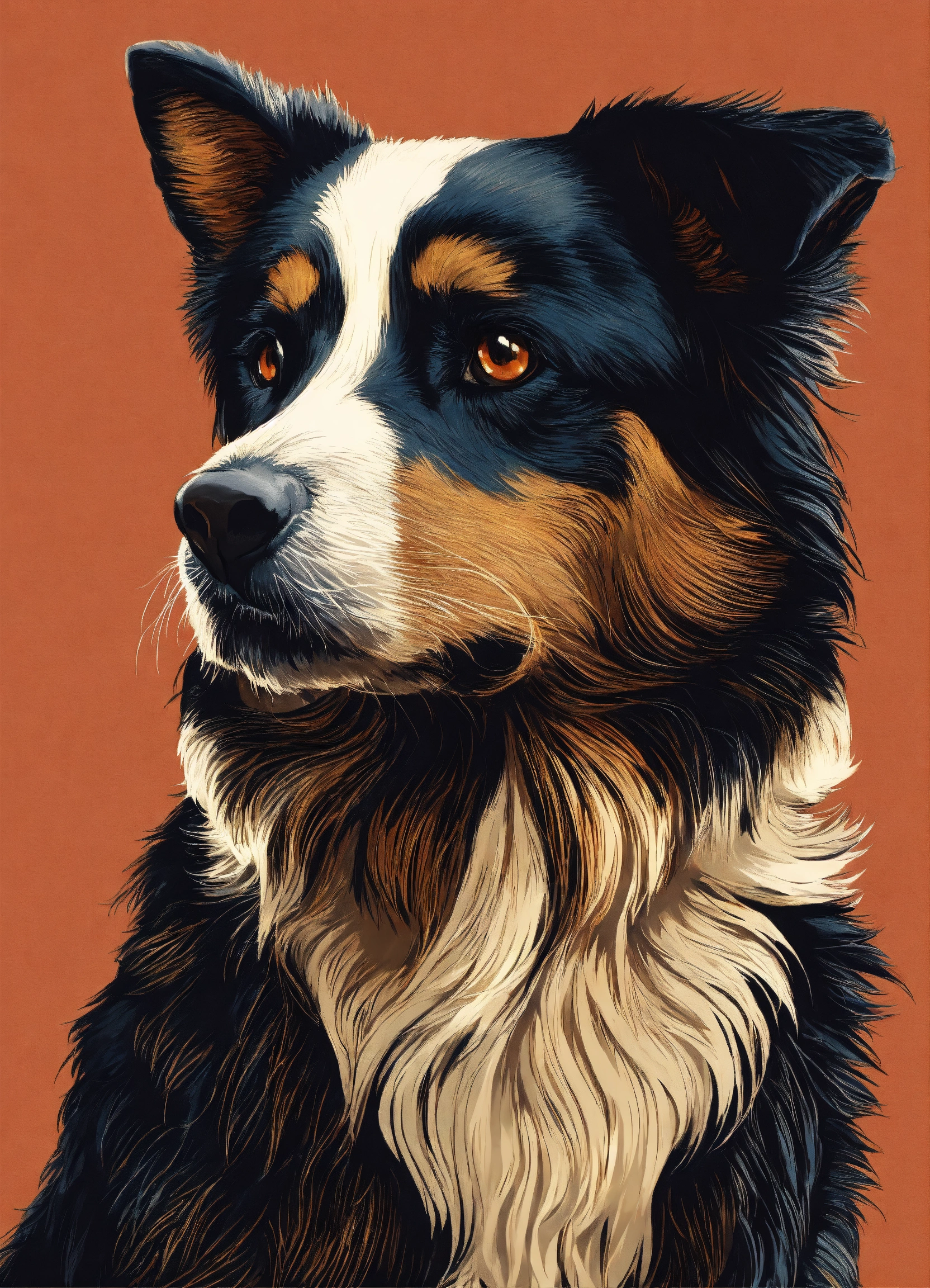 Siluet anjing yang terbuat dari kumpulan garis berwarna putih