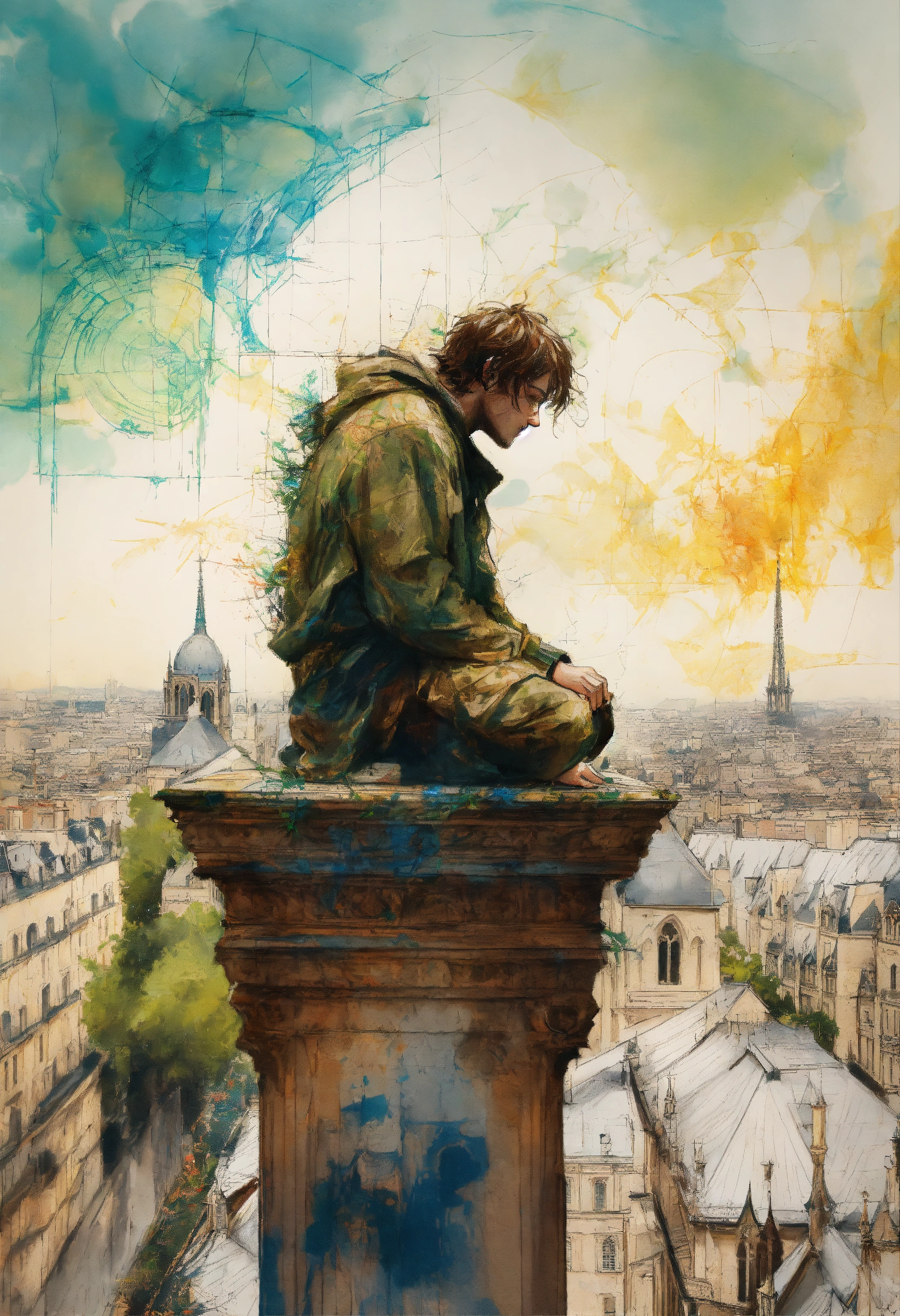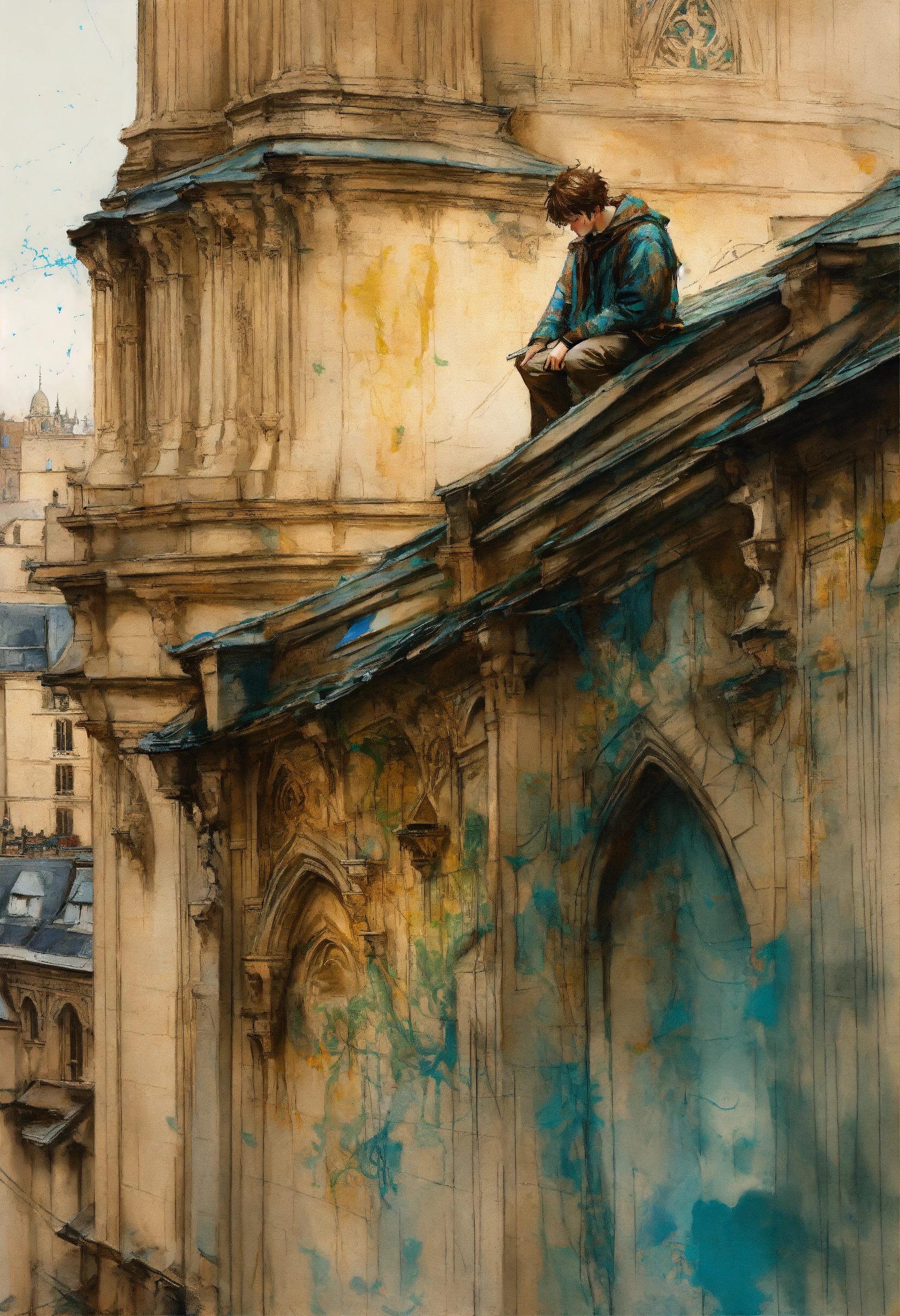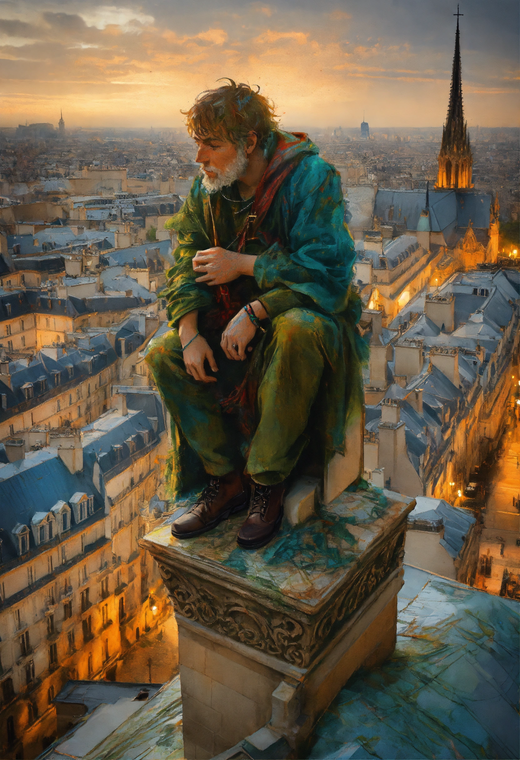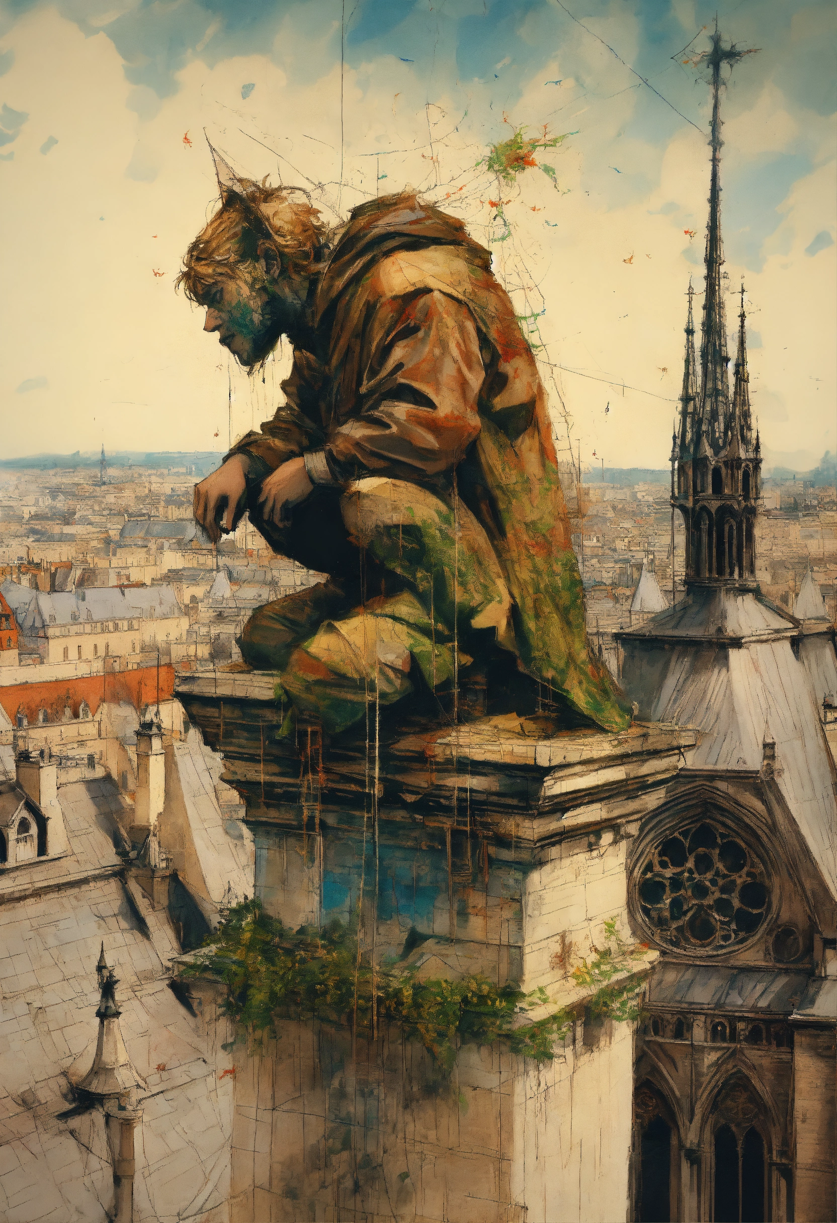 Quasimodo on the roof of notre dame de paris cathedral by carne griffiths