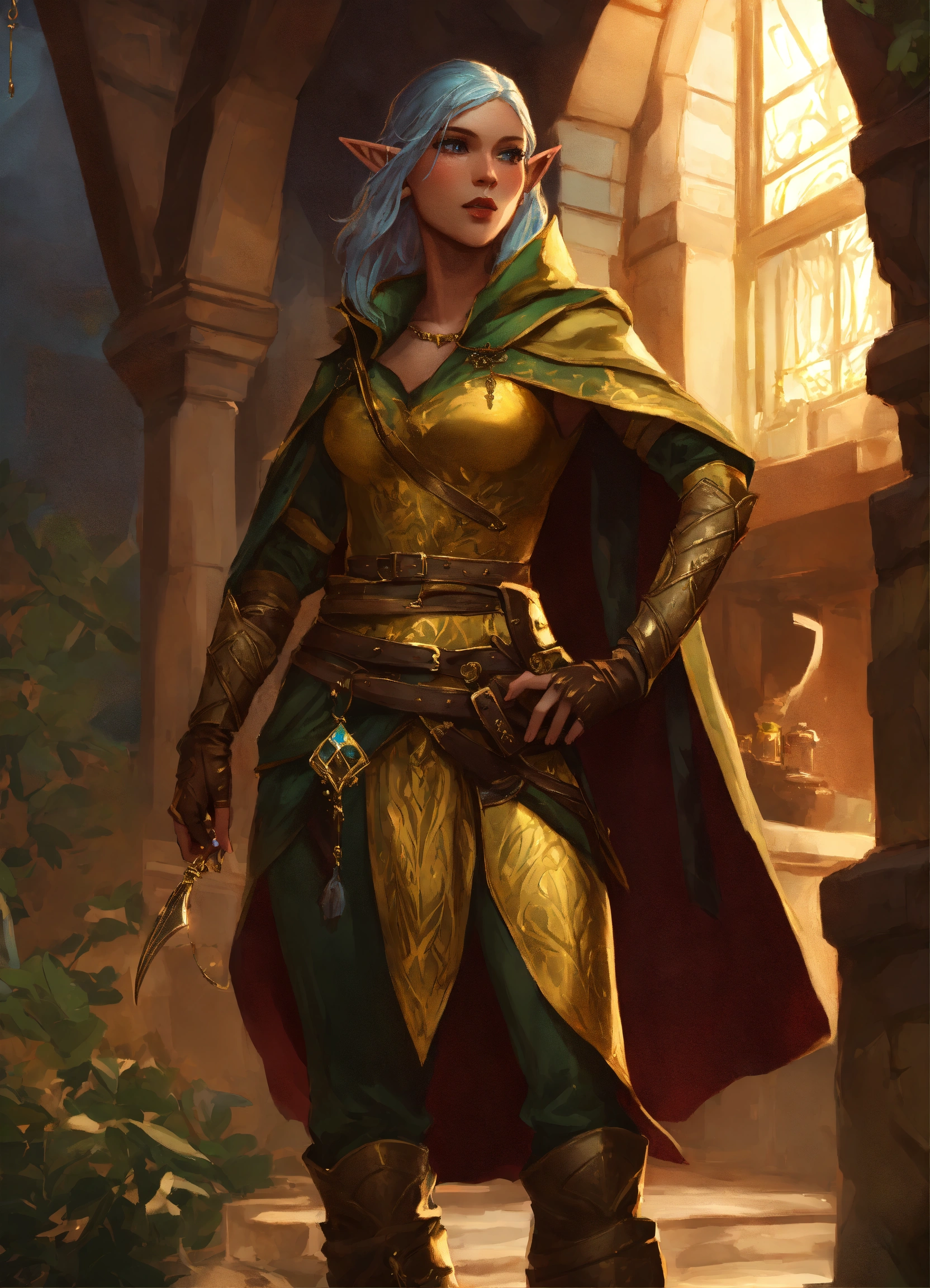 Half human half gold elf female thief d&d