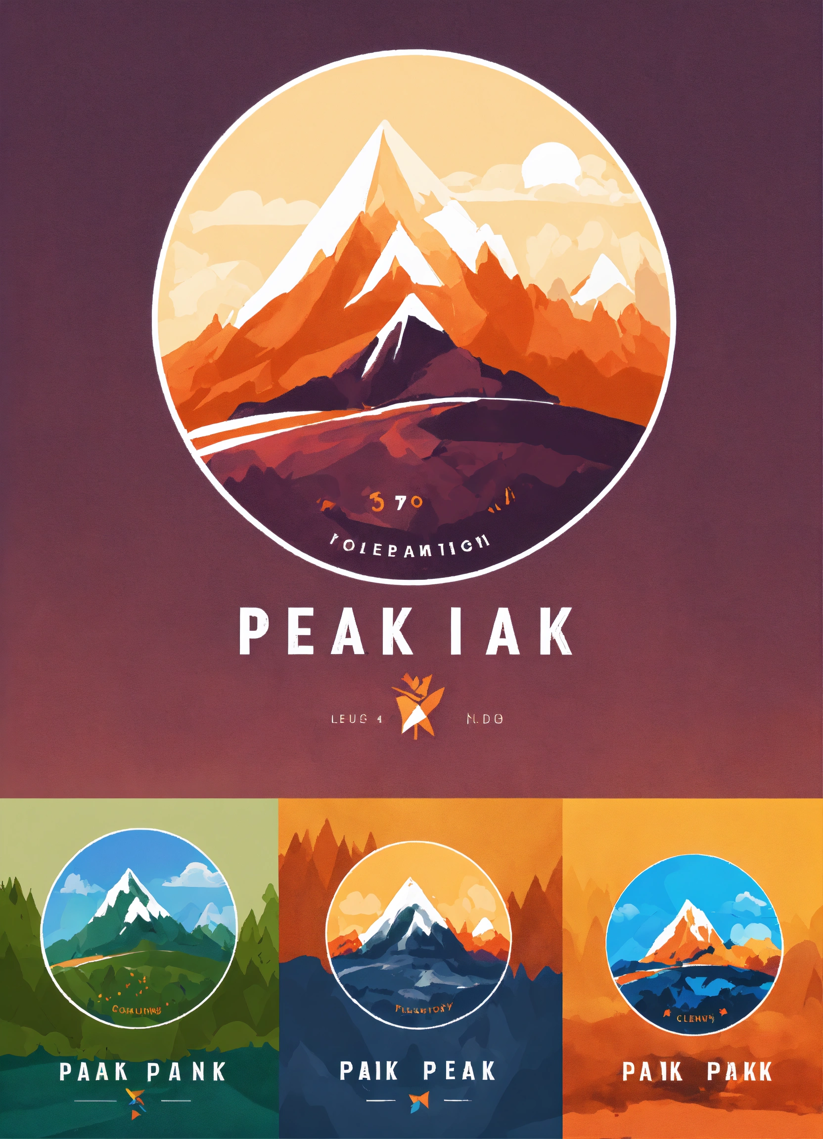 Create me a logo for my company picnic peak. the logo should be simple and easy to remember. the overall image should be smooth, pleasing to the eye, have a clean 4k look, with a blurred background.