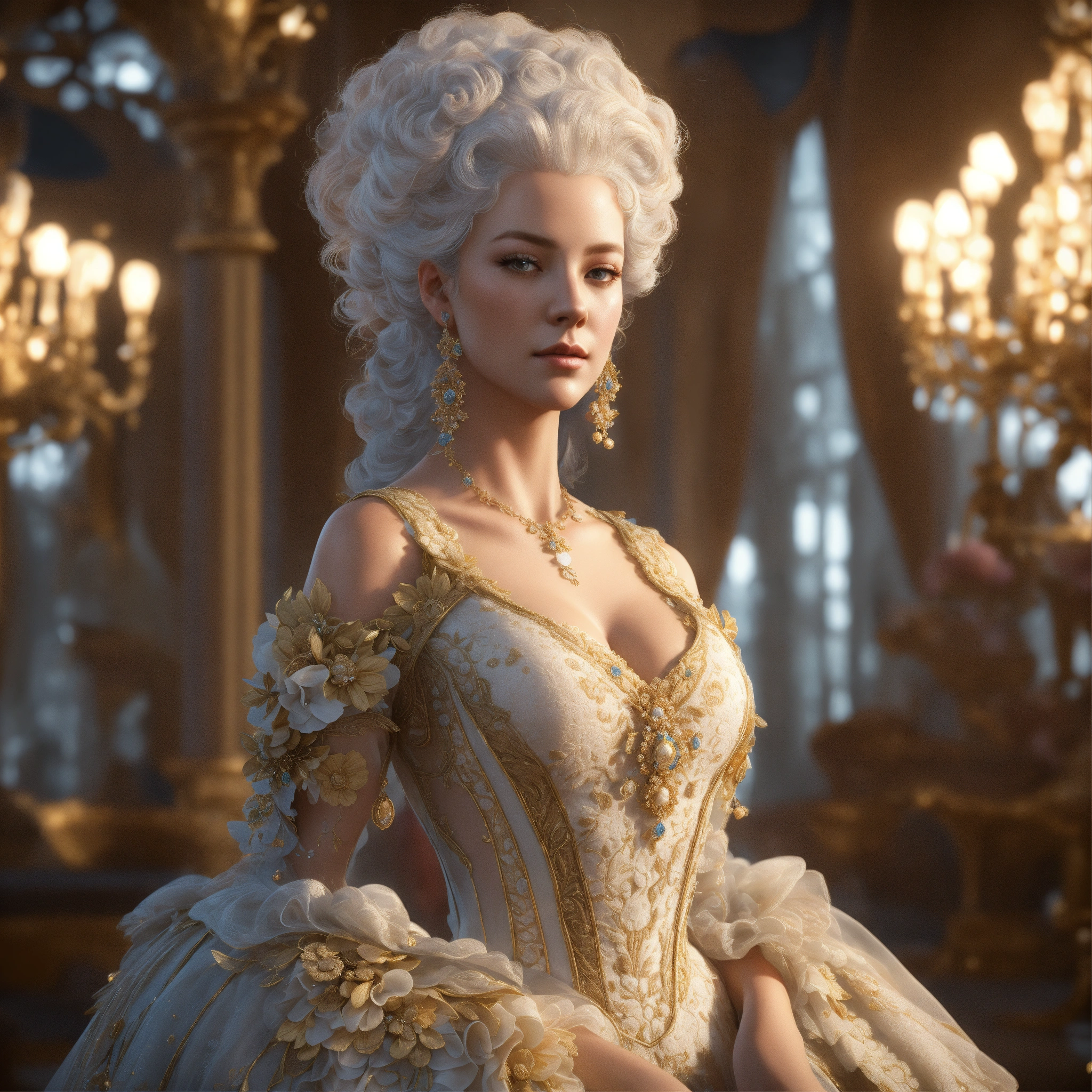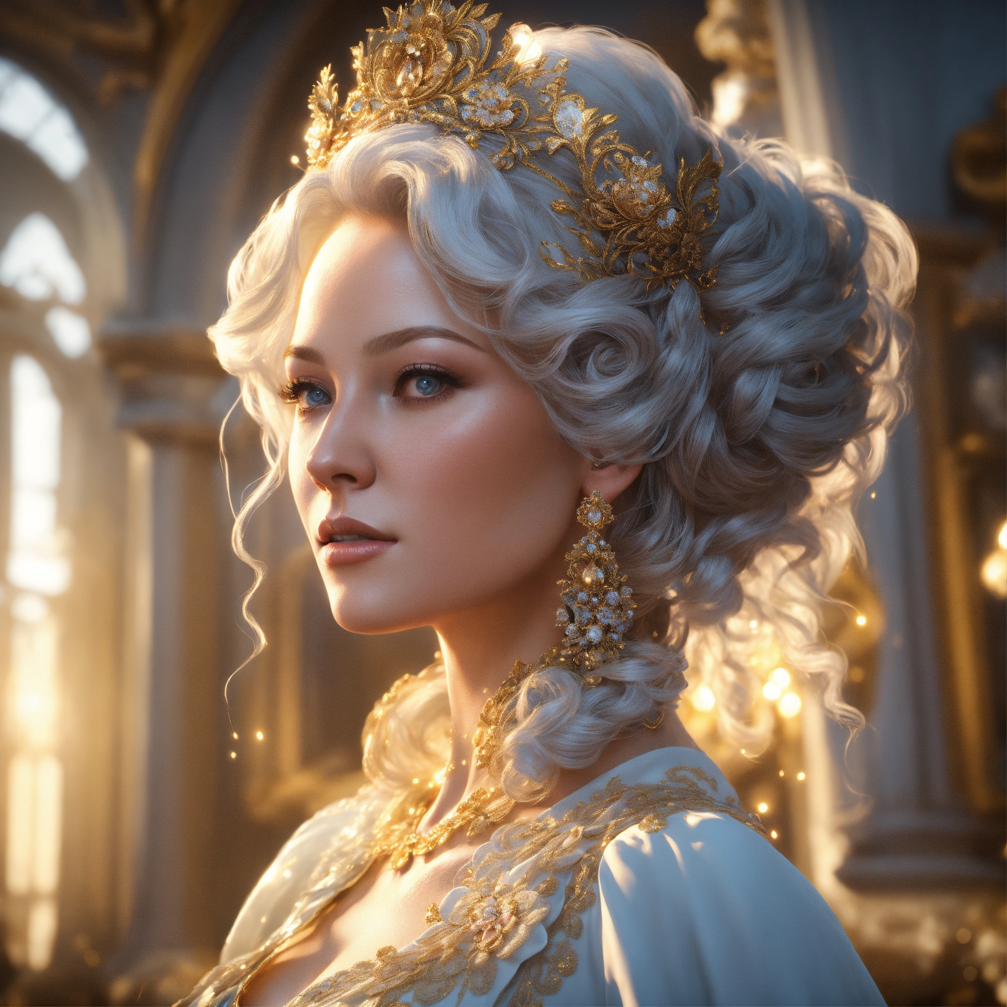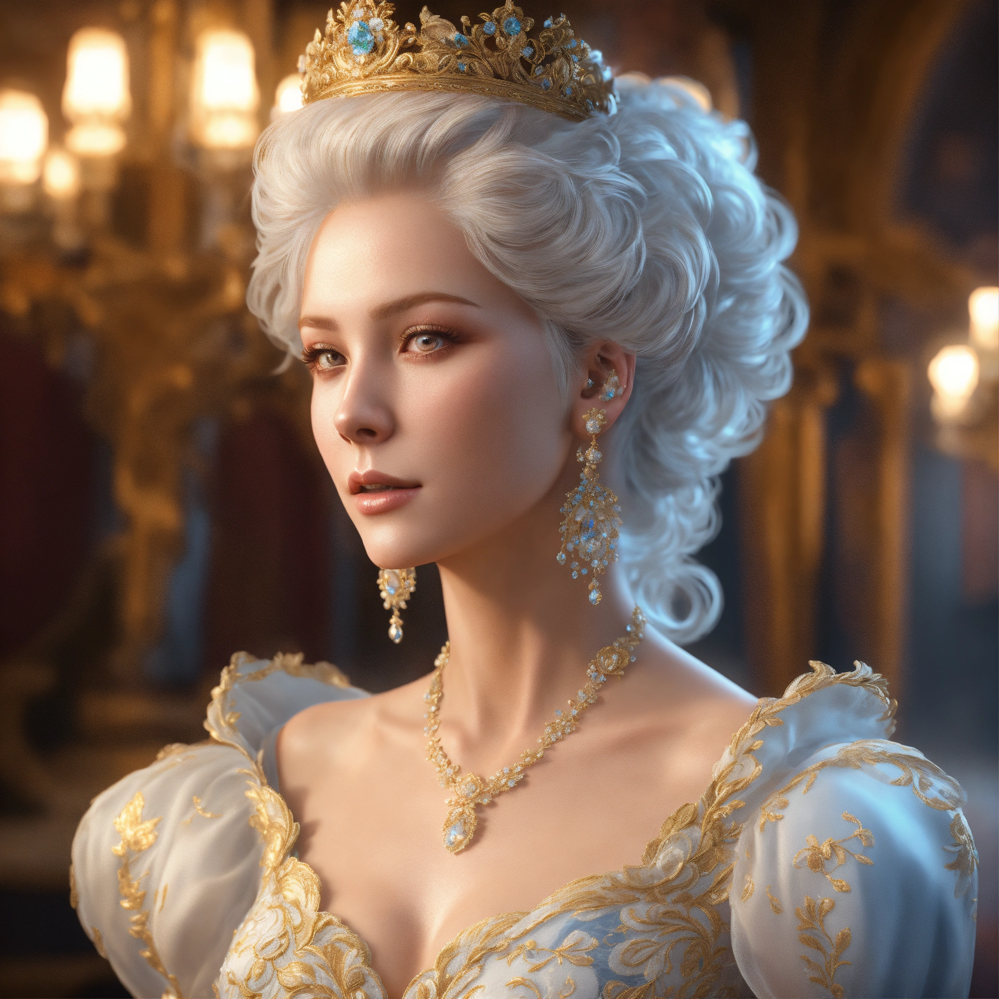 "beautiful rococo princess", 52 years old, ai, elaborate gown, massive white rococo hair, head and shoulders portrait, finely drawn eyes, 8k resolution concept art portrait dynamic lighting hyperdetailed intricately detailed splash art trending on artstation unreal engine 5 volumetric lighting