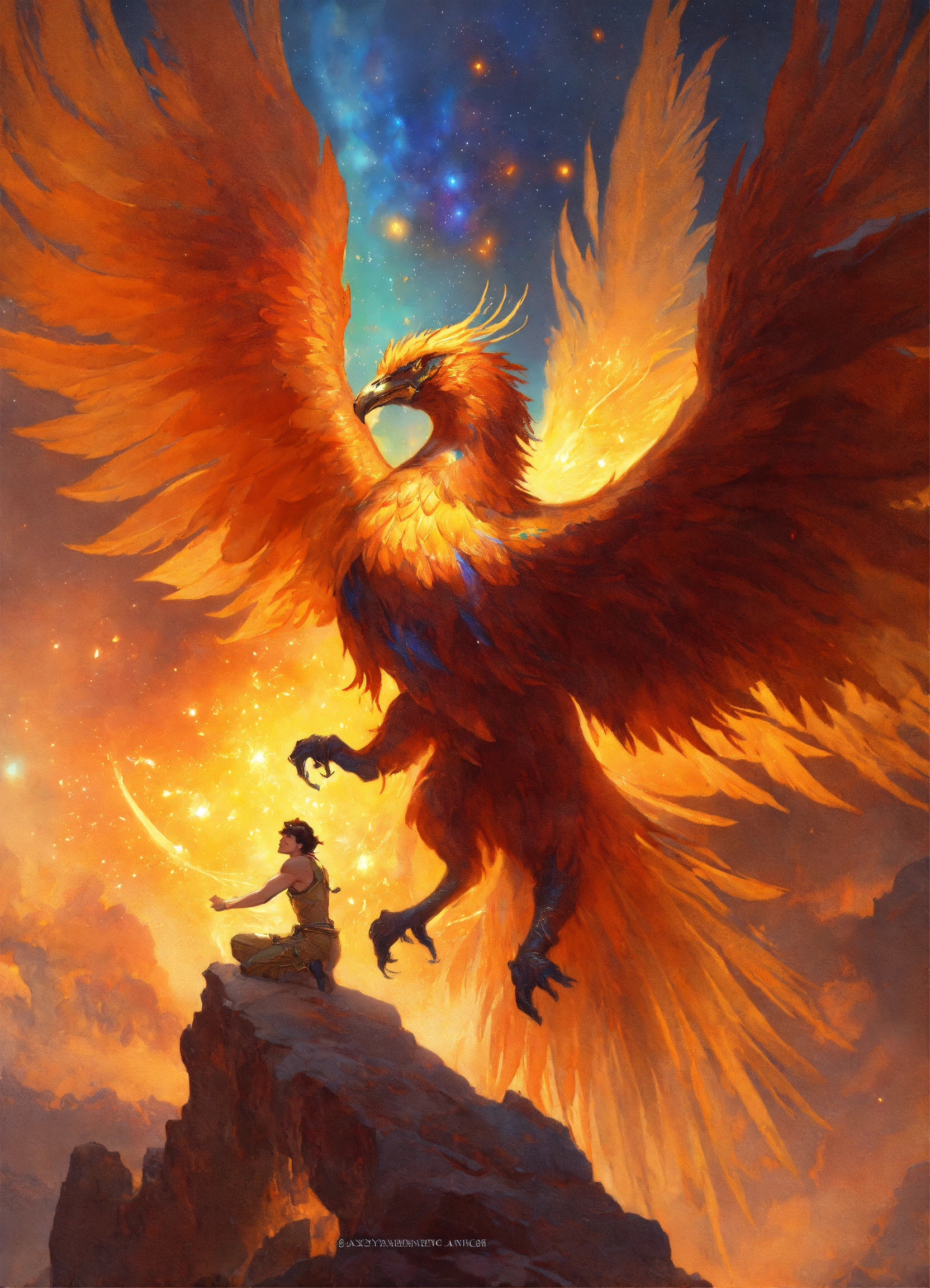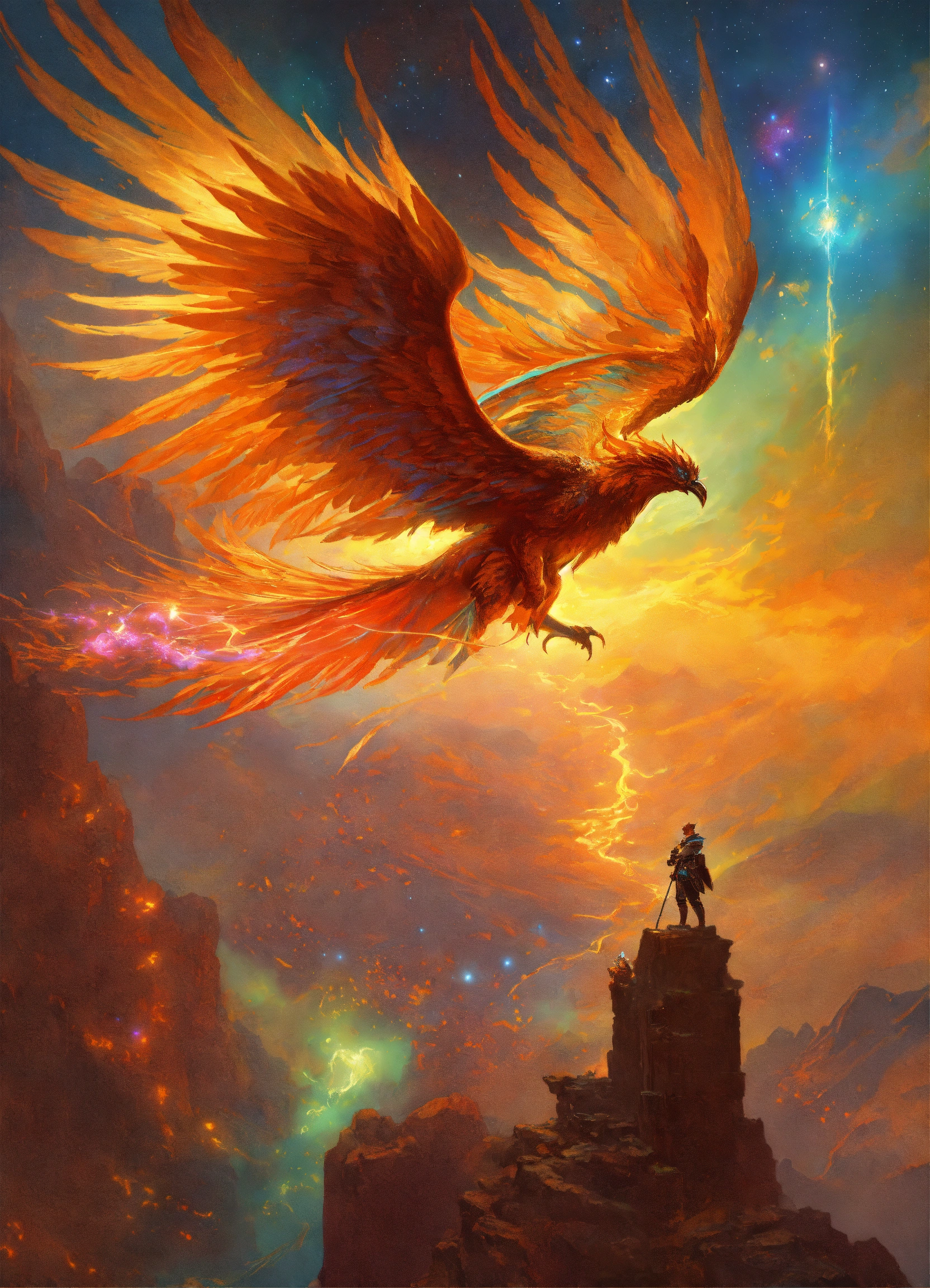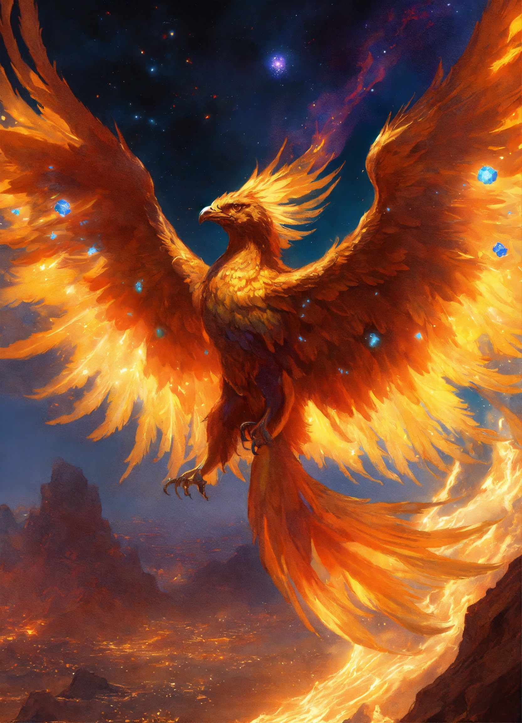Phoenix with galaxy and meteors, painting by gaston bussiere, craig mullins, j.c. leyendecker, 8k, dynamic lighting, colorfull lighting