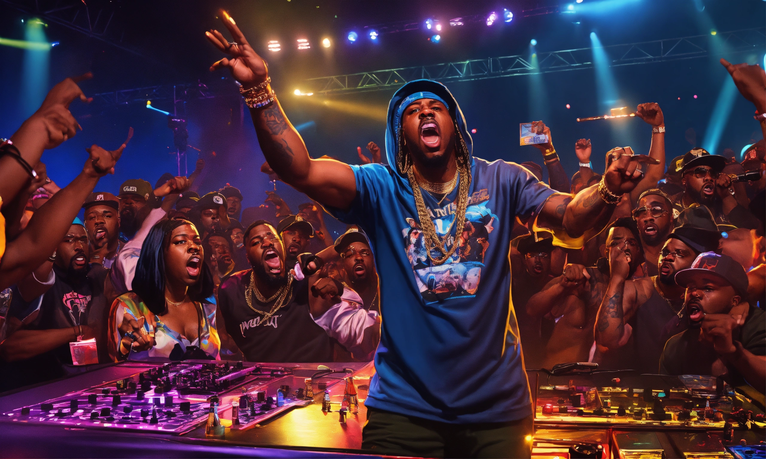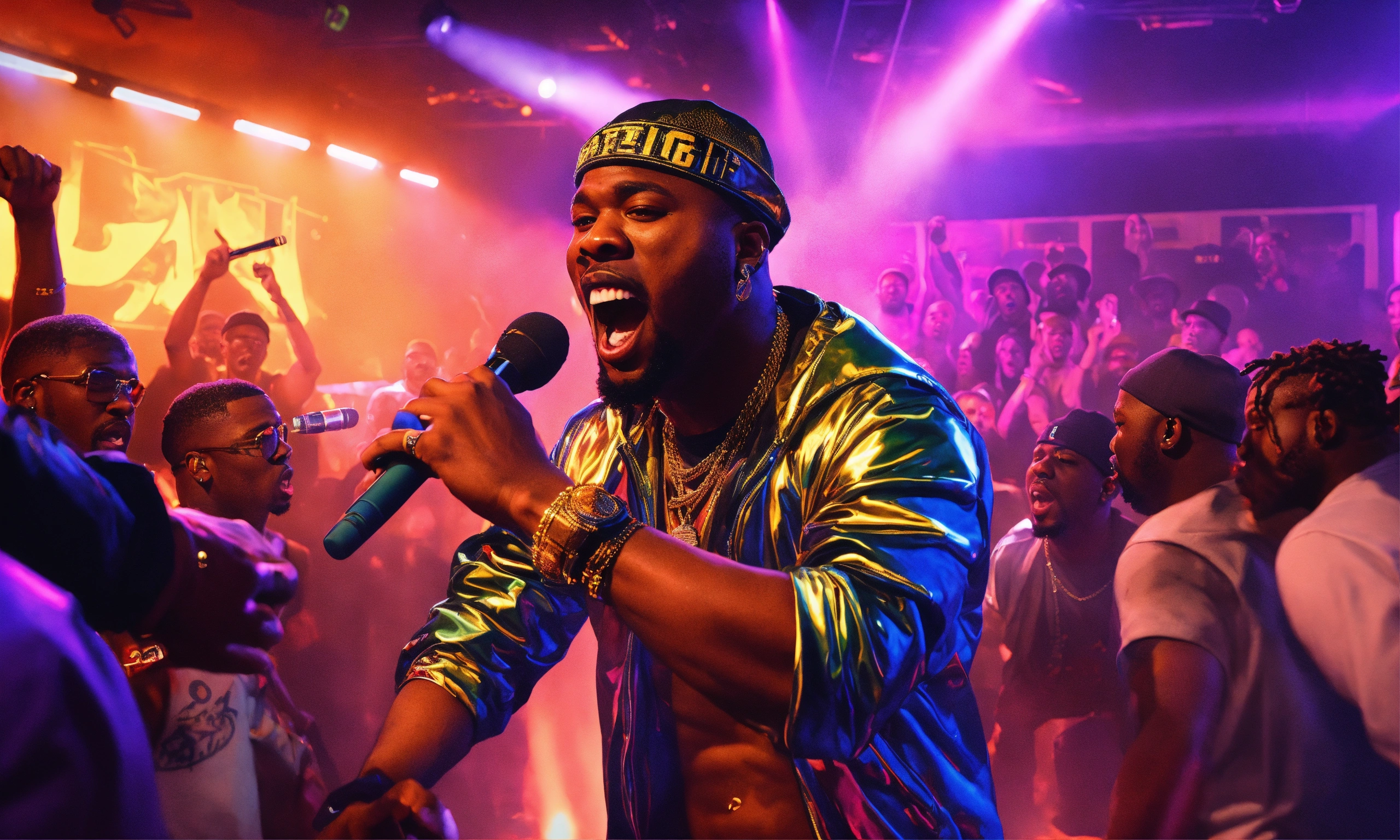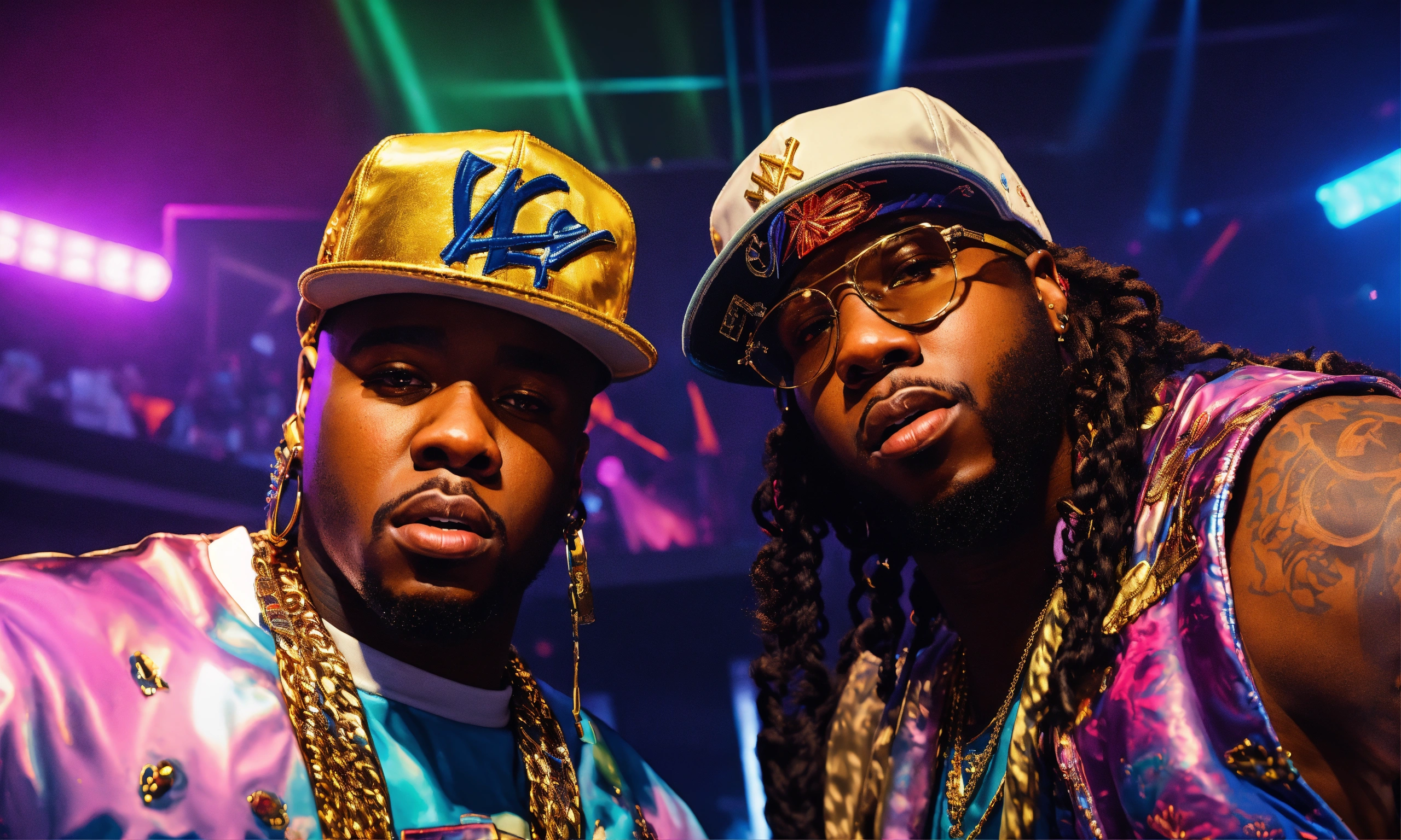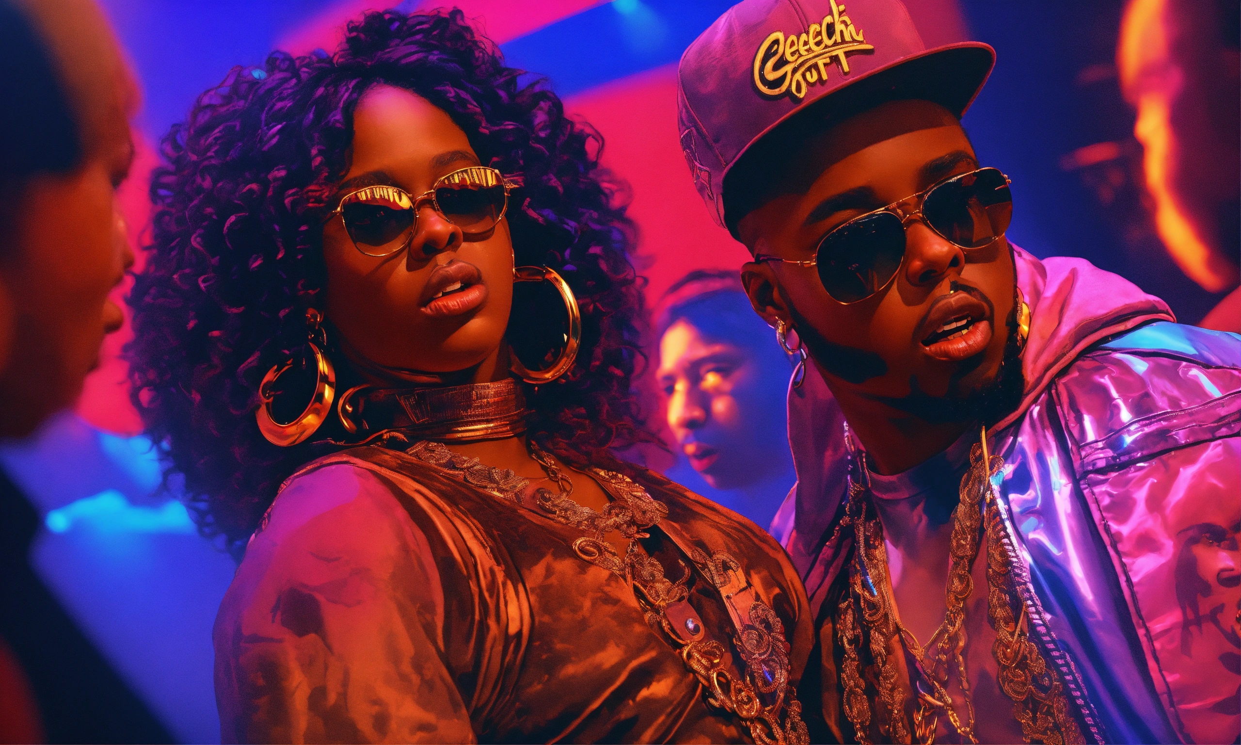 Pop art, hyperrealist portrait of battle rapper "geechi gotti " vs " remy ma" in a url rap battle league battling another rapper on stage cheering in background, fancy interior fantasy art, photo realistic, dynamic lighting, art station, poster, volumetric lighting, very detailed faces, 4 k, award winning
