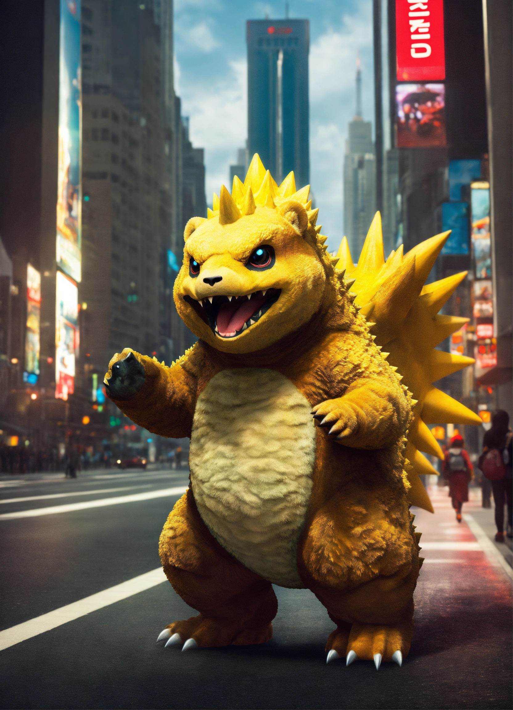 Teddiursa pokemon as godzilla