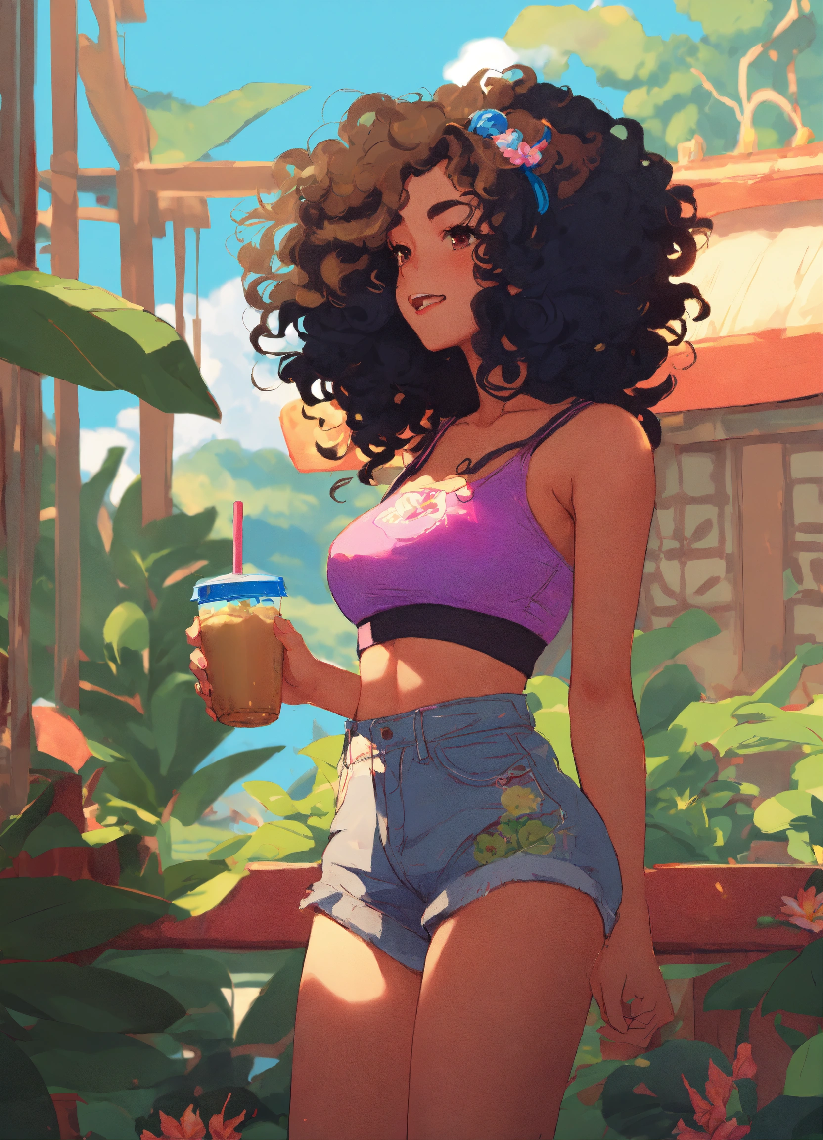 Buttocks enlargement, sporty, gym exercise, buttocks exercise, fitness, afro, boba tea vector, curly locks, joy, boba tea, milk tea, island girl, tropical, exotic flowers, boba tea, boba tea, cute girl, curly hair, cute waifu, afro, girlie, style of laurie greasley, studio ghibli, akira toriyama, james gilleard, genshin impact, trending pixiv fanbox, acrylic palette knife, 4k, vibrant colors, devinart, trending on artstation, low details.