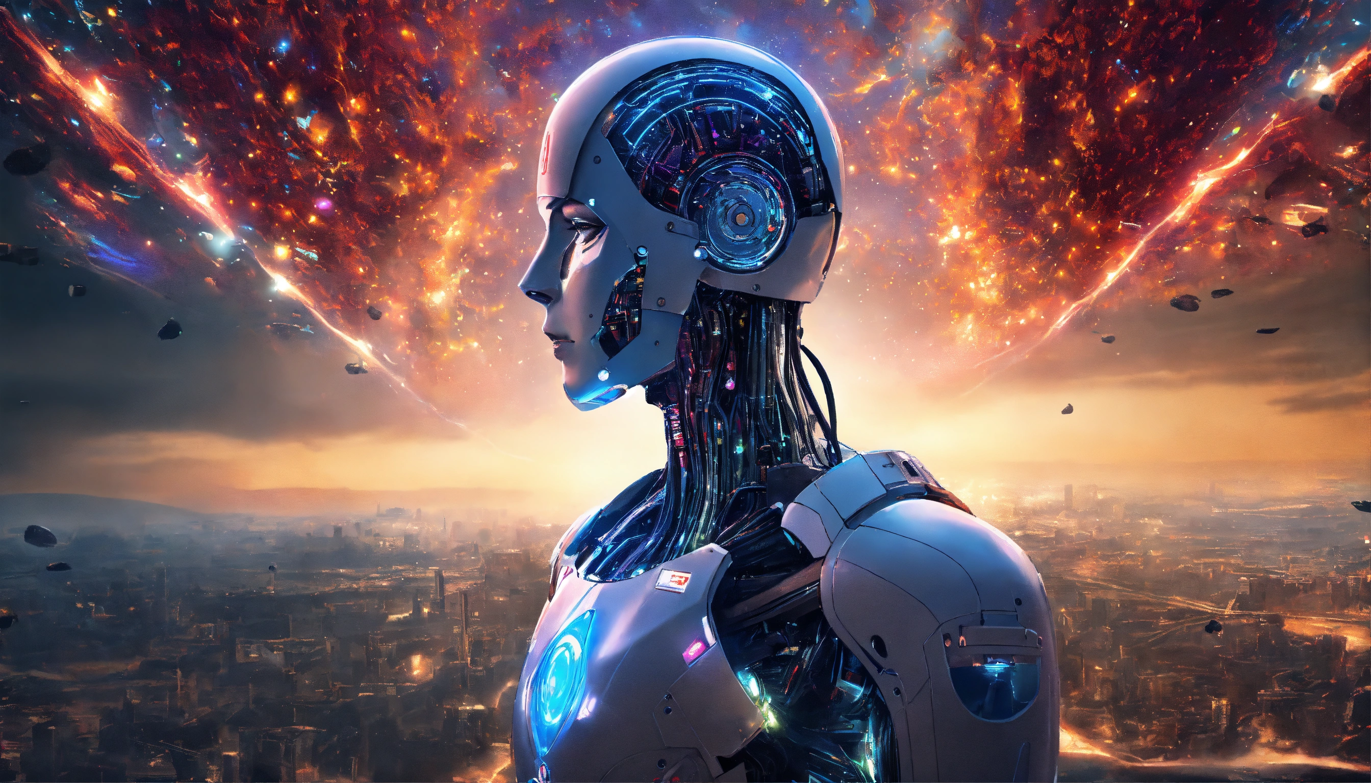 Una representación de la inteligencia artificial, como una imagen que represente la sabiduria como una herramienta que junto al ser humano está transformando el mundo.