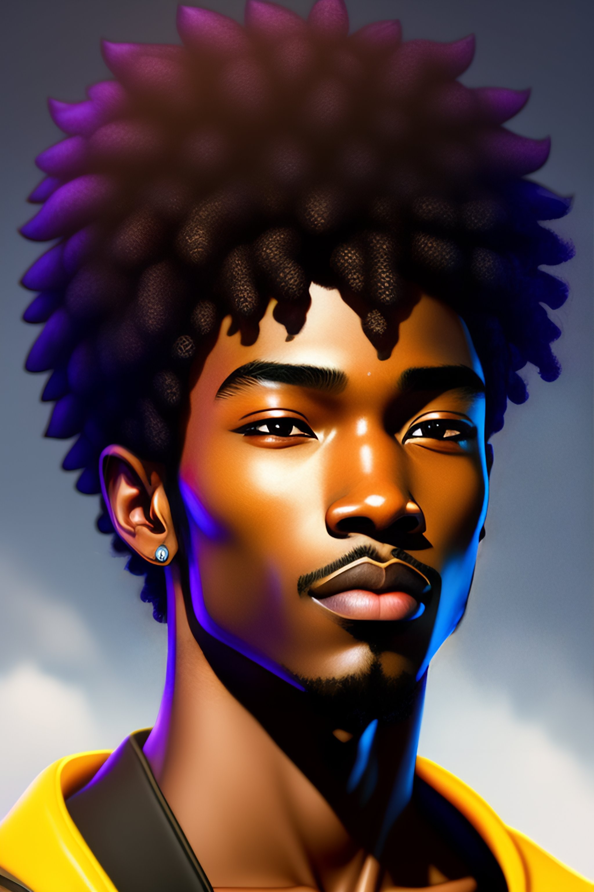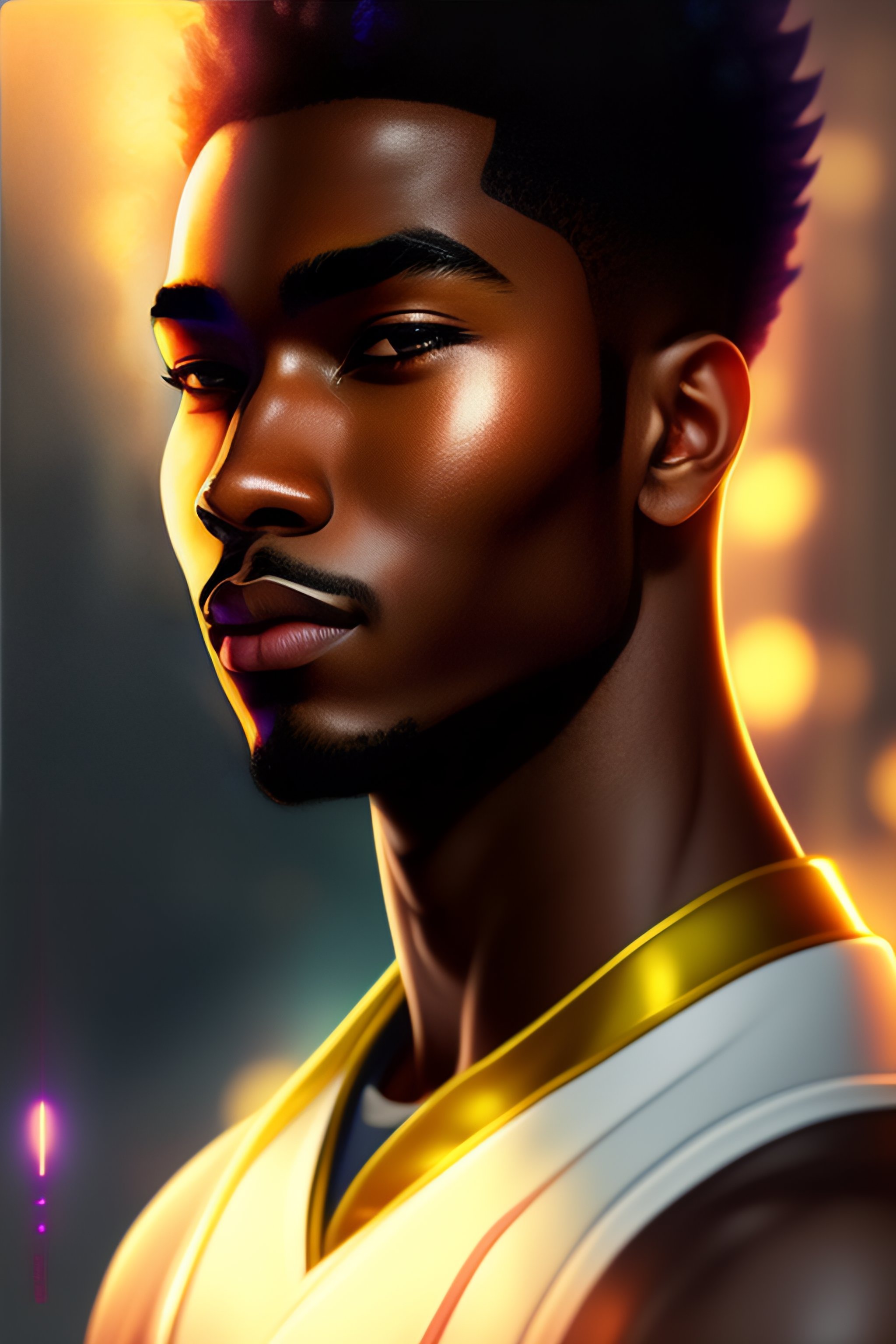 Male whos black mixedrace with light features anime style