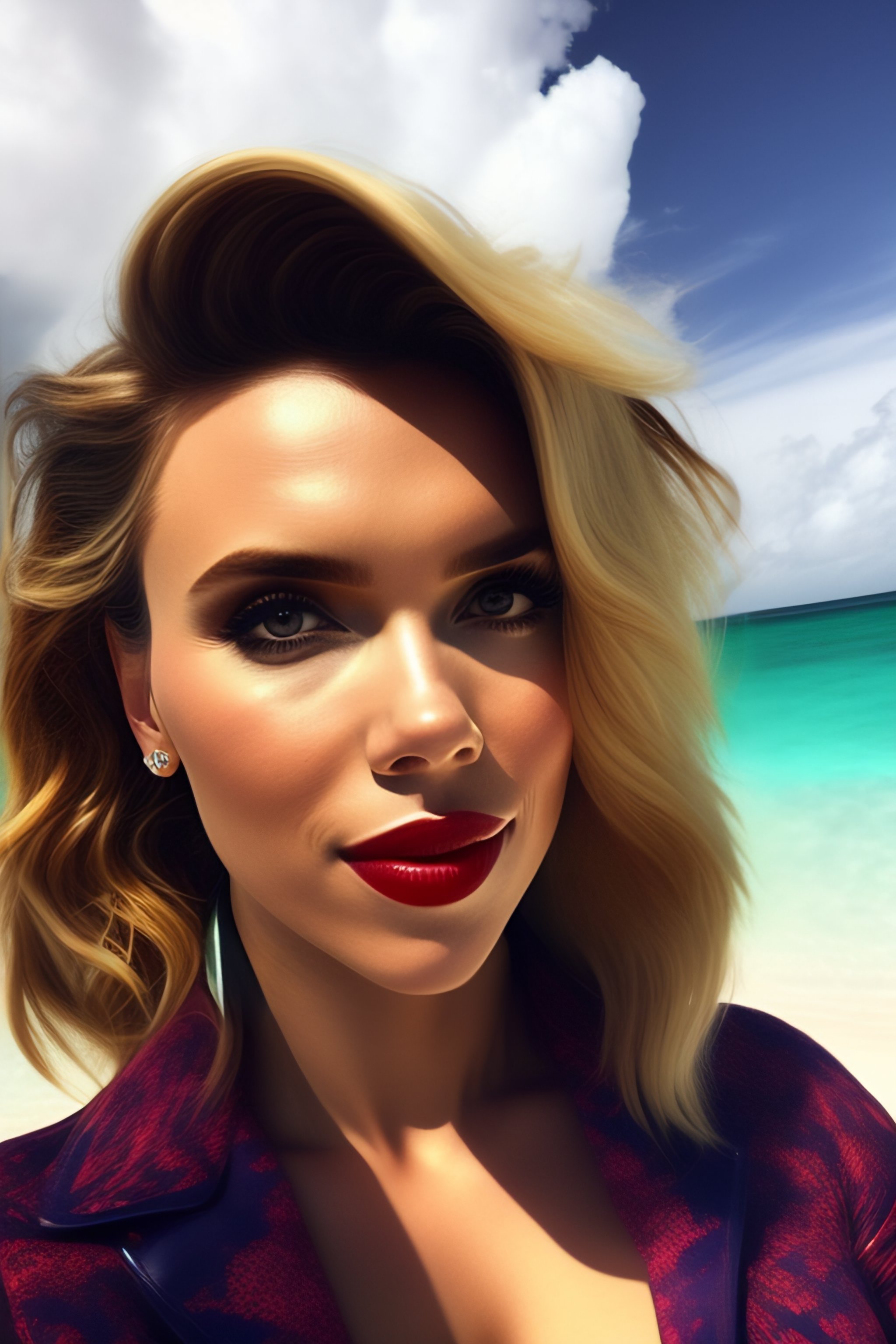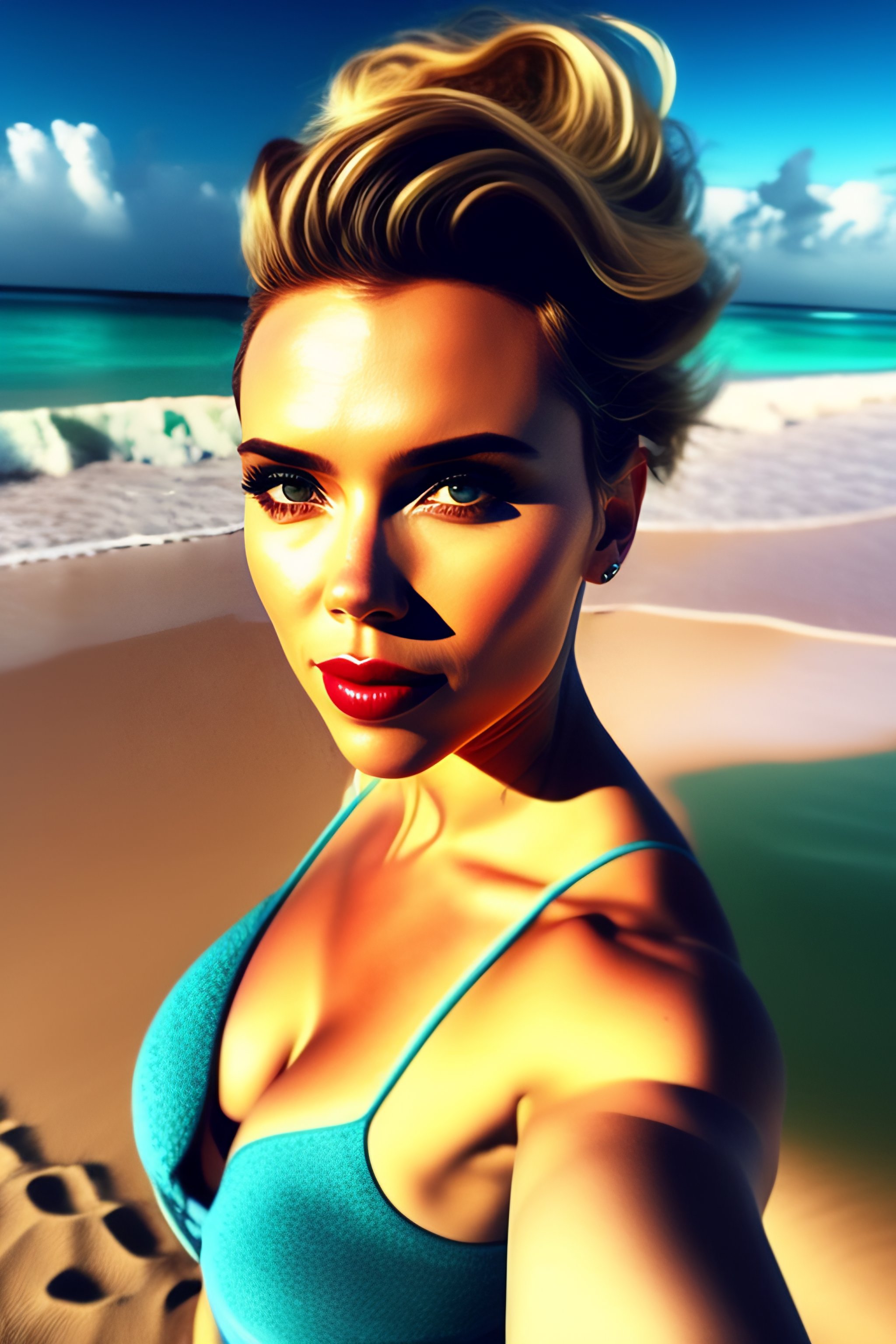 Selfie of scarlett johansson in a caribean beach