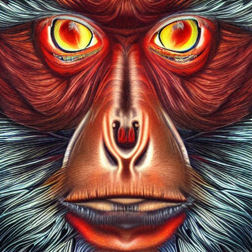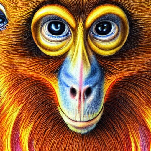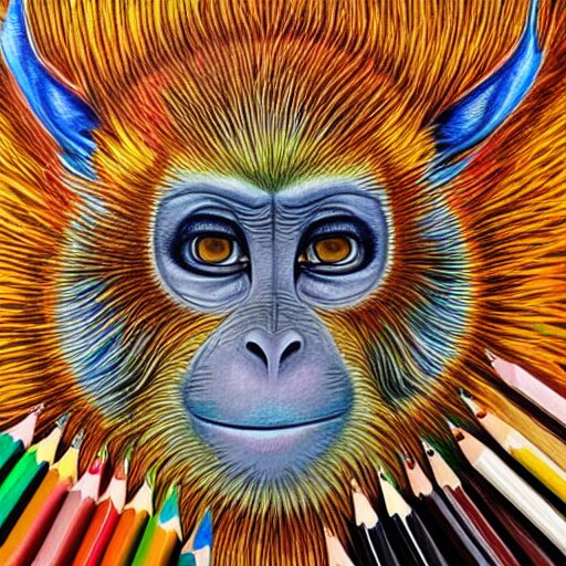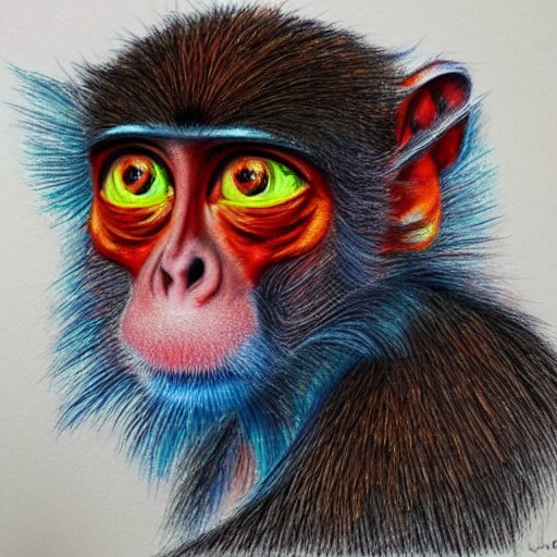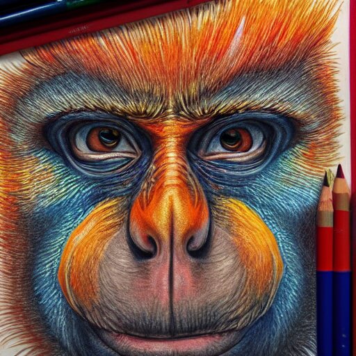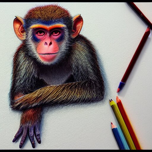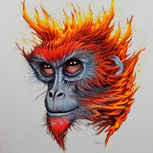 Colored pencil art on paper, inferno flame monkey, highly detailed, artstation, masterpiece, award-winning, caran d'ache luminance
