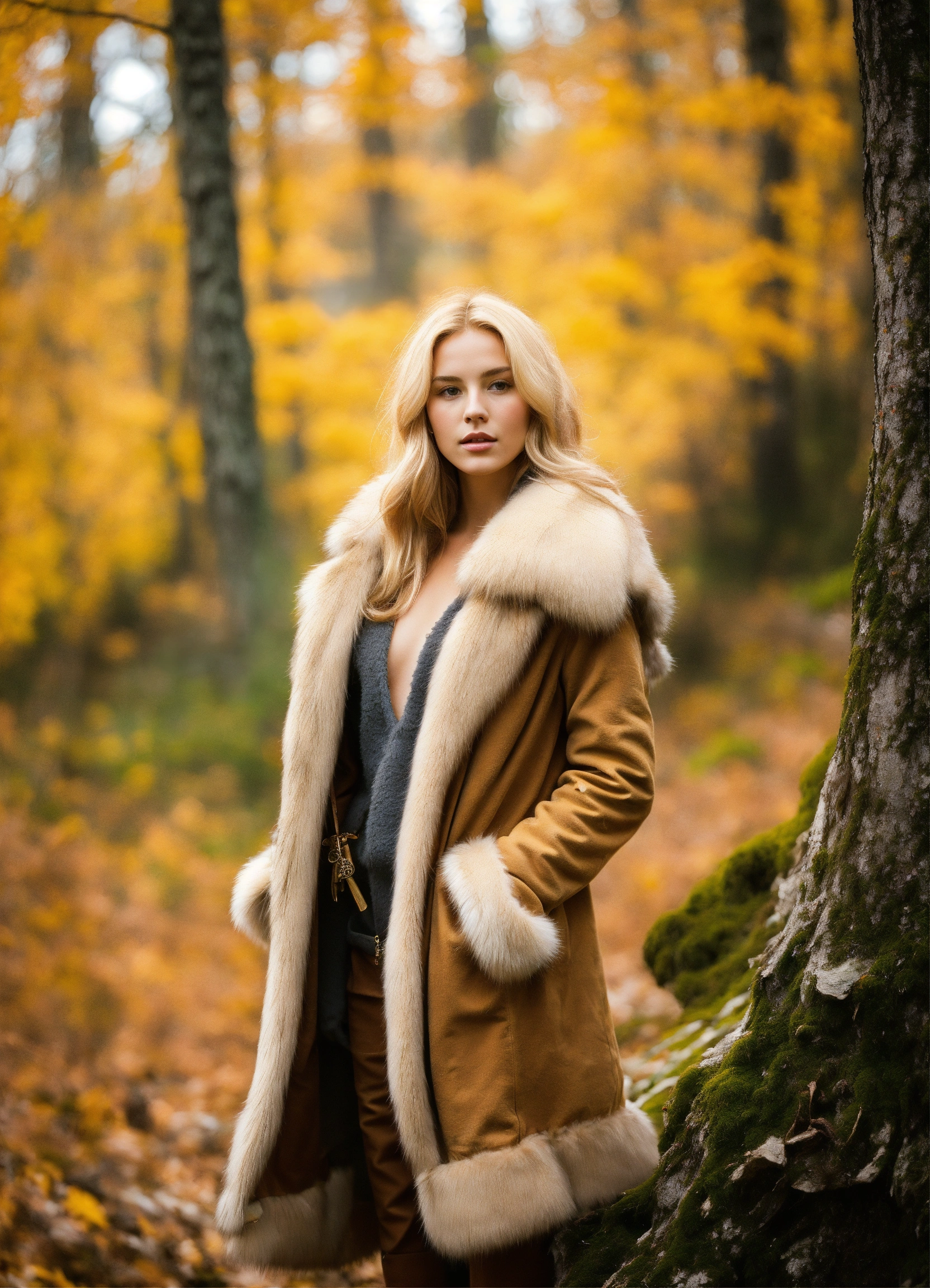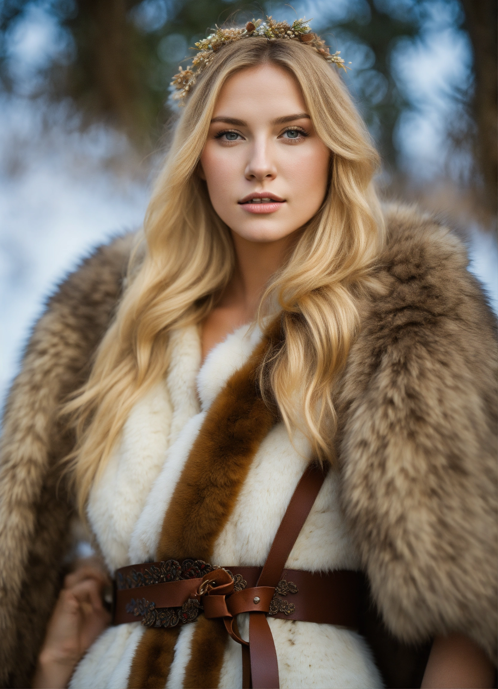 An anglo-saxon beautiful blonde in furs in the forested valleys