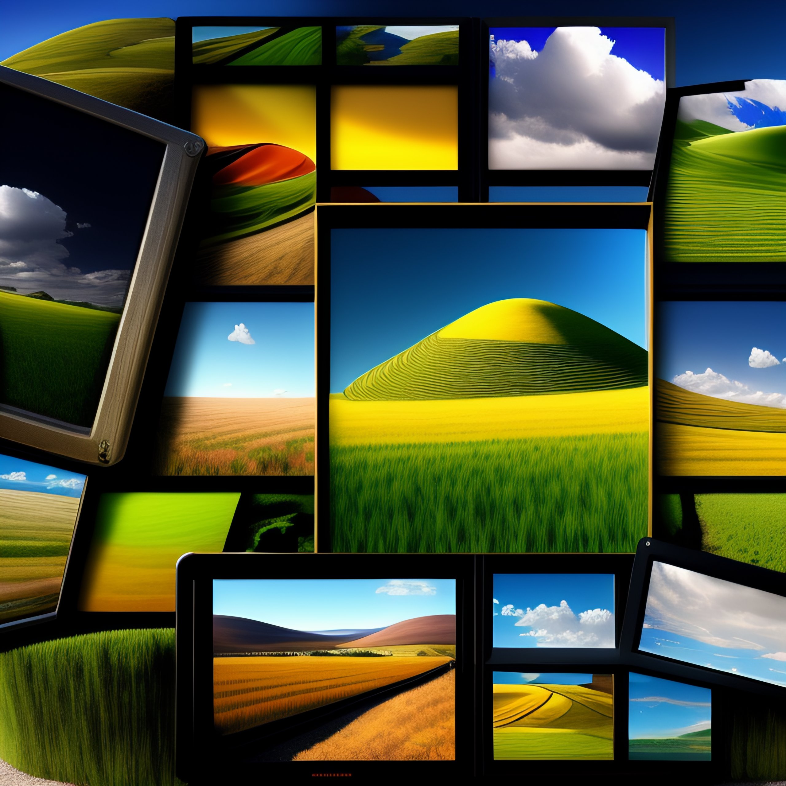 Windows xp bliss screensaver with many hard drives graveyard