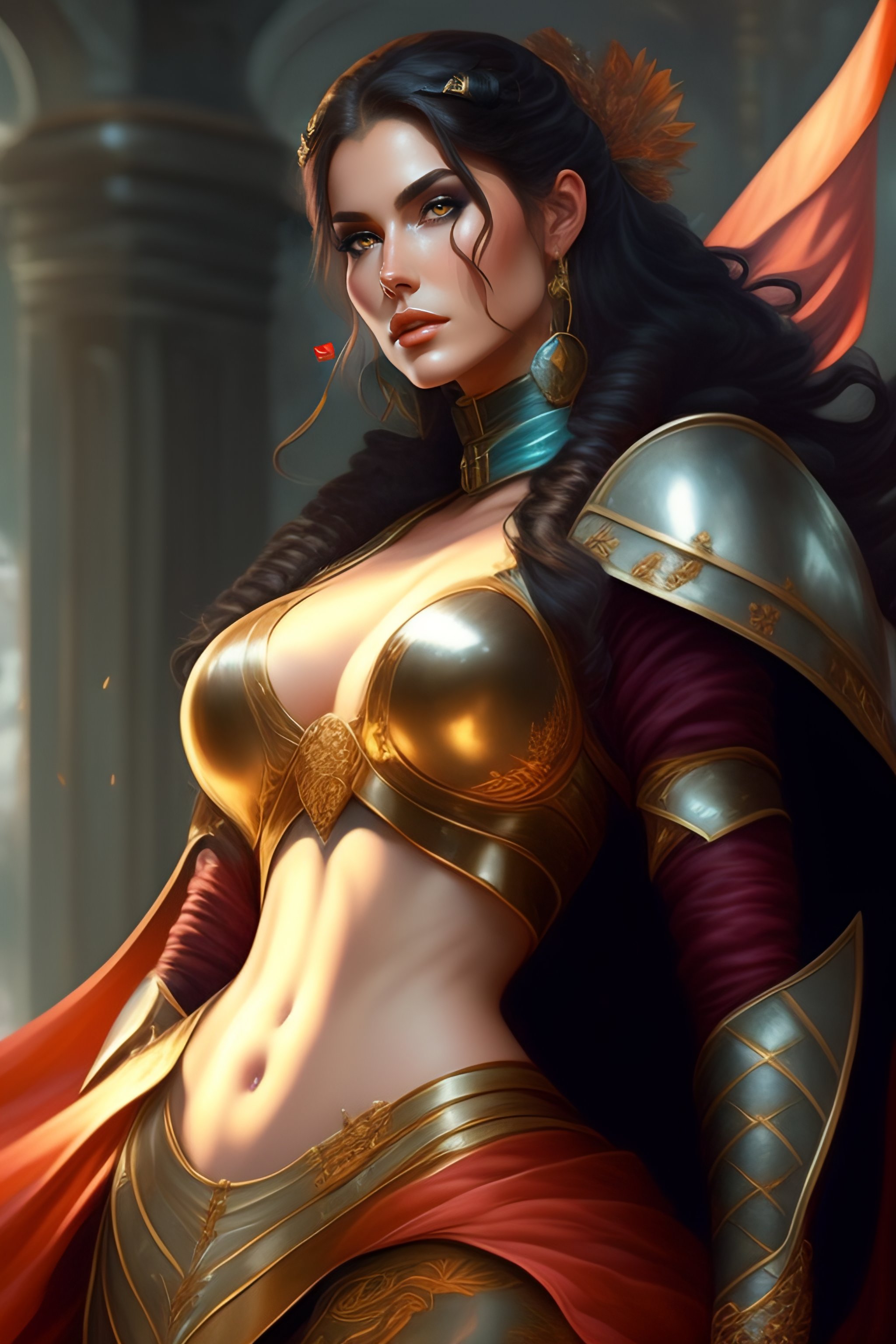 Portrait sophie dee, in full growth, rogue with leather armor in the painting style of arcane, intricate, elegant, sharp focus, illustration, highly detailed, digital painting, concept art, matte, art by wlop and artgerm and greg rutkowski and alphonse mucha, masterpiece