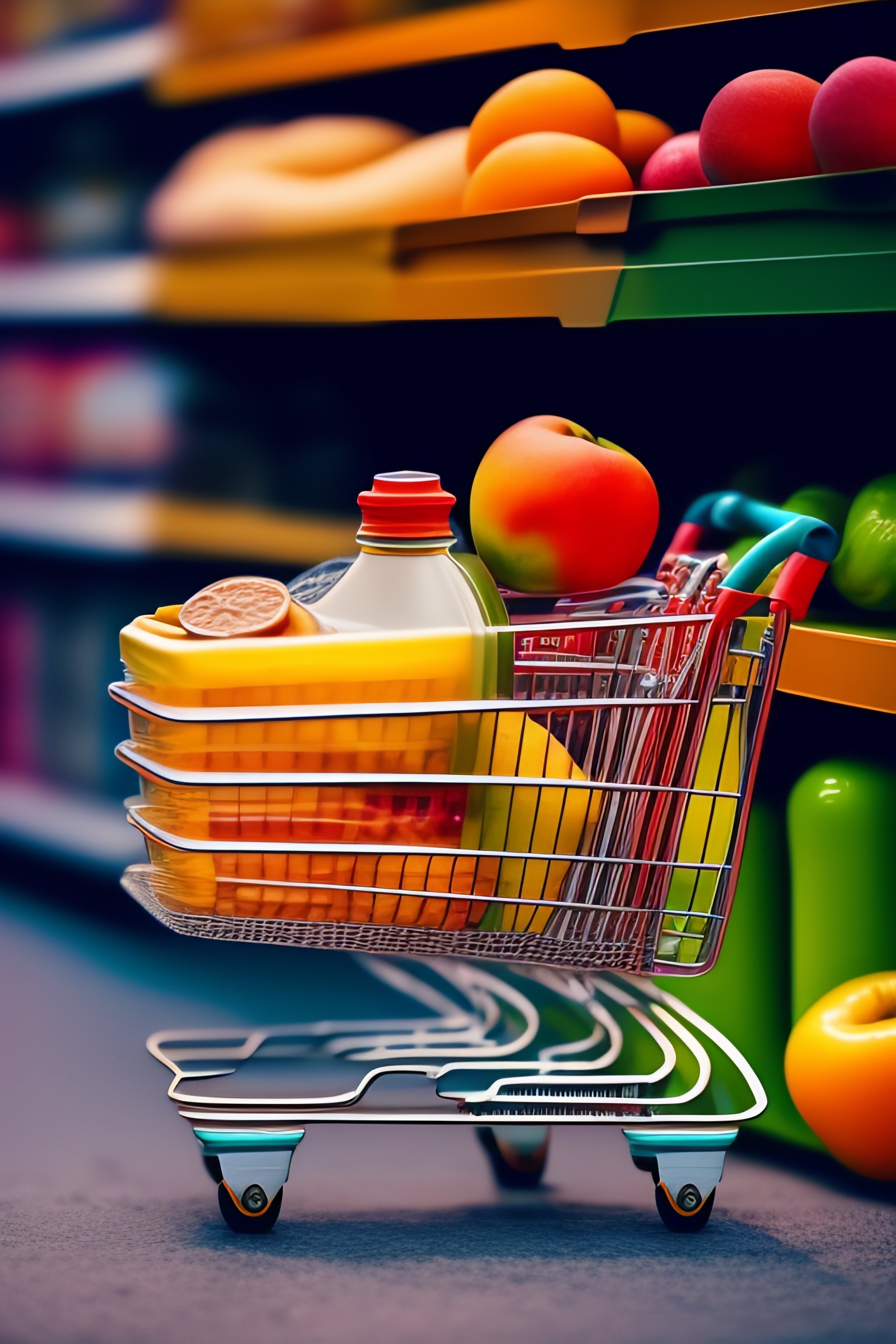 A shopping cart filled with overflowing products