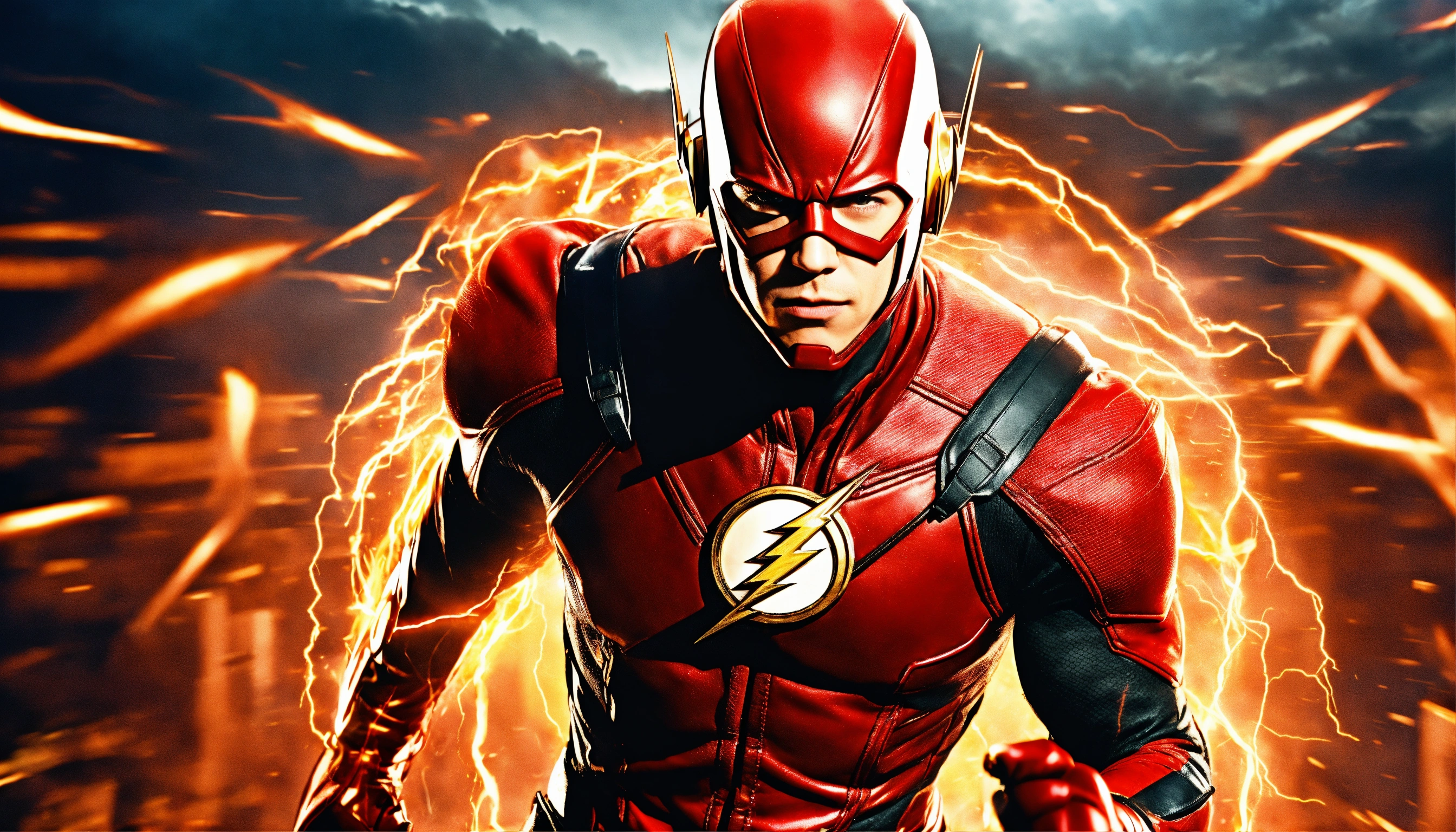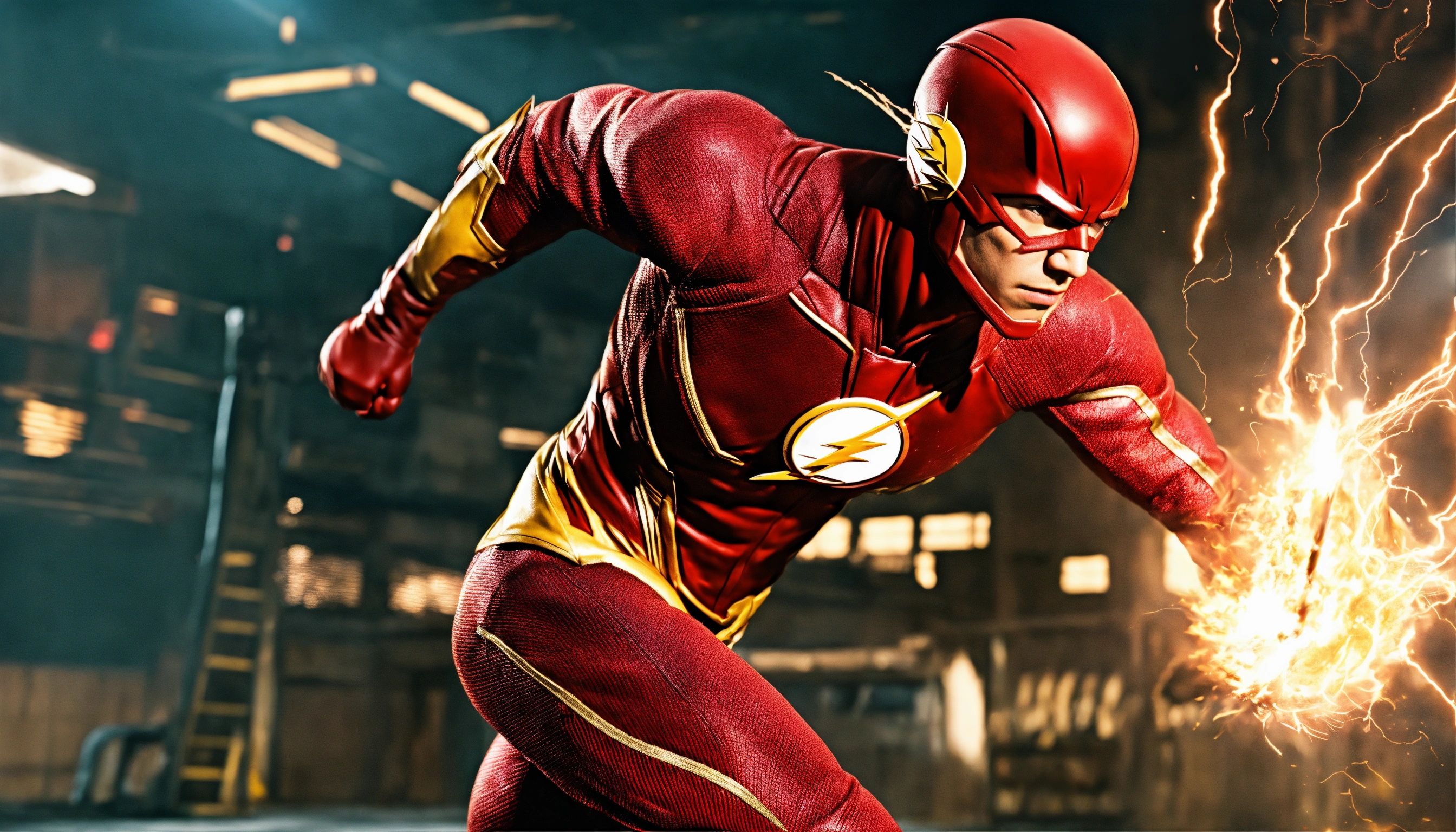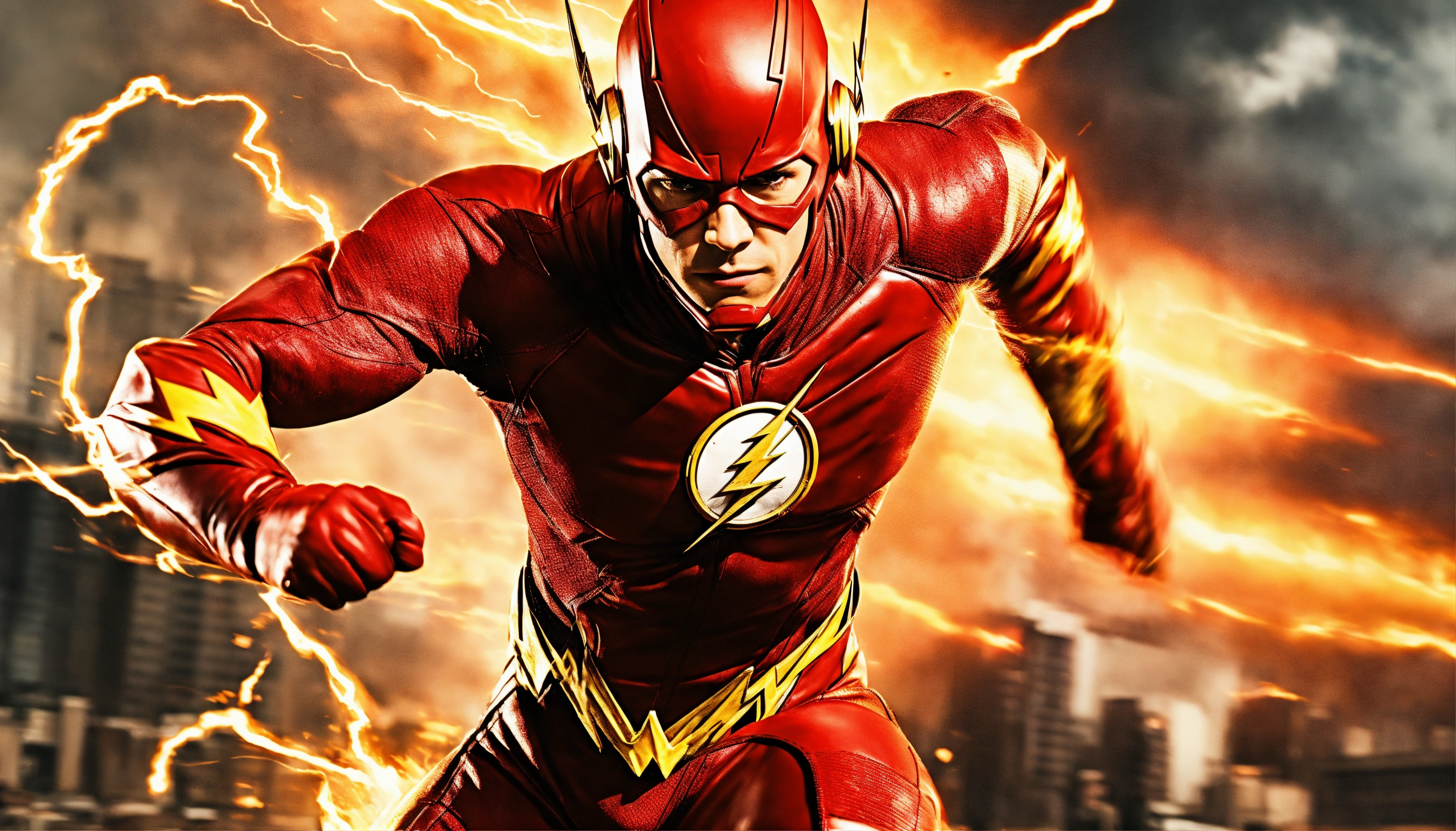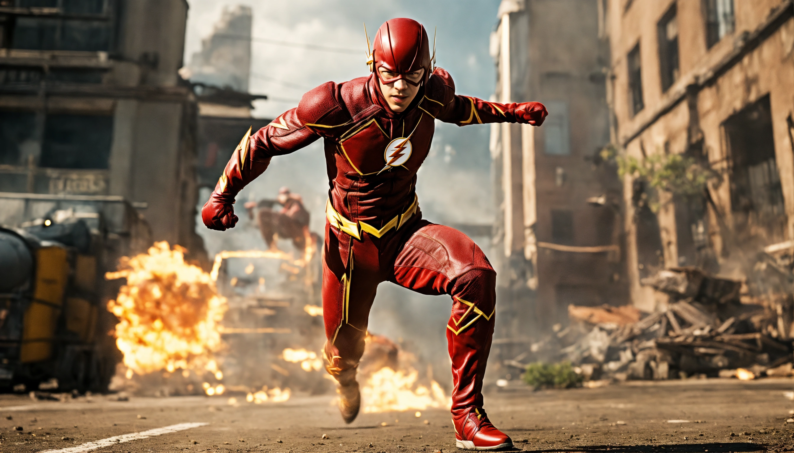Produce me an image of flash in fighting action, movie image. ensure high resolution, 8k image, realistic.