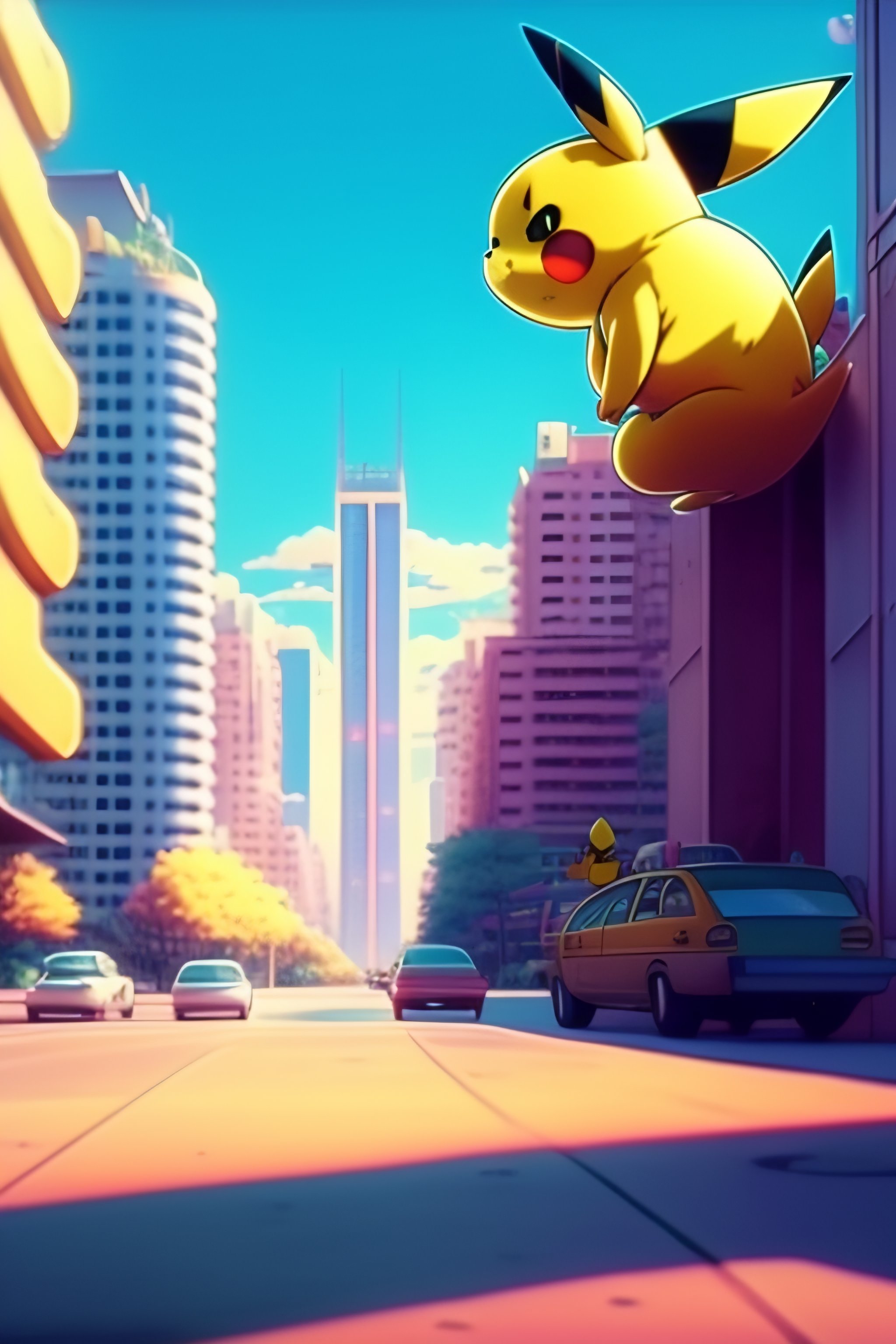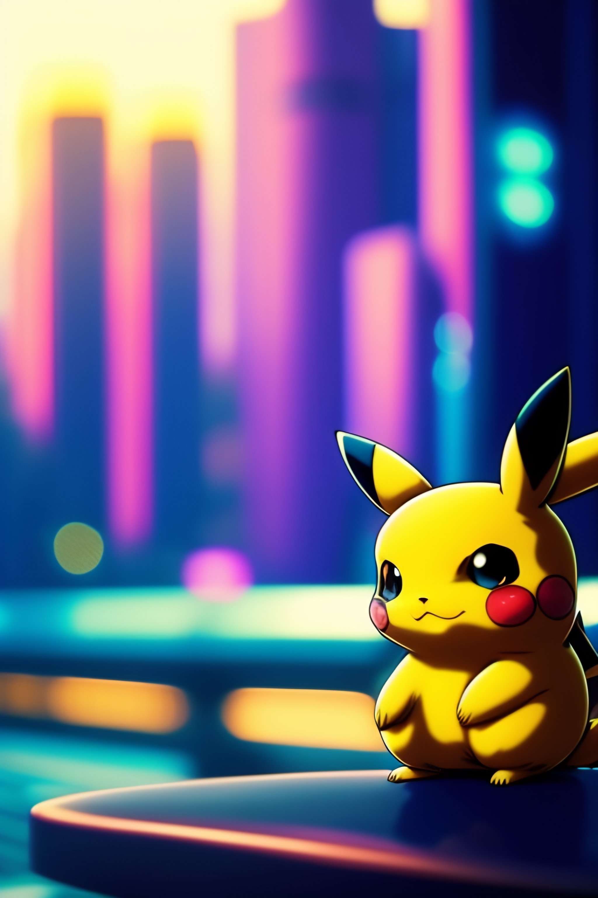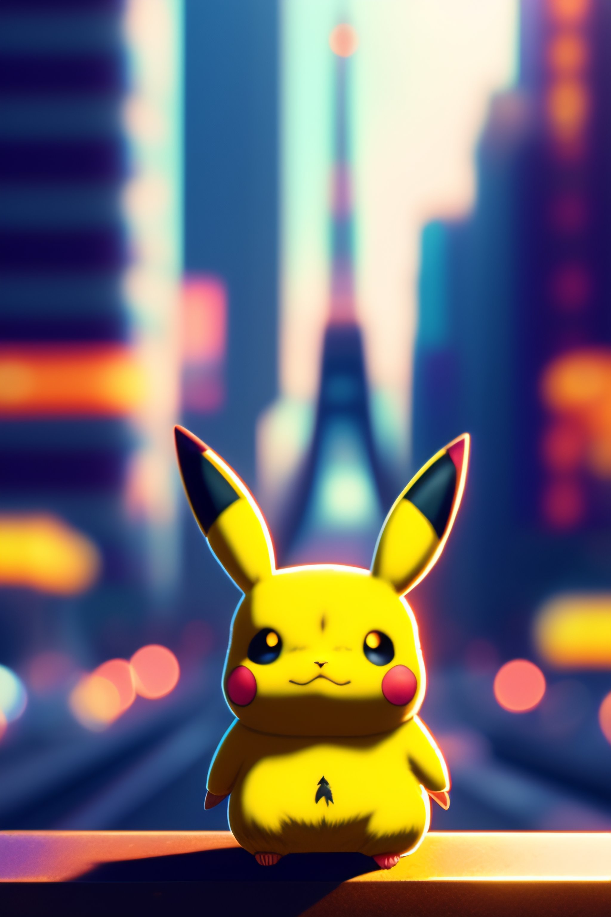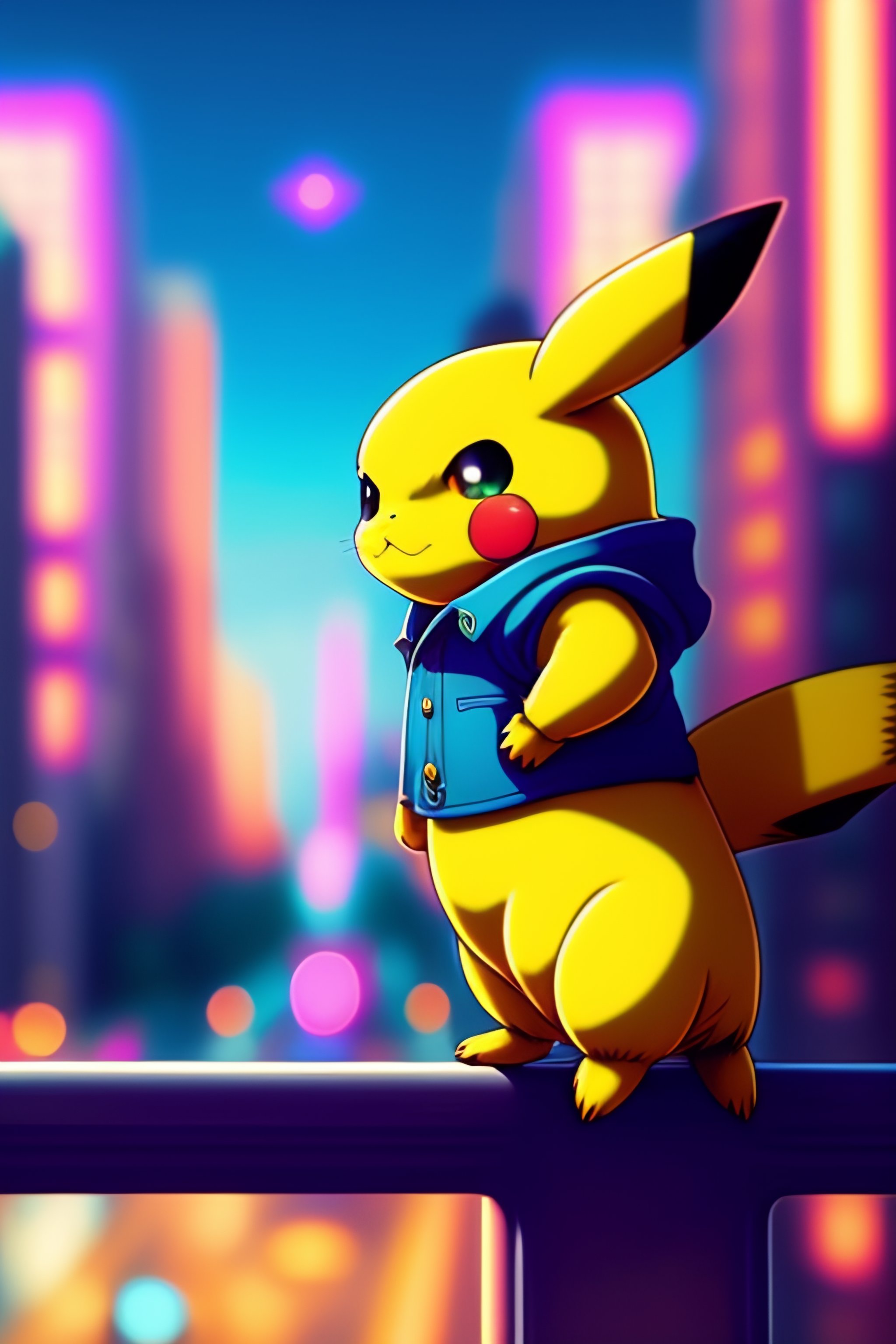 90's anime vintage anime screenshot cute pikachu stay in front of post soviet city landscape on the background, deep bokeh, close-up, anime masterpiece