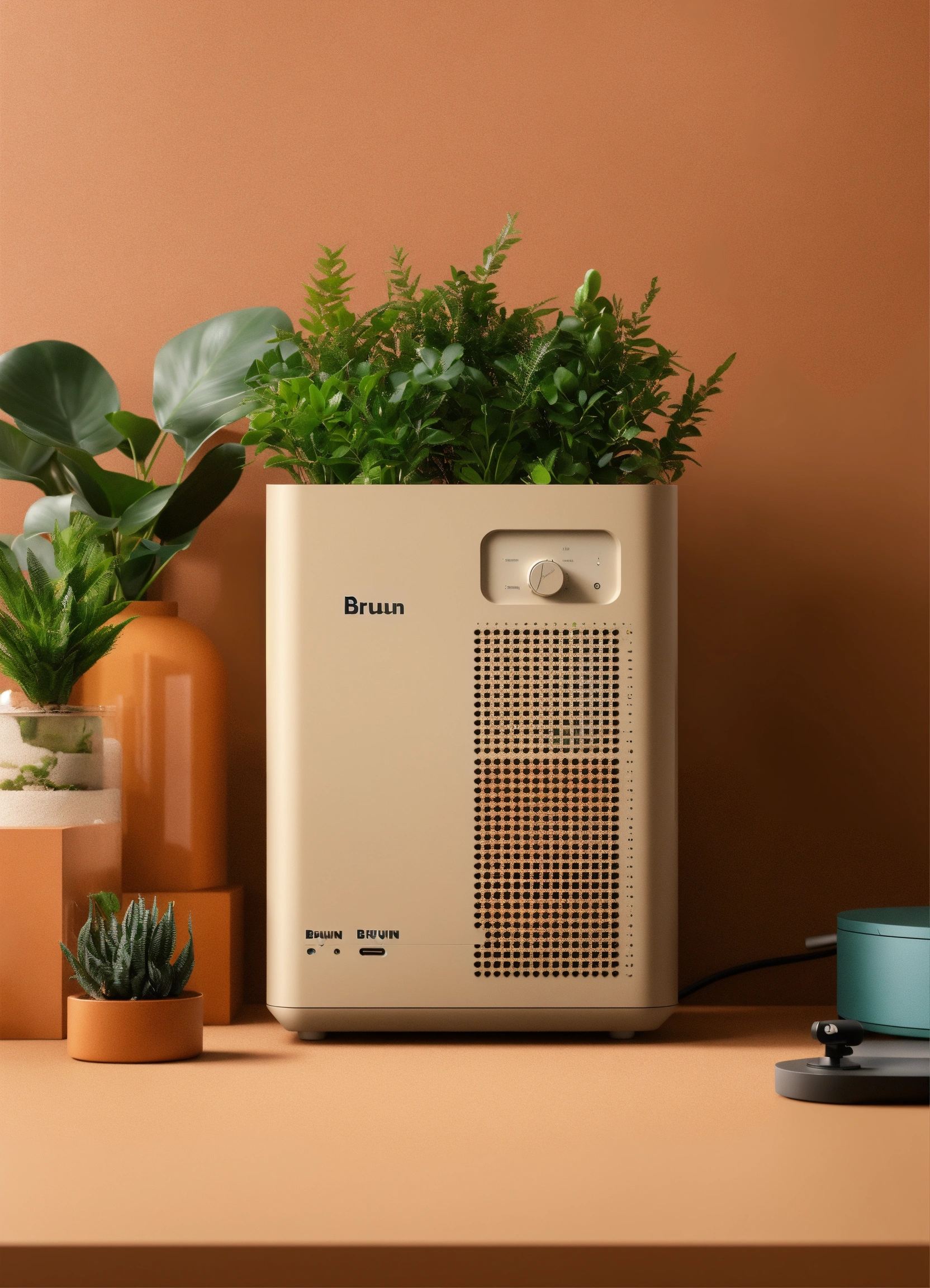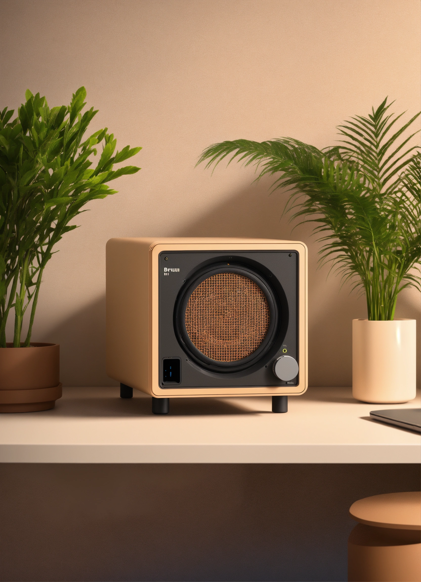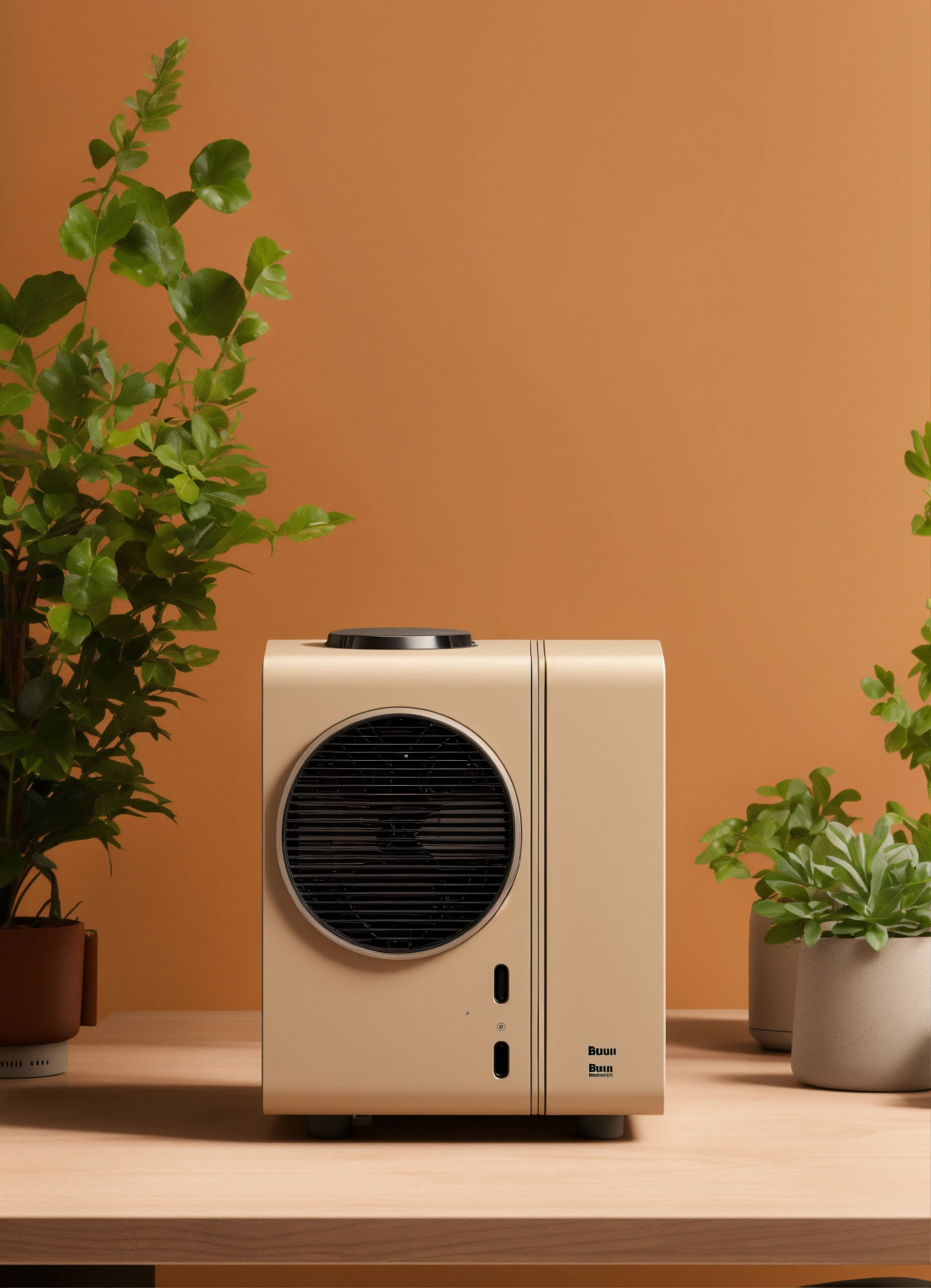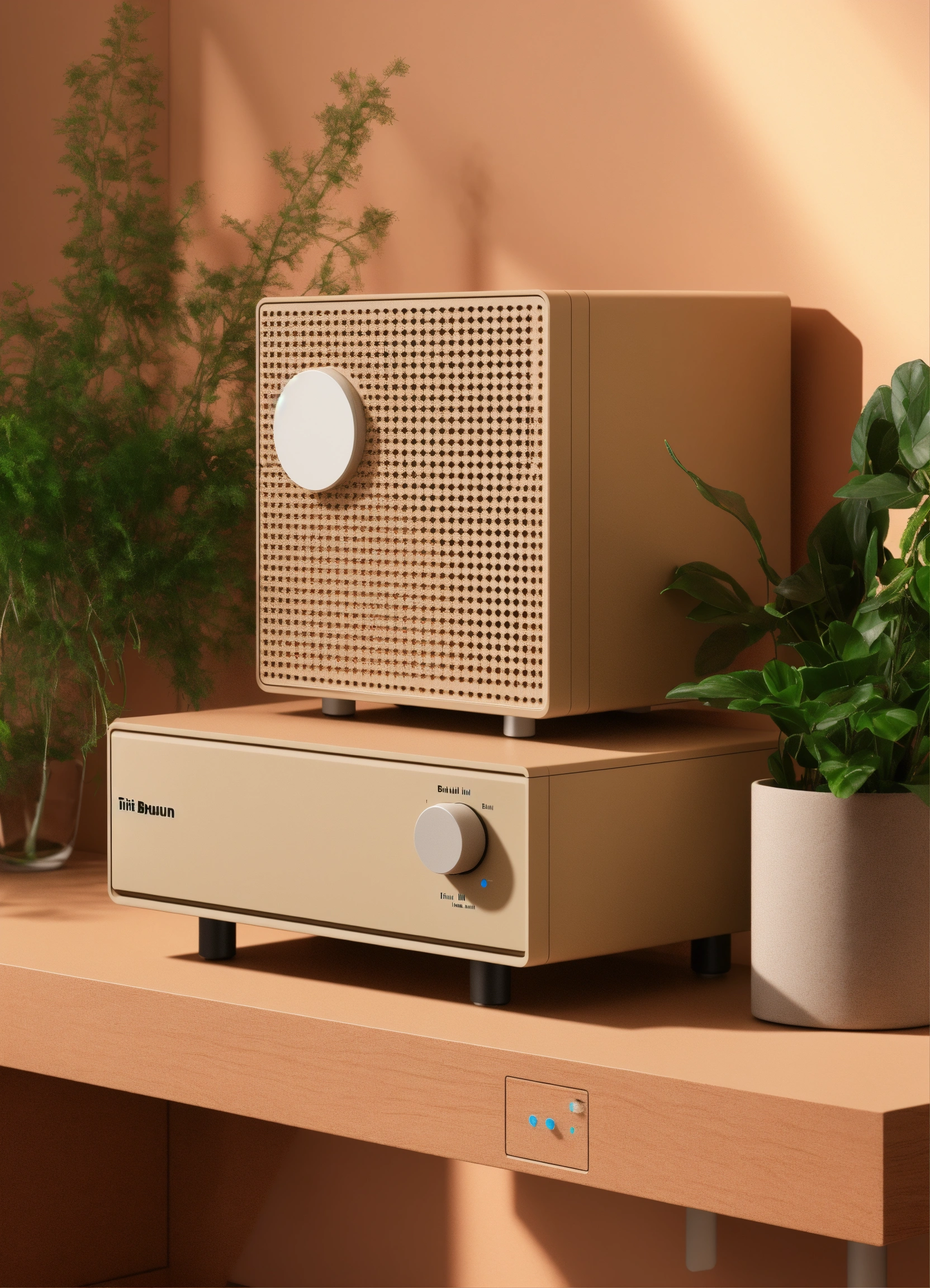 A stunning minimal beige mini itx case designed by dieter rams, braun. product ad retro. industrial design inspiration. unreal engine render, natural lighting with plants on desk, vibrant colors, hues, zbrush render.