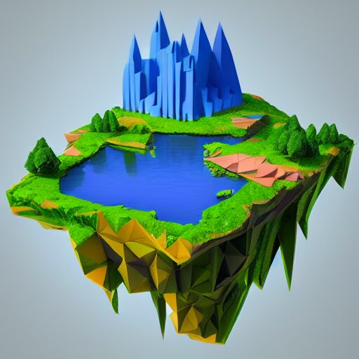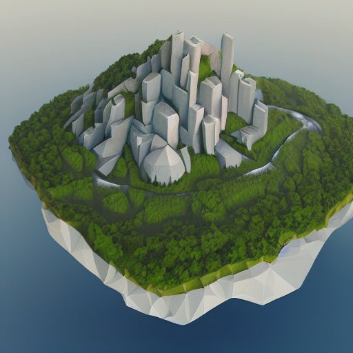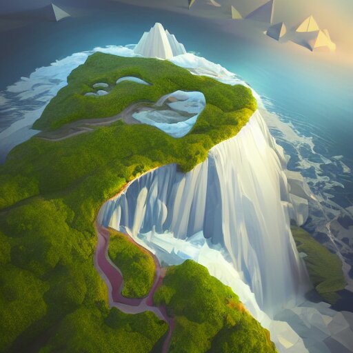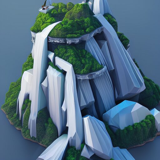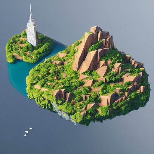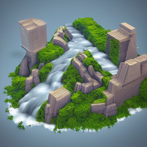 Low poly art of new york as a floating island in the sky, low poly, isometric art, 3d render, waterfall, high detail, artstation, concept art, behance, ray tracing, smooth, sharp focus, ethereal lighting