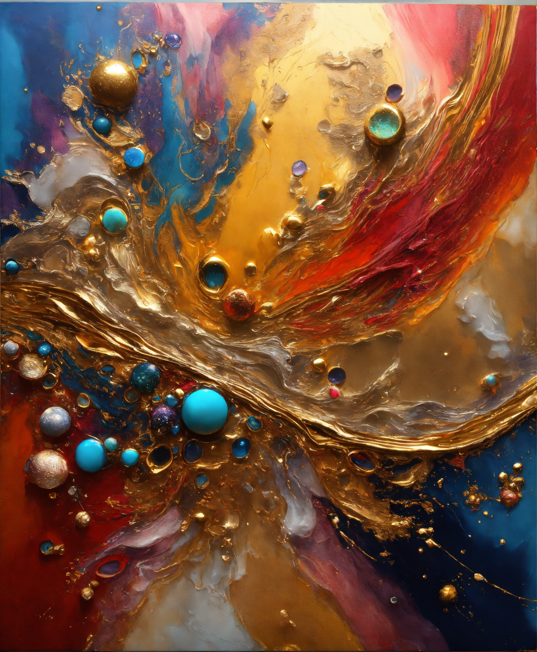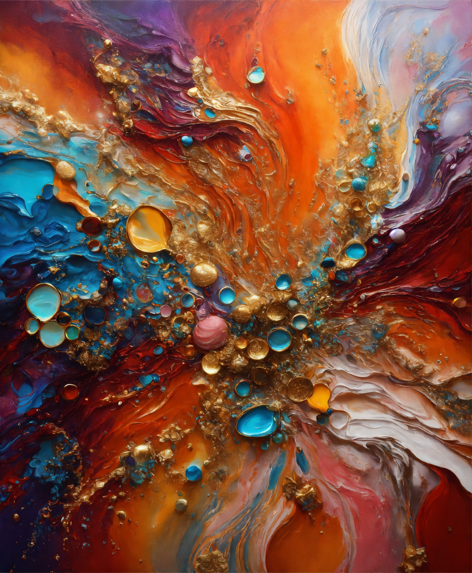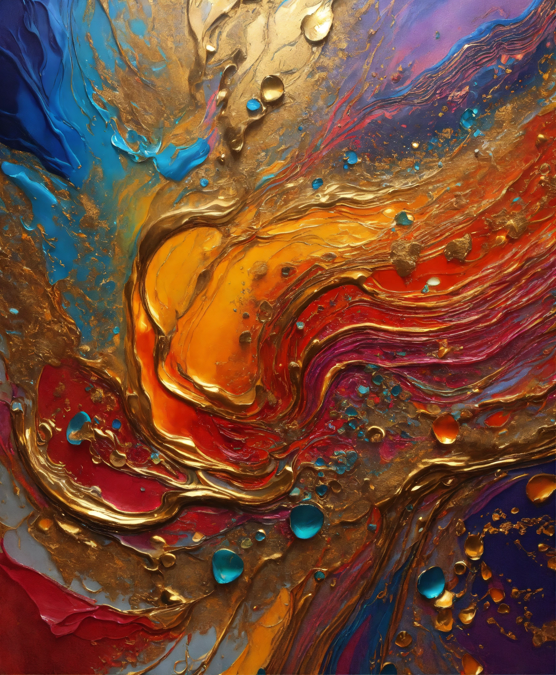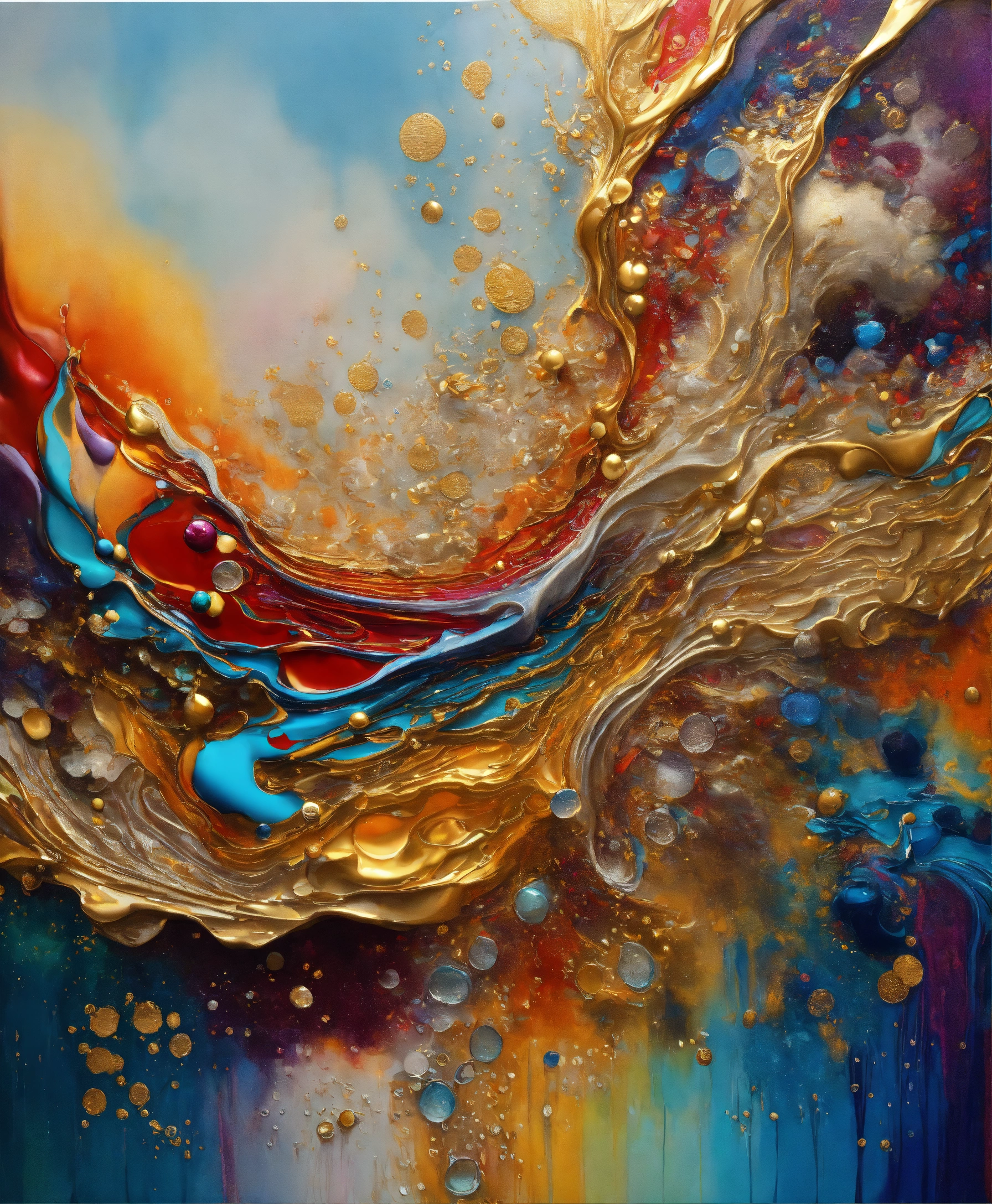Colorful abstract painting oil and water complex complicated bright vivid colors beautiful opulent wealthy intricate all hues magnificent amazing sublime delicate hyperdetailed masterpiece metallic sheen elaborate awesome 24k gold and silver trim 8k