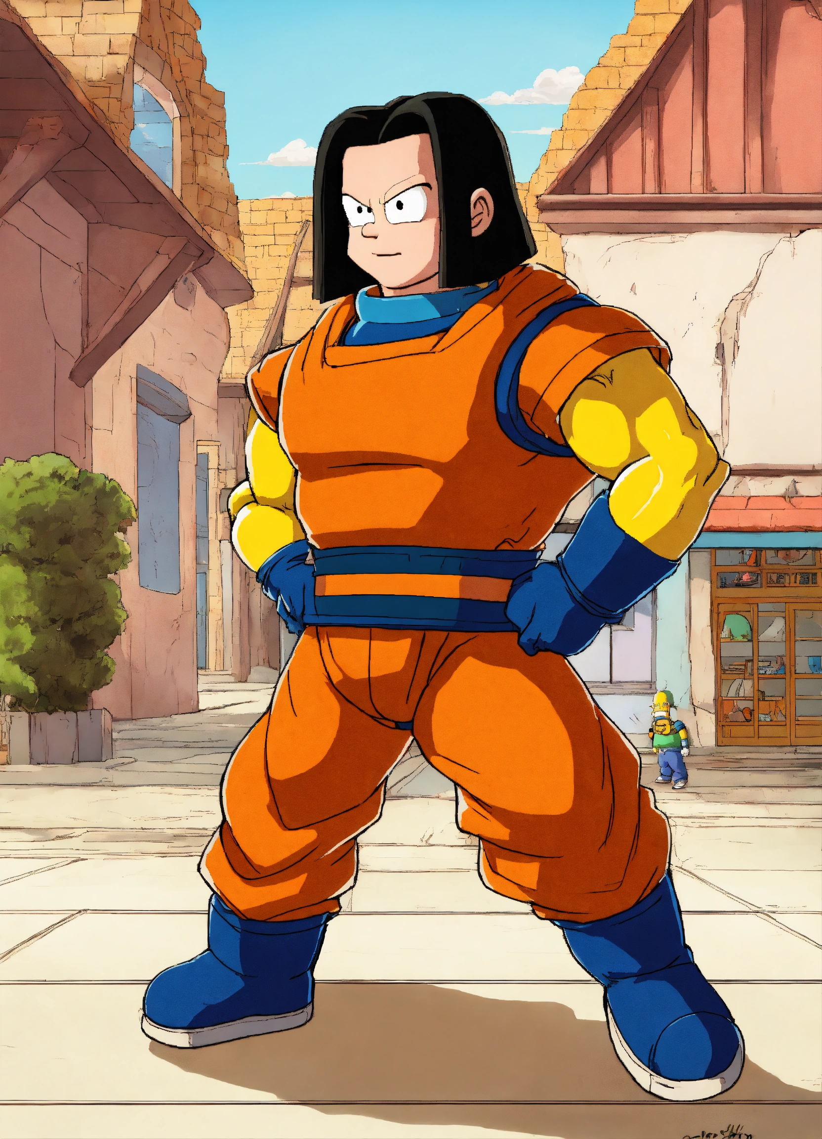 Android 17 from dragon ball z as style of the simpsons