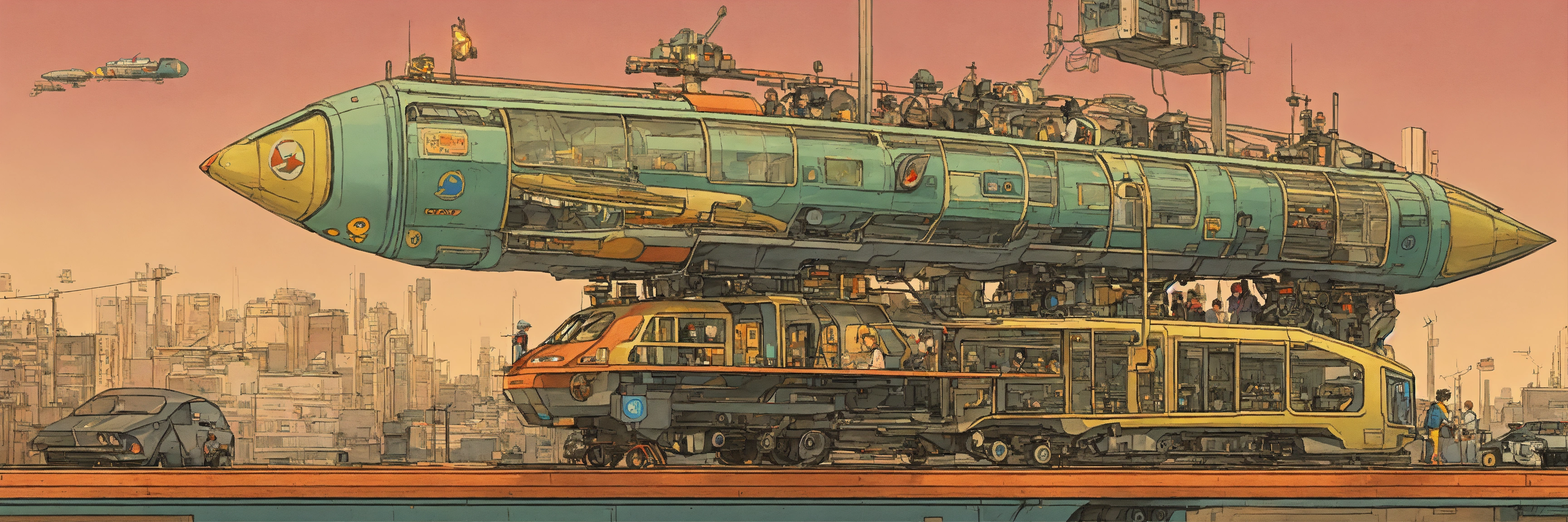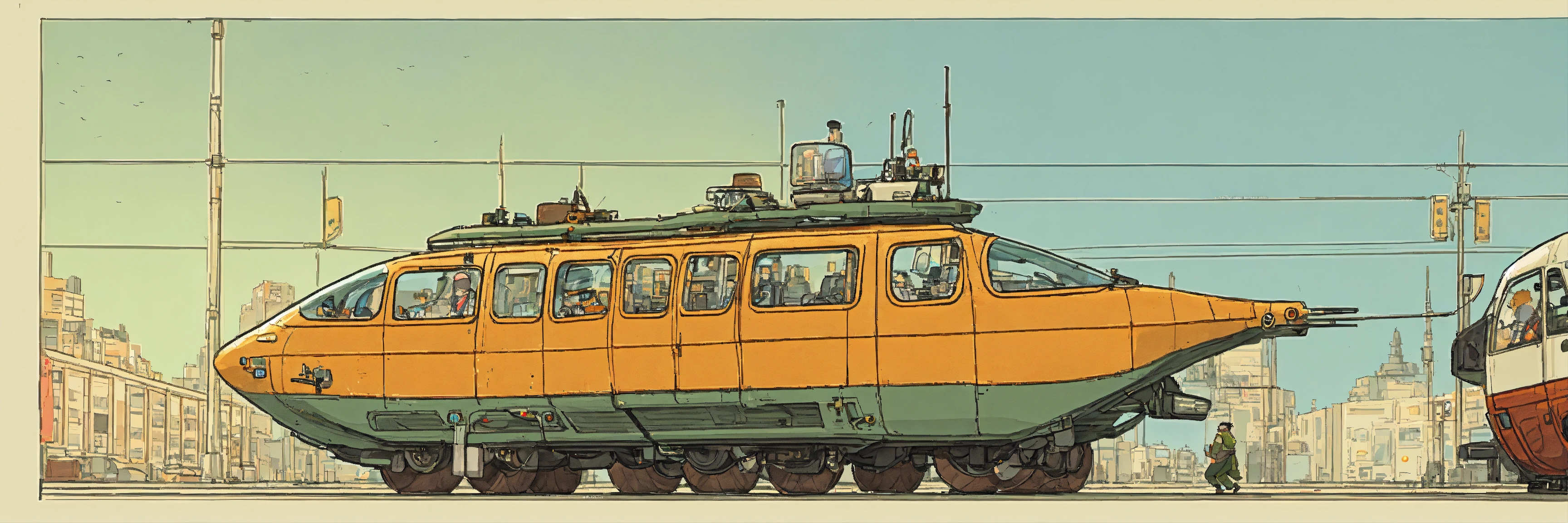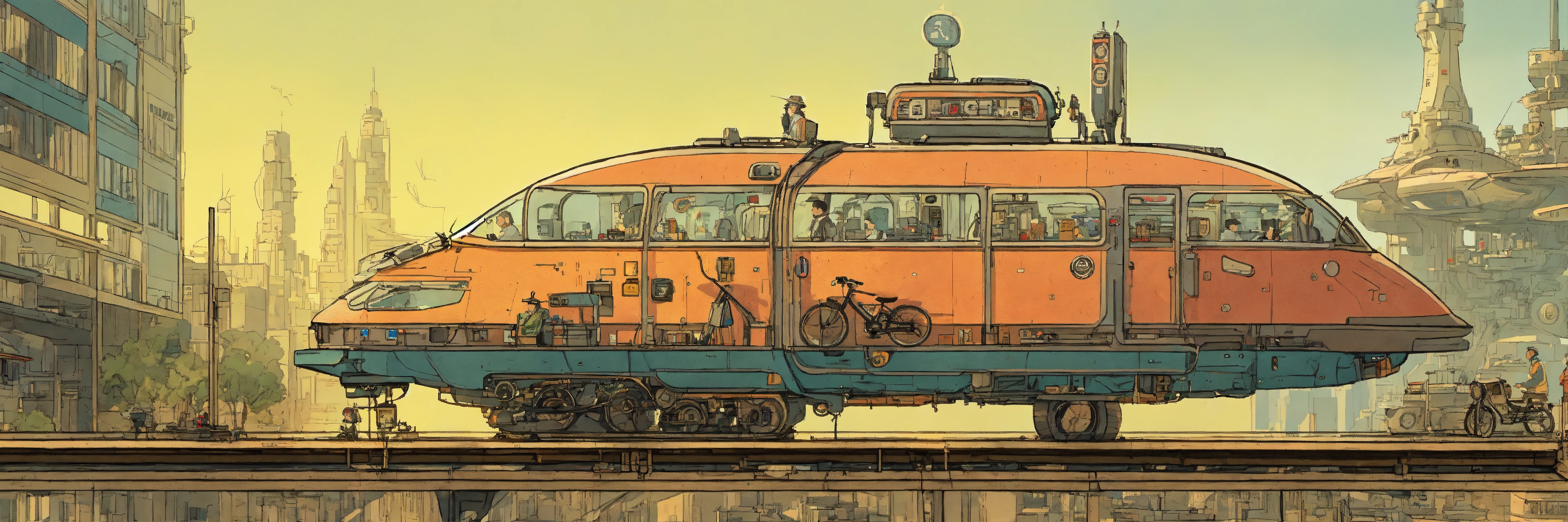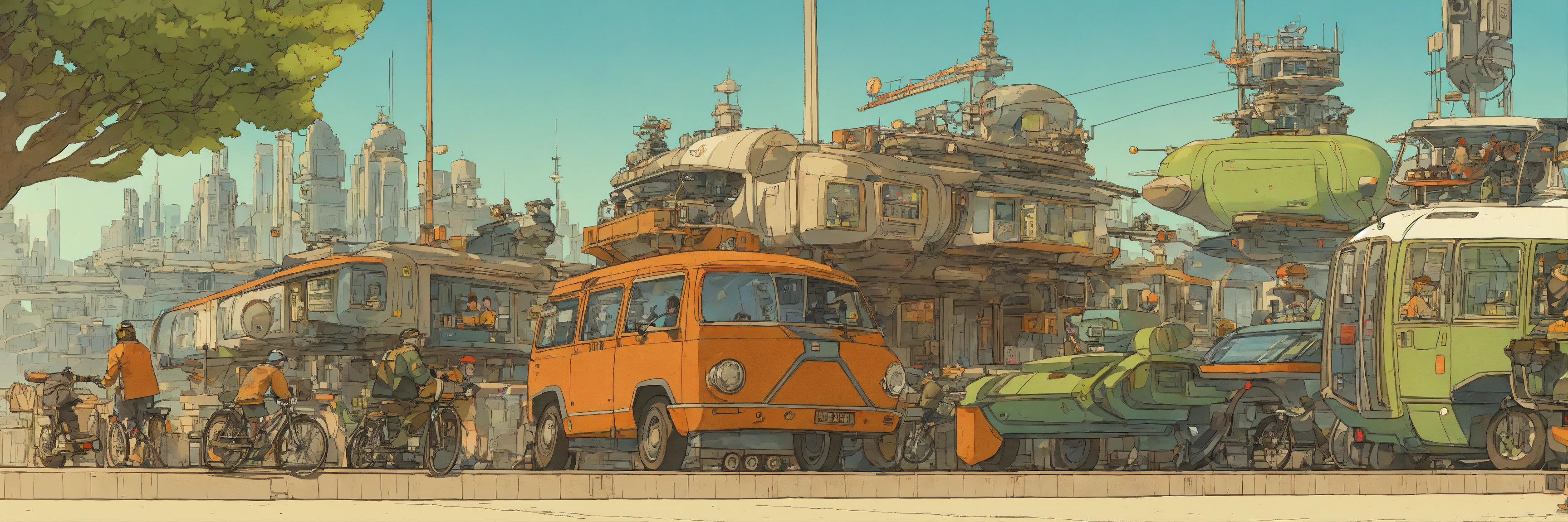 The future of work, futurepunk illustrations of futuristic vehicles and transportation systems that will change the way we commute to work, cinematic lighting, angled shot, 8k, very detailed, by mattias adolfsson