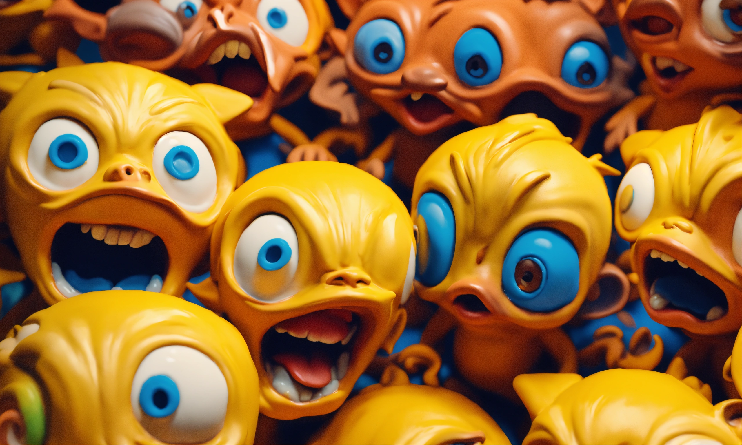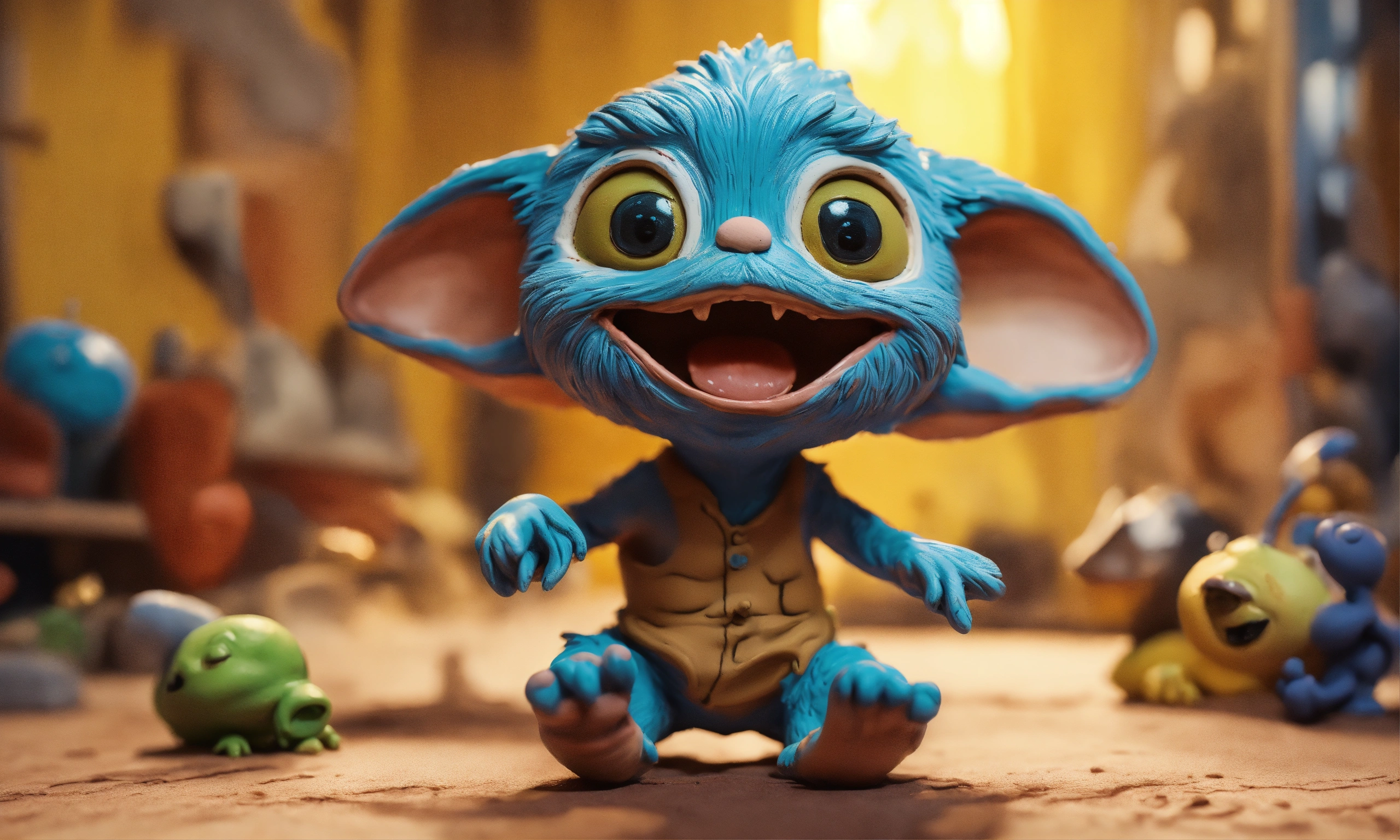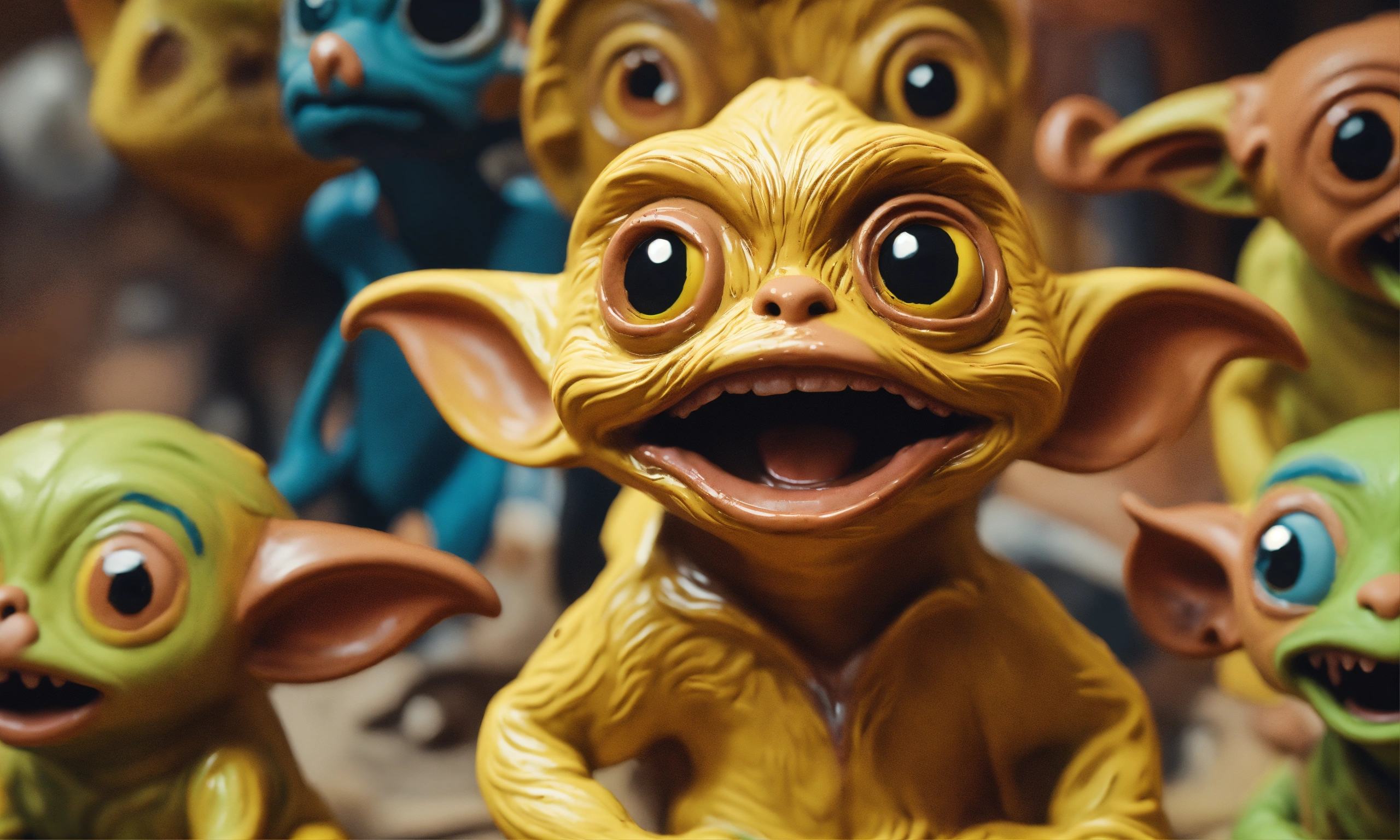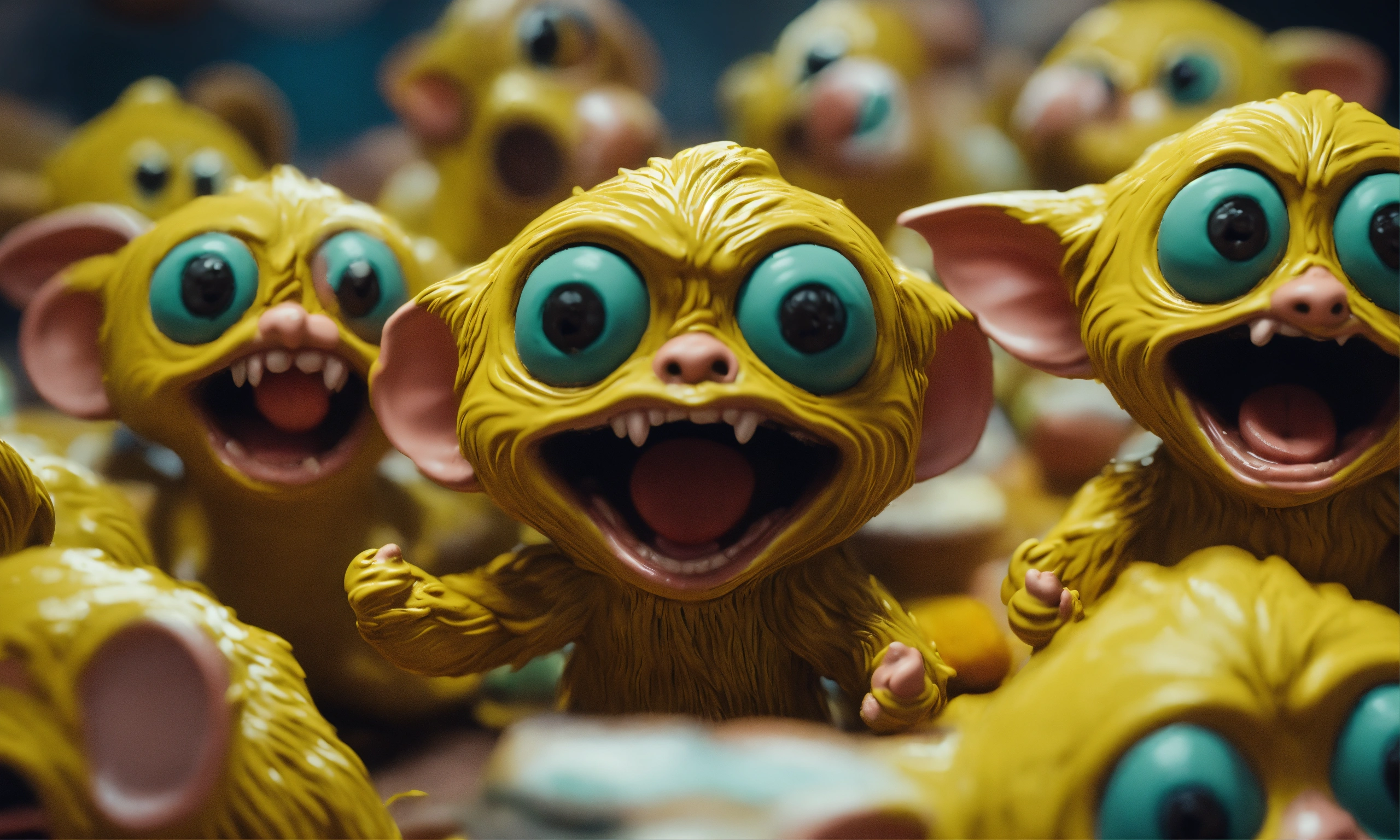 3d effect of cute clay gremlin imitating the pose from the famous painting 'the scream' in an overall pattern, the faces of the gremlins are covered in paint, cartoon and claymation style, unreal engine render, 8k, intricate details
