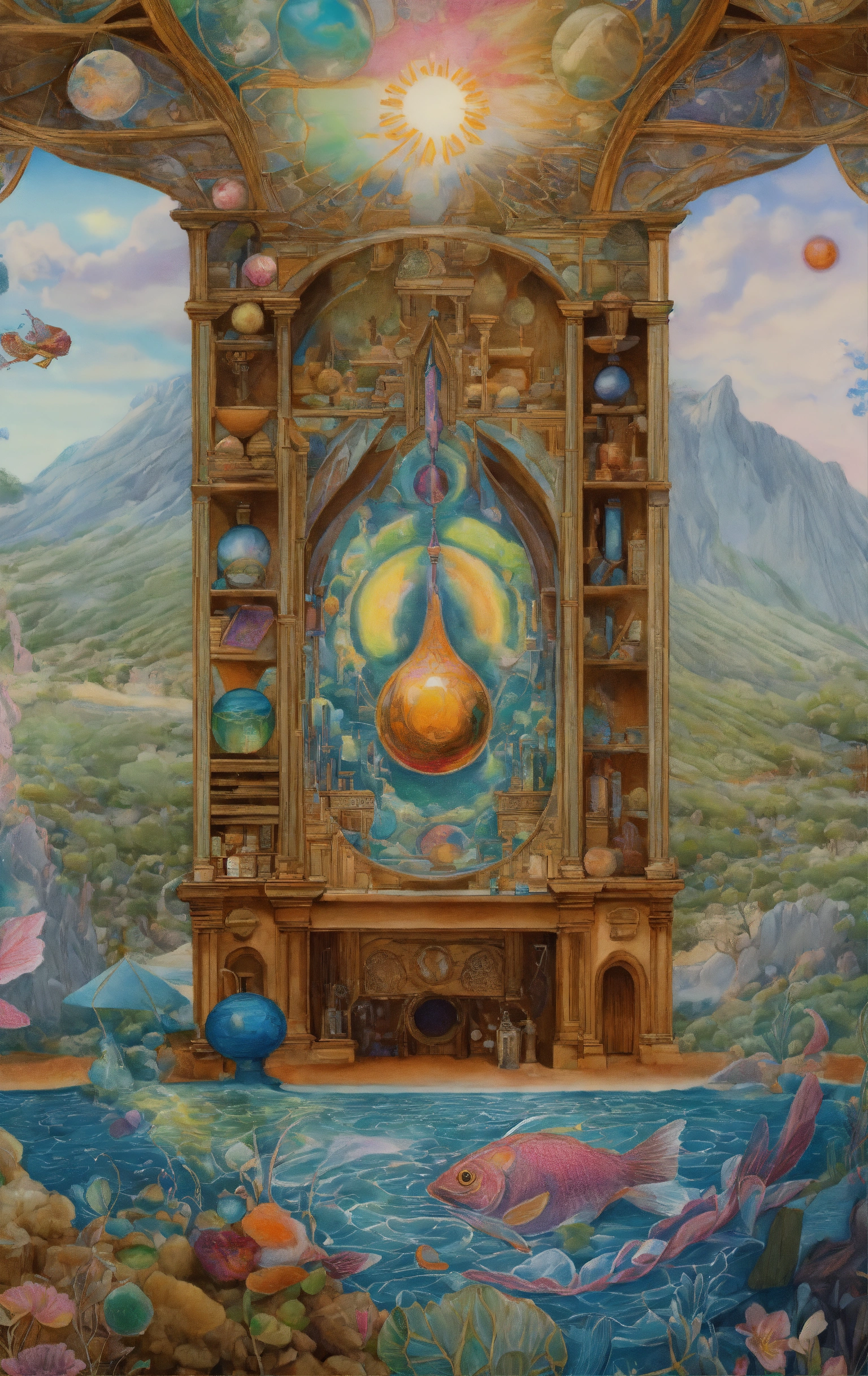 Drawing alchemical scenery the harmonization of the human being. hd, fully clear, intricate details, epic scale, insanely complex, 8k, hyperrealism, very realistic. line drawing, clean clear lines, coloring book style, bright colors, intricate details, elegant, discreete, serene, peaceful, fine details, pastel pencils