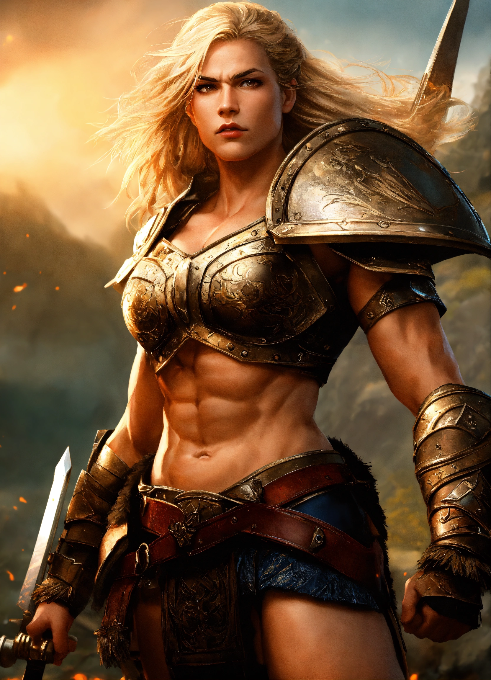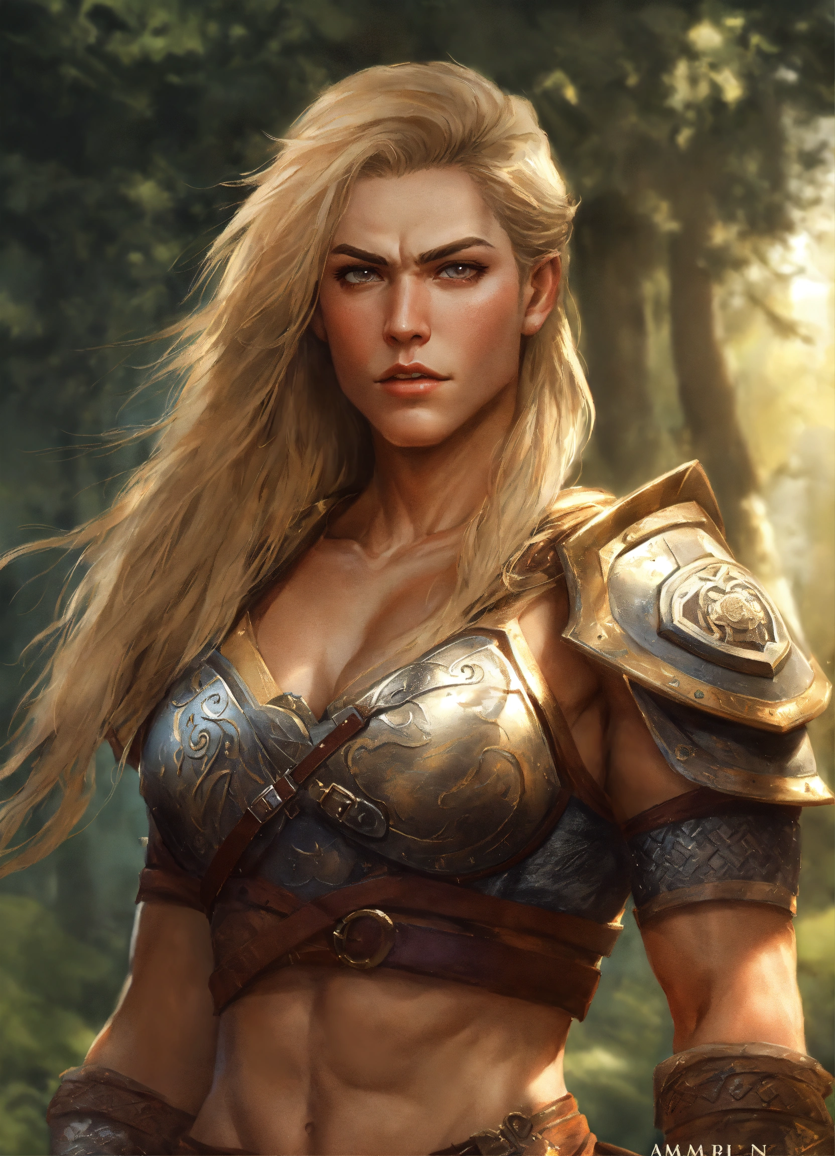 Character art, art station, strong, amazon warrior, handsome woman, tall, armored, big muscles, broad shoulders, broad chest, strong jaw, norse, barbarian fighter, tough, rugged, wide shot, no make up, realistic, fantasy, warhammer, ulric, athletic, buff, body shot, full metal armor, lagertha