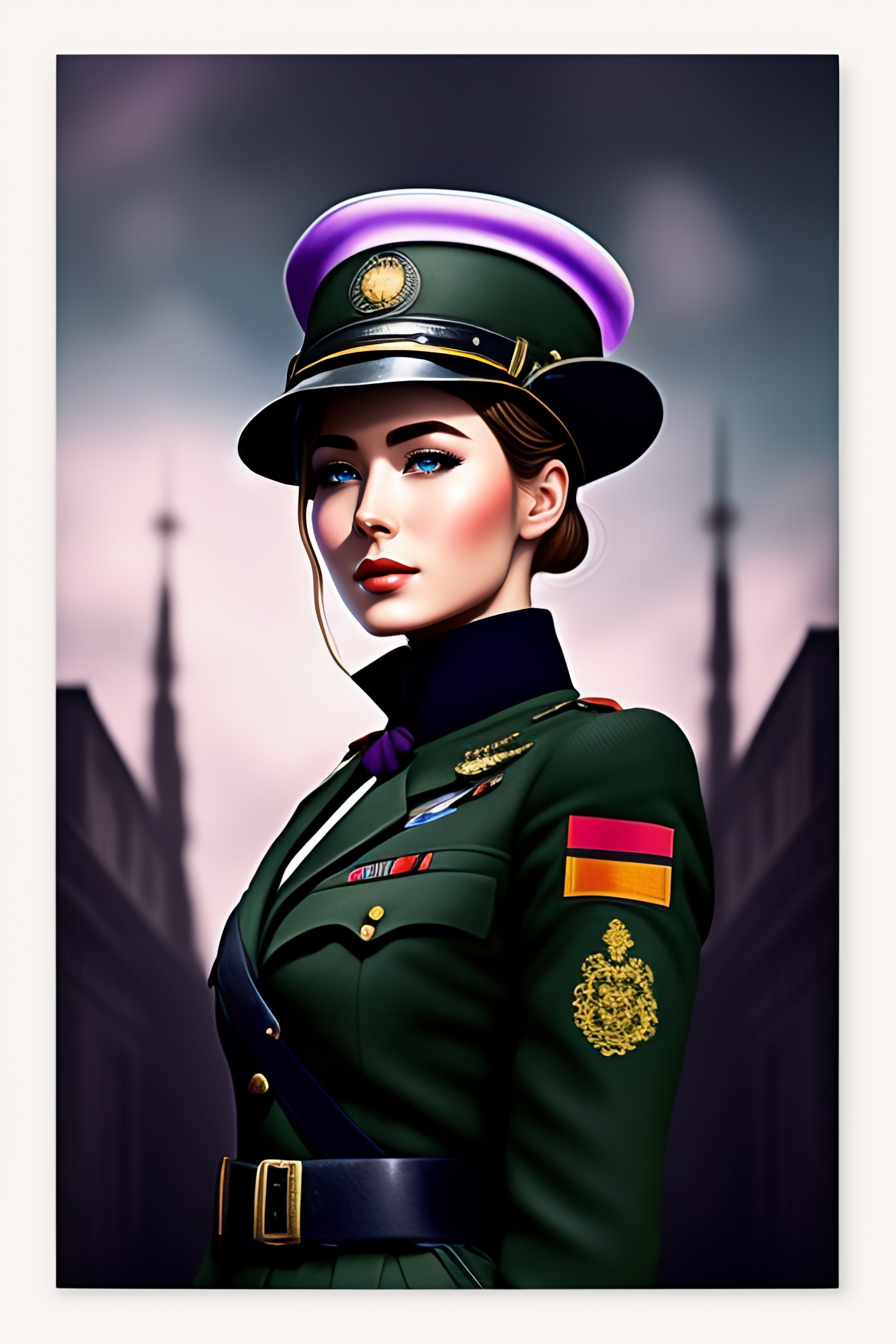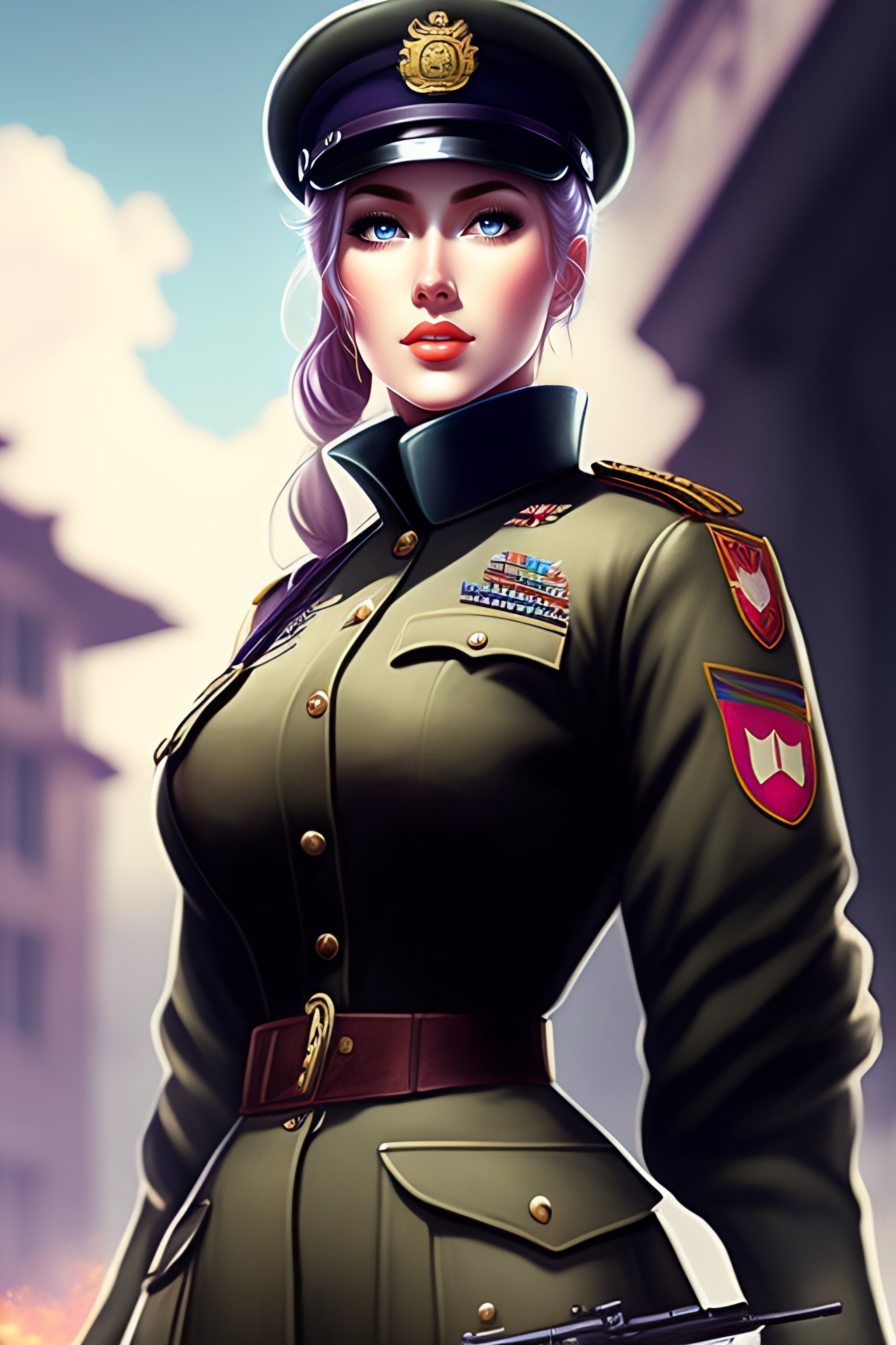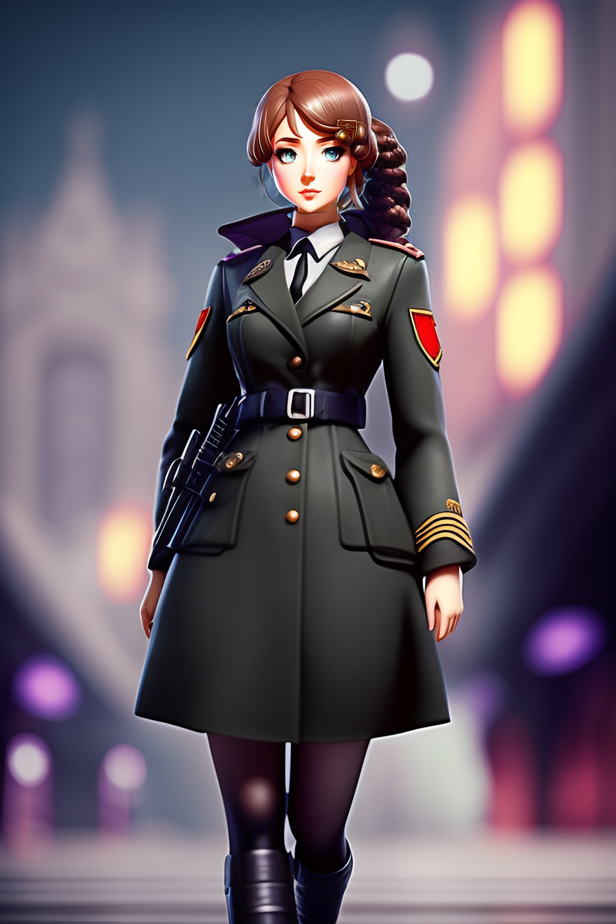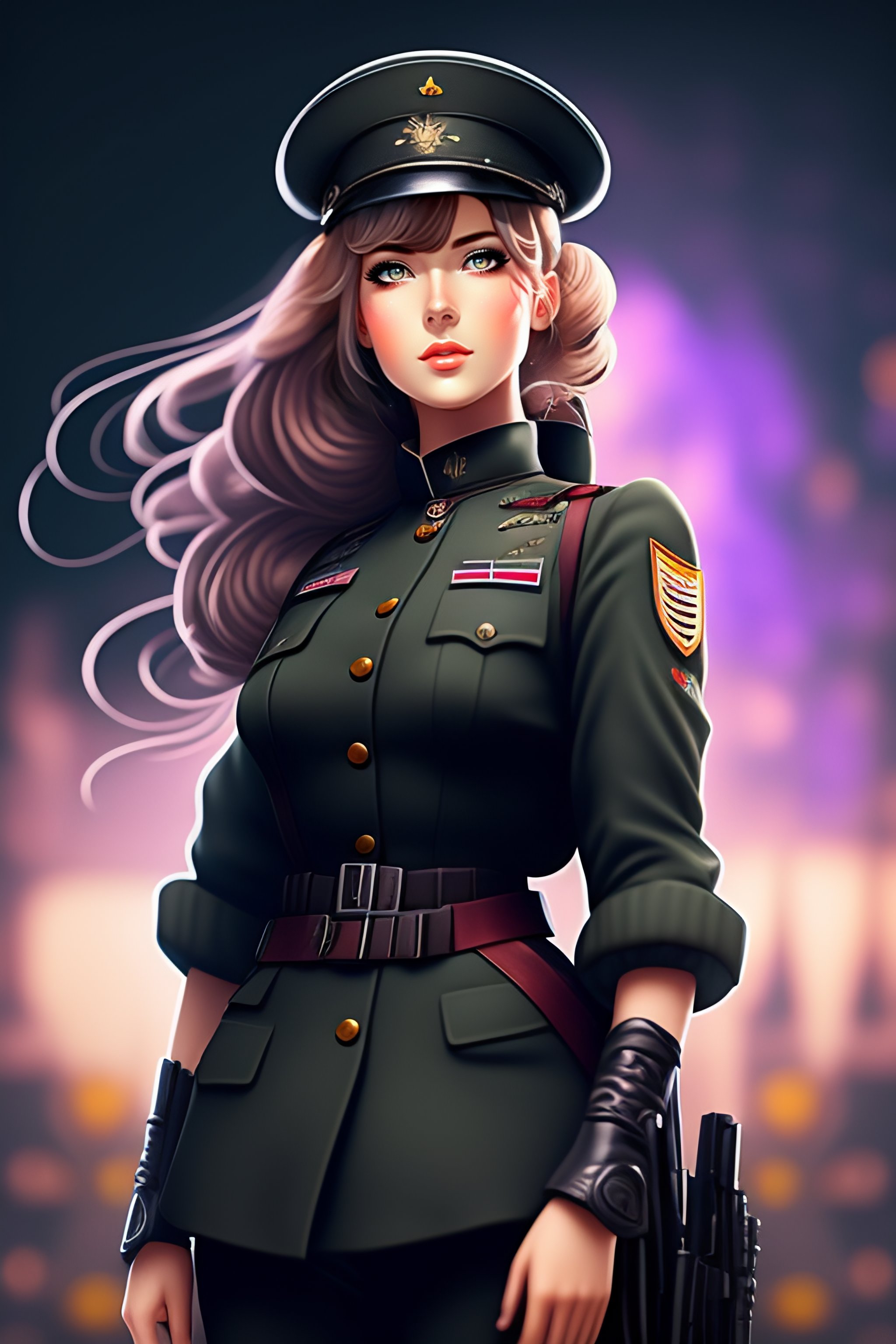 Single german military solider-girl with mp-40 on ww2; anime style; vintage 40's; world war; military; violet evergarden; only black and gray colors