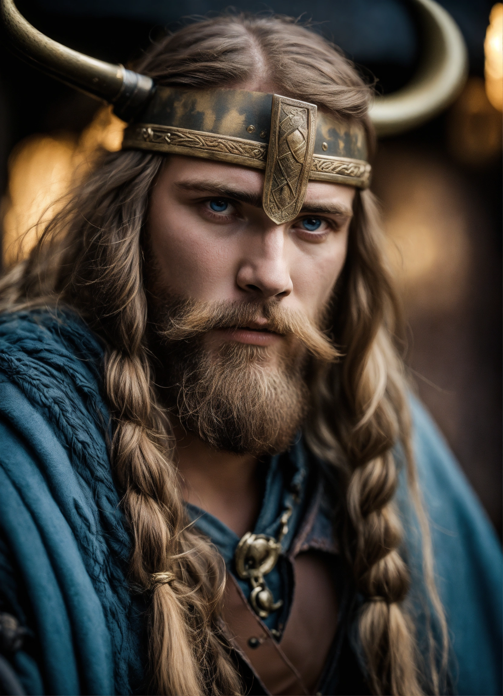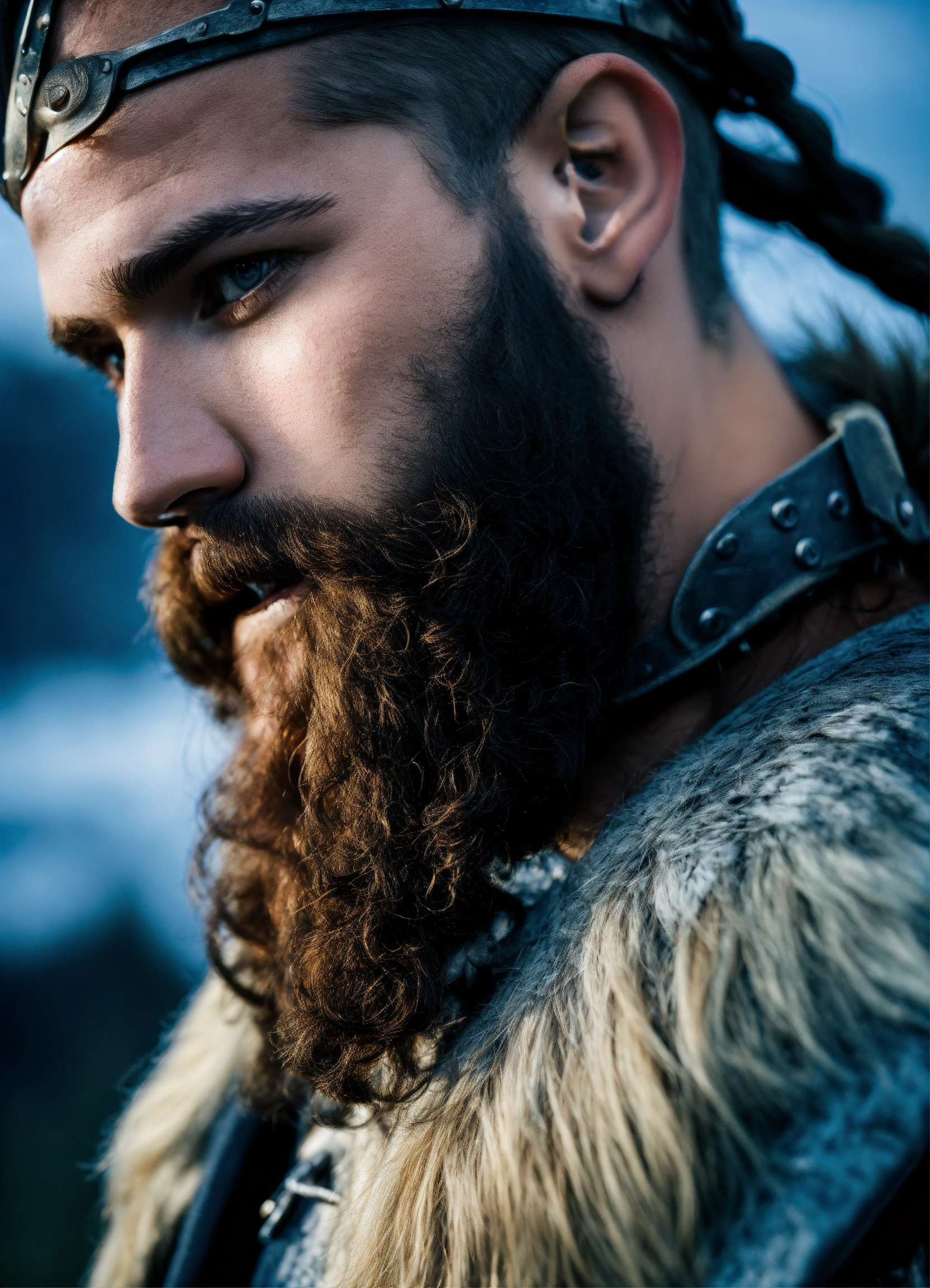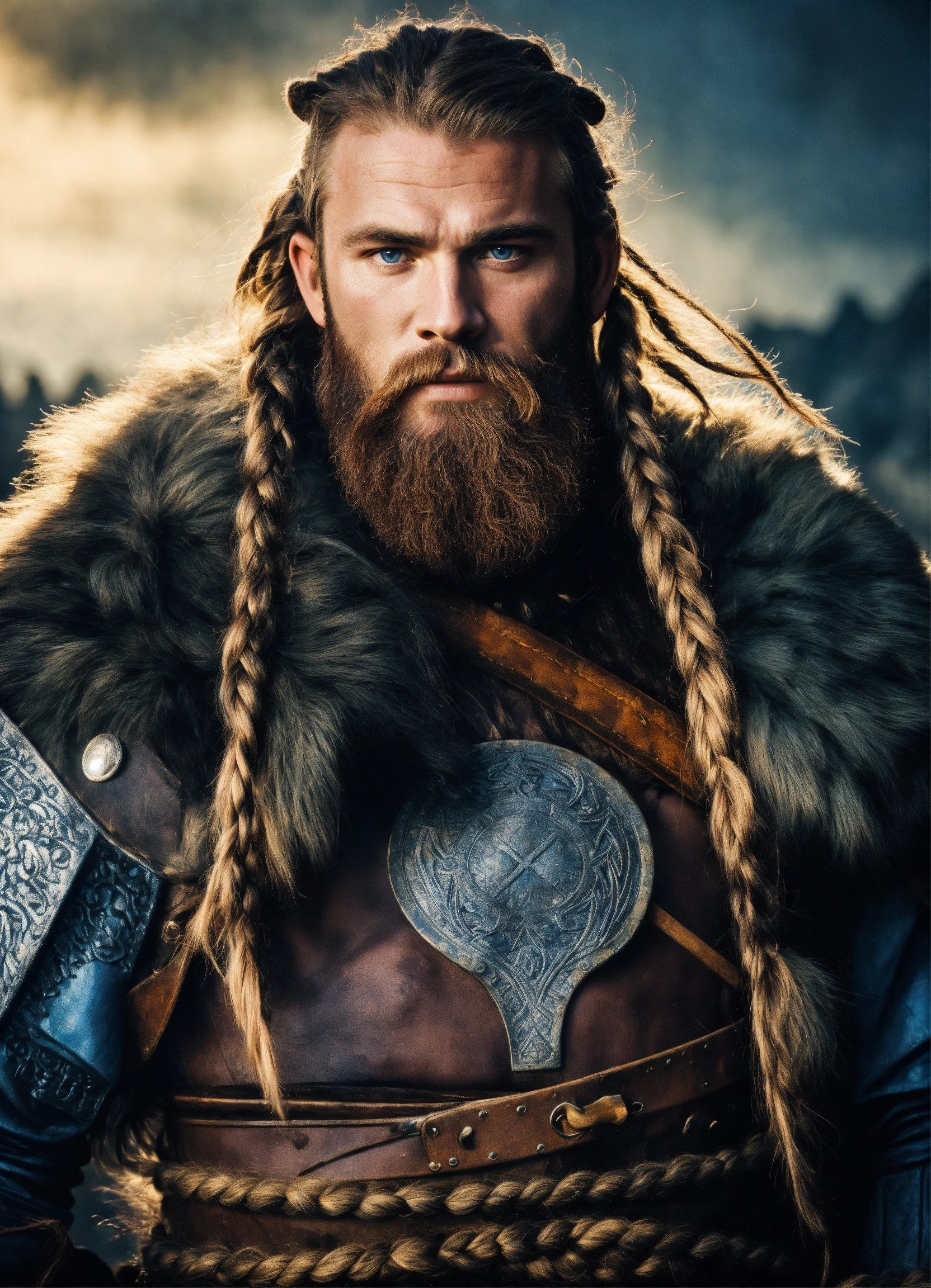 Viking guerrier cheveux long au dessus rasés sur les côtés yeux bleus grosse barbe photo de qualité de face