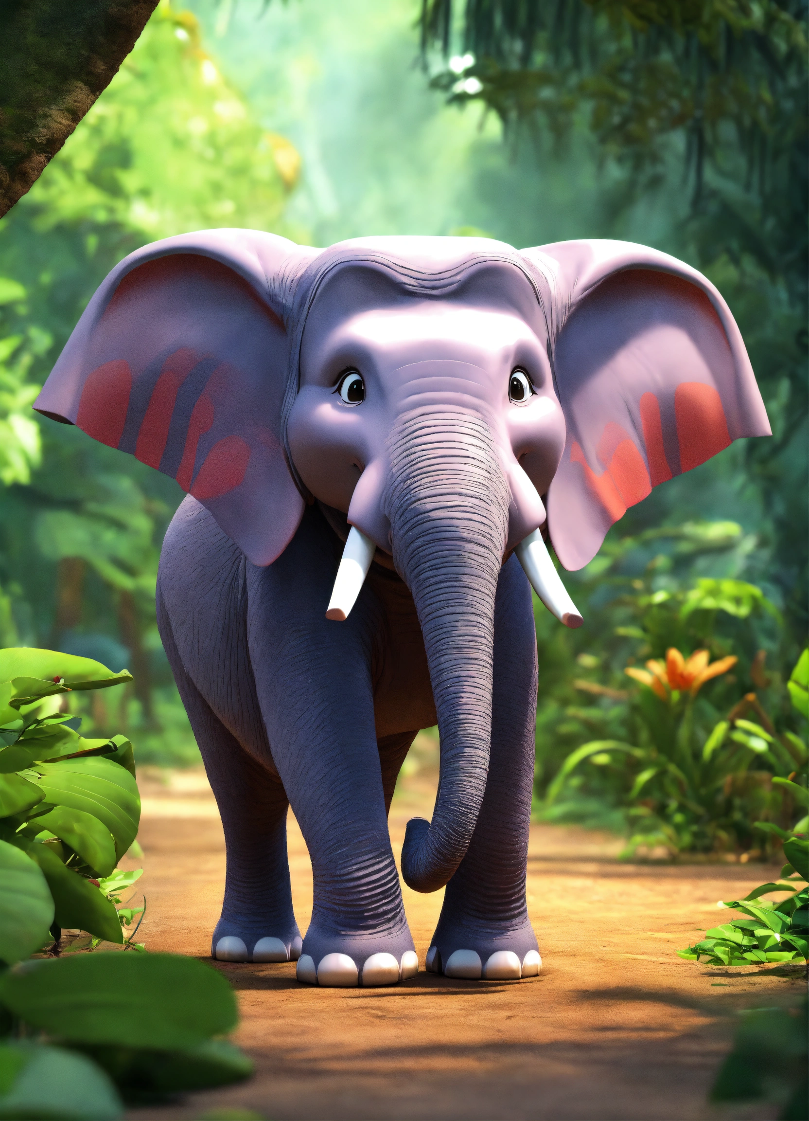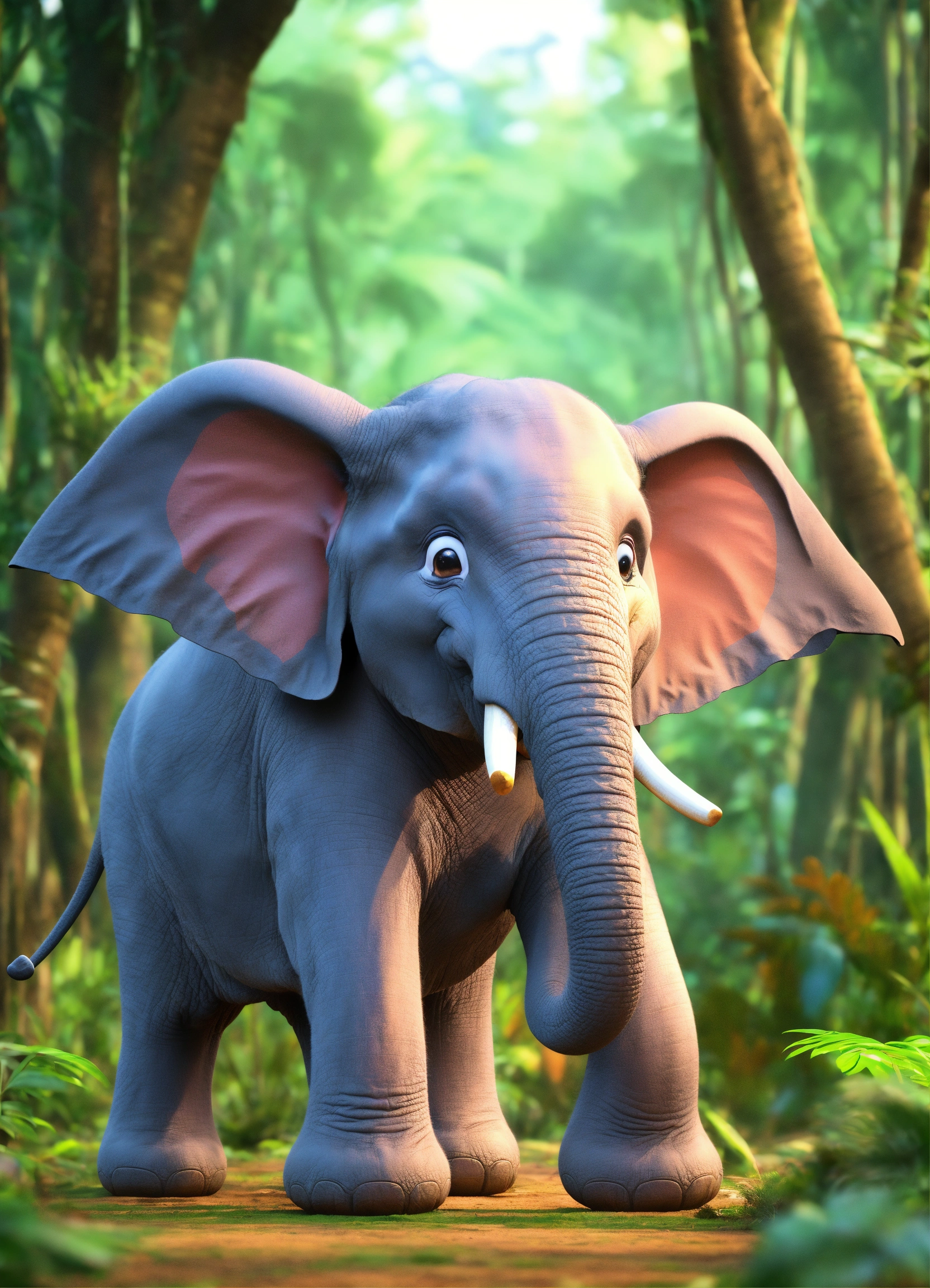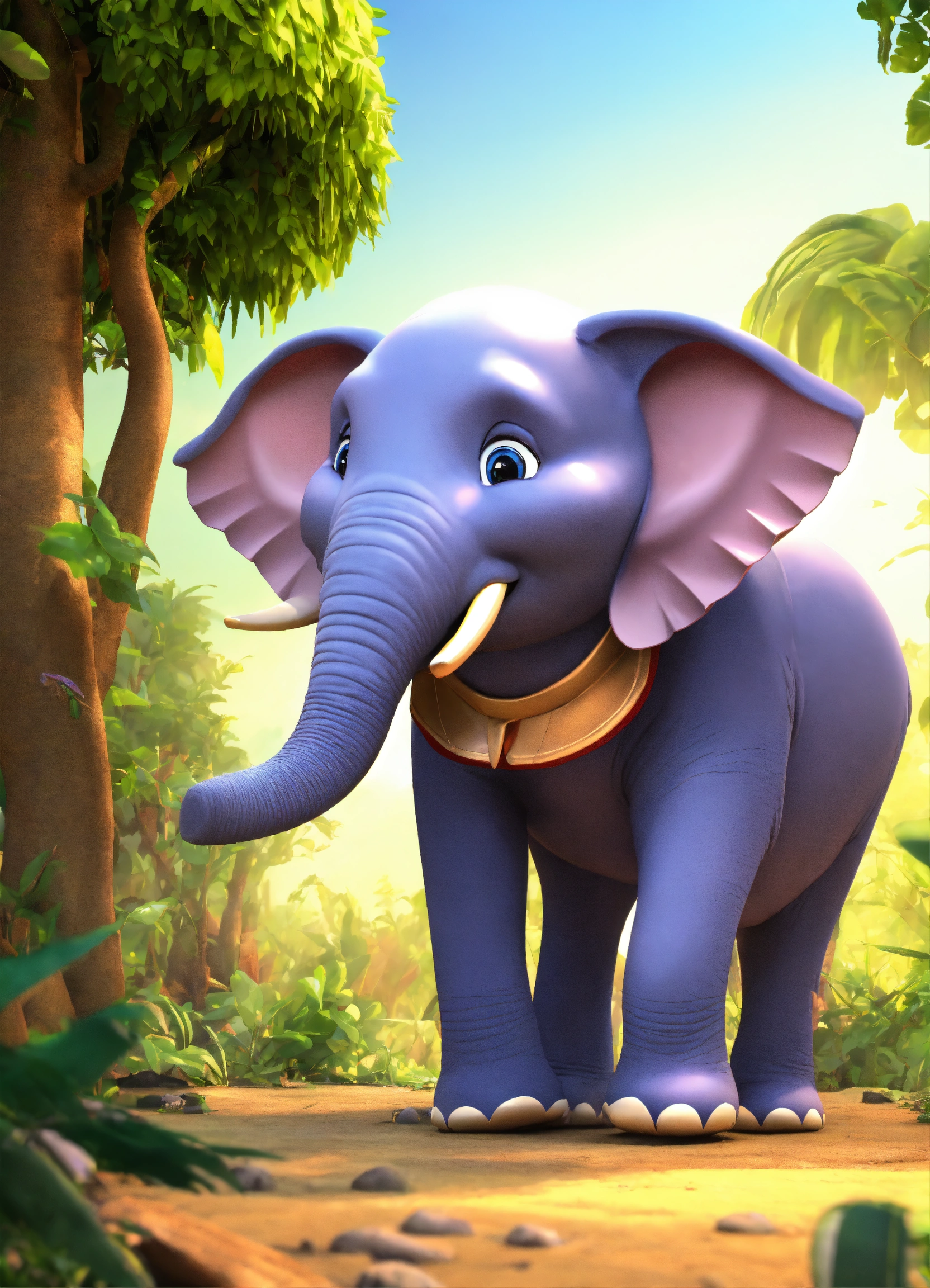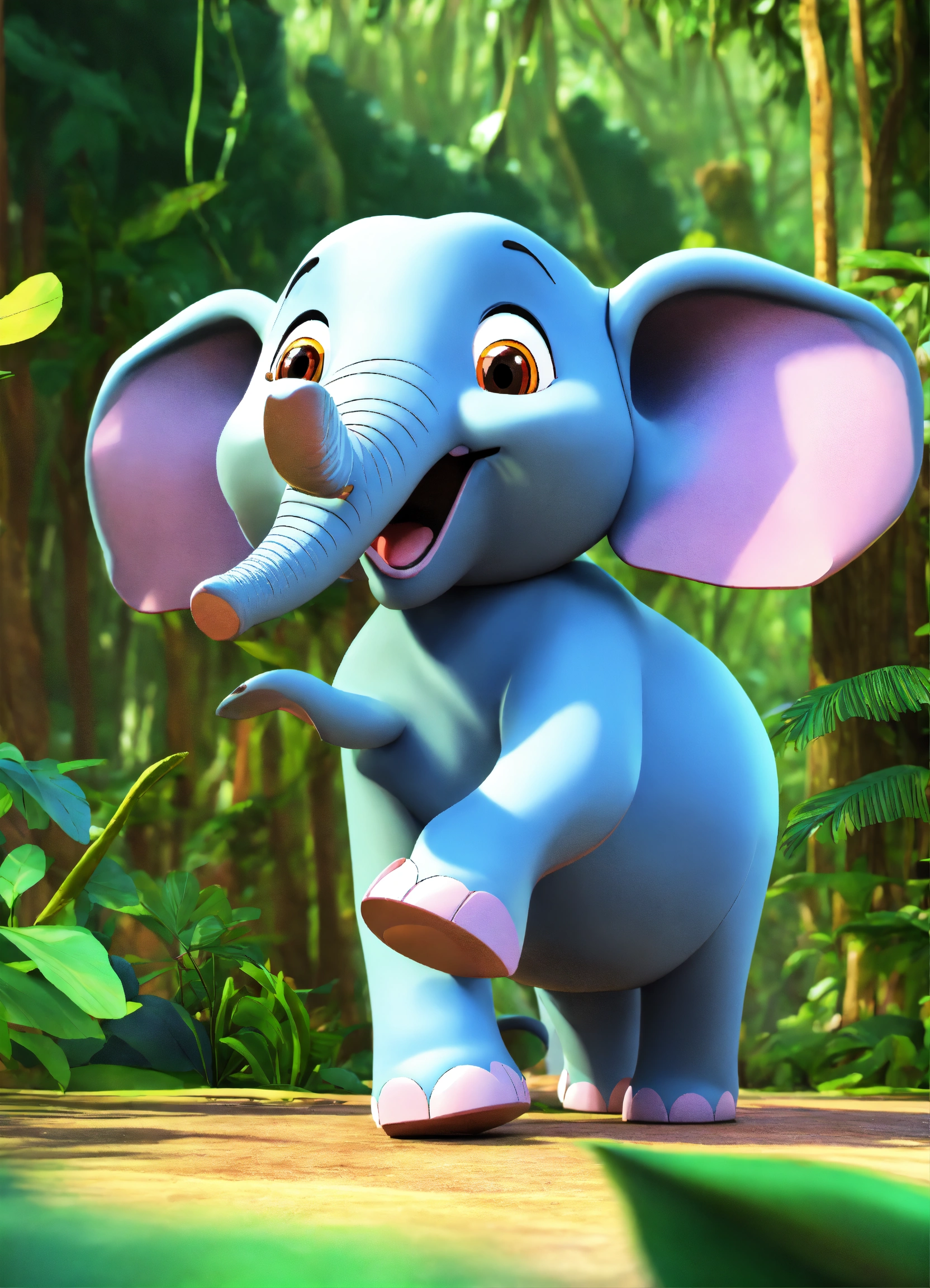 Cartoon 3d single elephant talking very fast happily in jungle