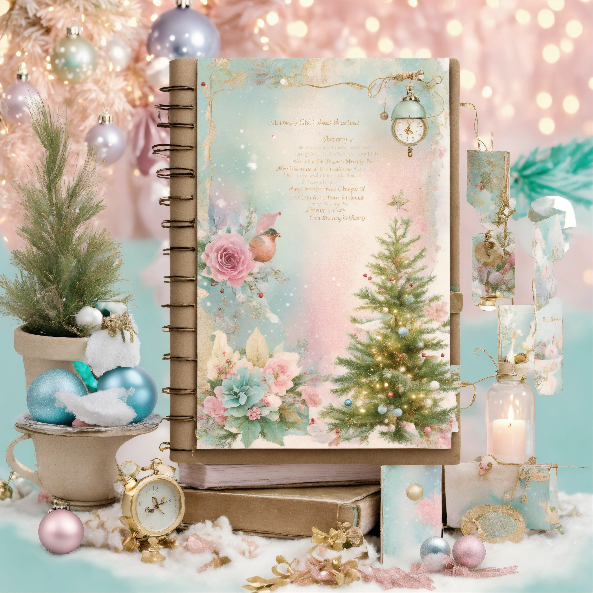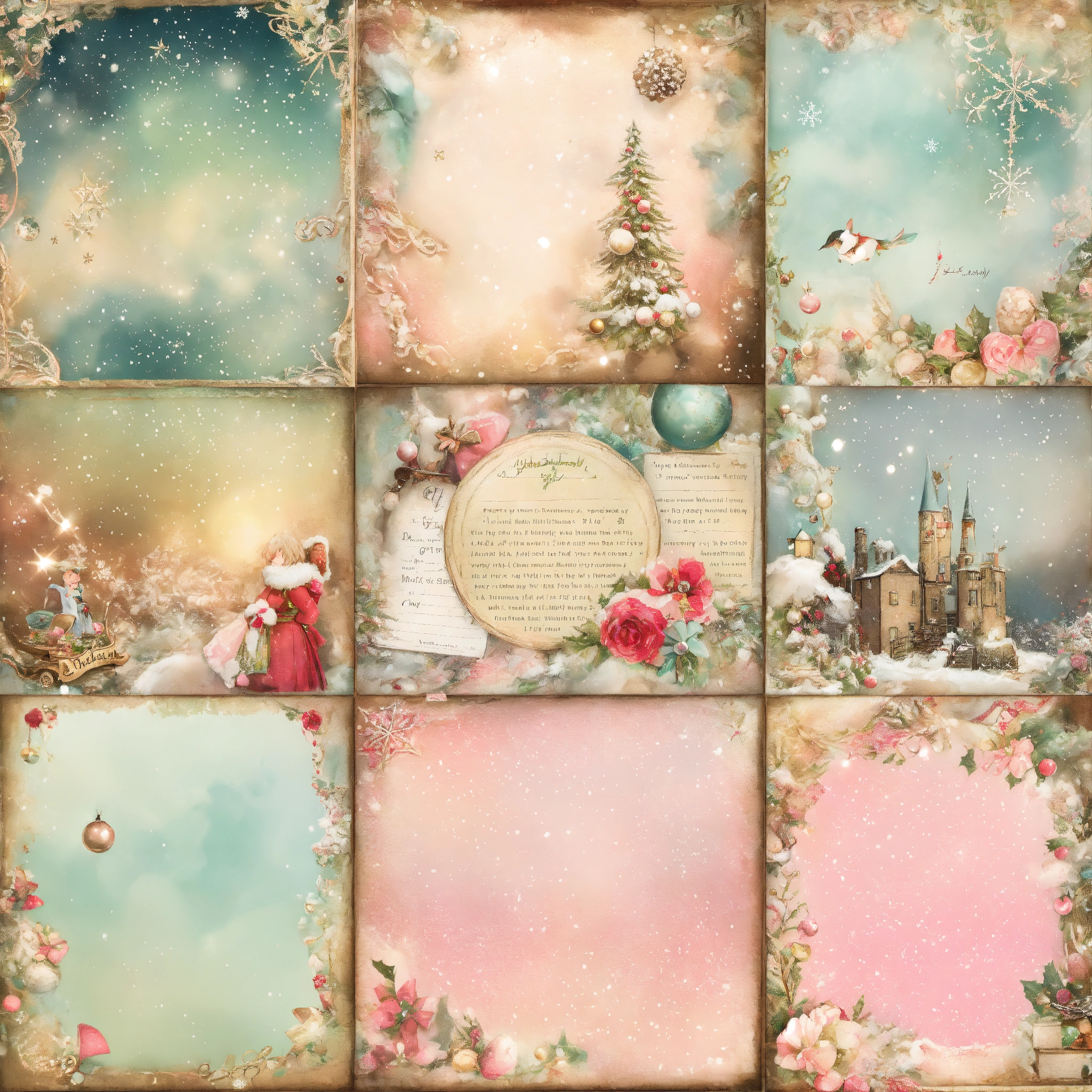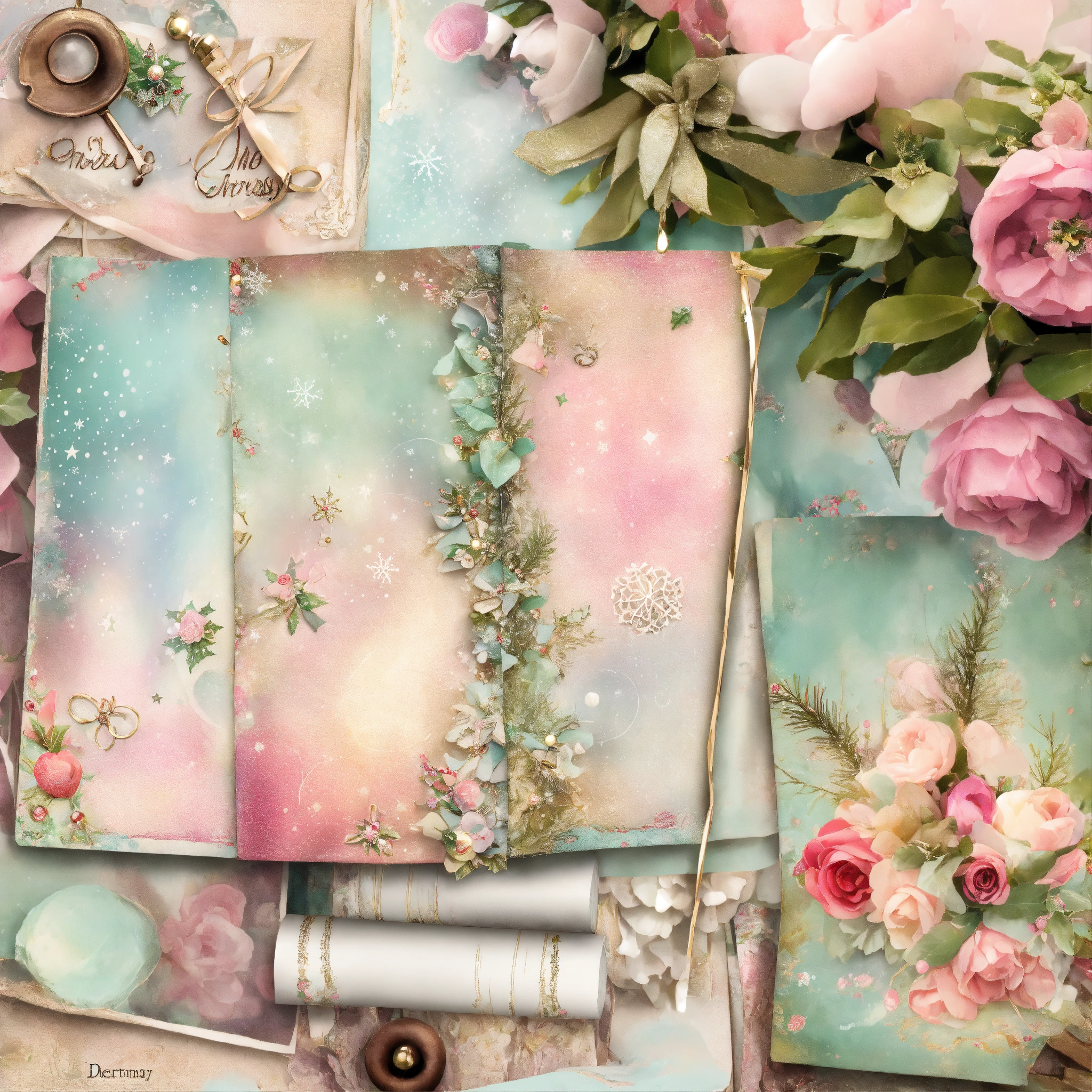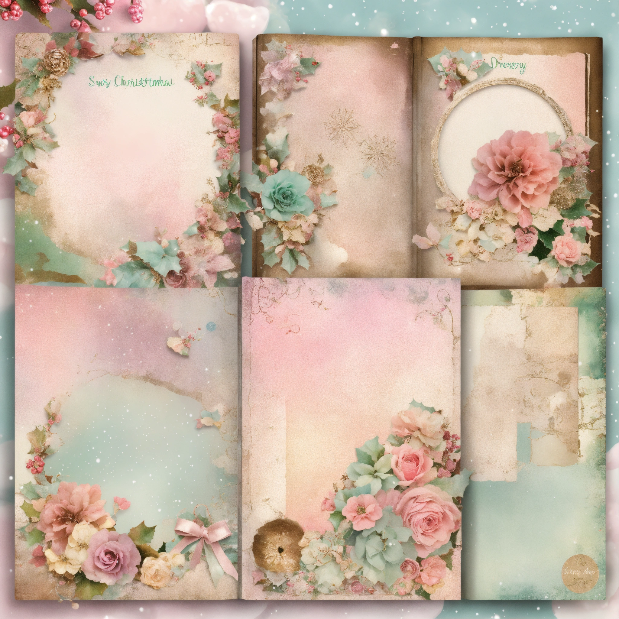 Shabby chic dreamy mist pastel junk journals christmas junk journal digital kit, printable collage sheets, december daily, whimsical pages, winter, journal for child, swirling magical fairytale abstract art style