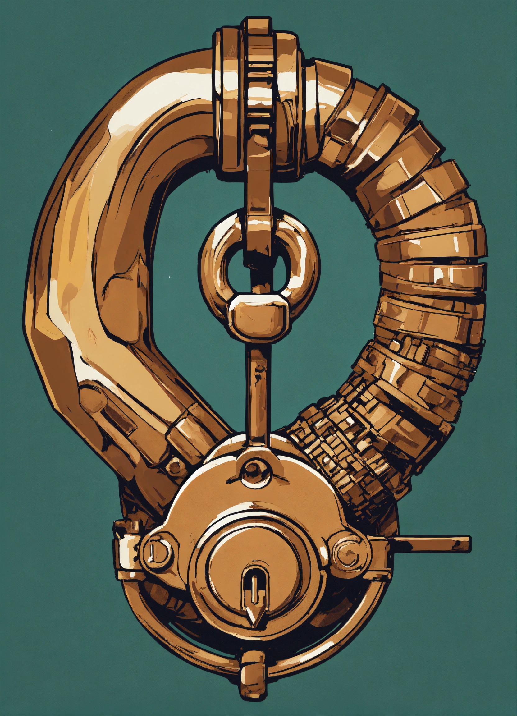 Design a clip art style image that merges the visual elements of a bicep flexing with an unlocked padlock. the bicep should be the main body of the artwork. at the peak of the bicep's curve, where the muscle bulges the most, integrate the shackle of the unlocked padlock. the body of the lock should subtly blend with the lower part of the arm. the keyhole should be visible. emphasize clean lines and simplicity to ensure both elements – the bicep and the lock – are clearly recognizable