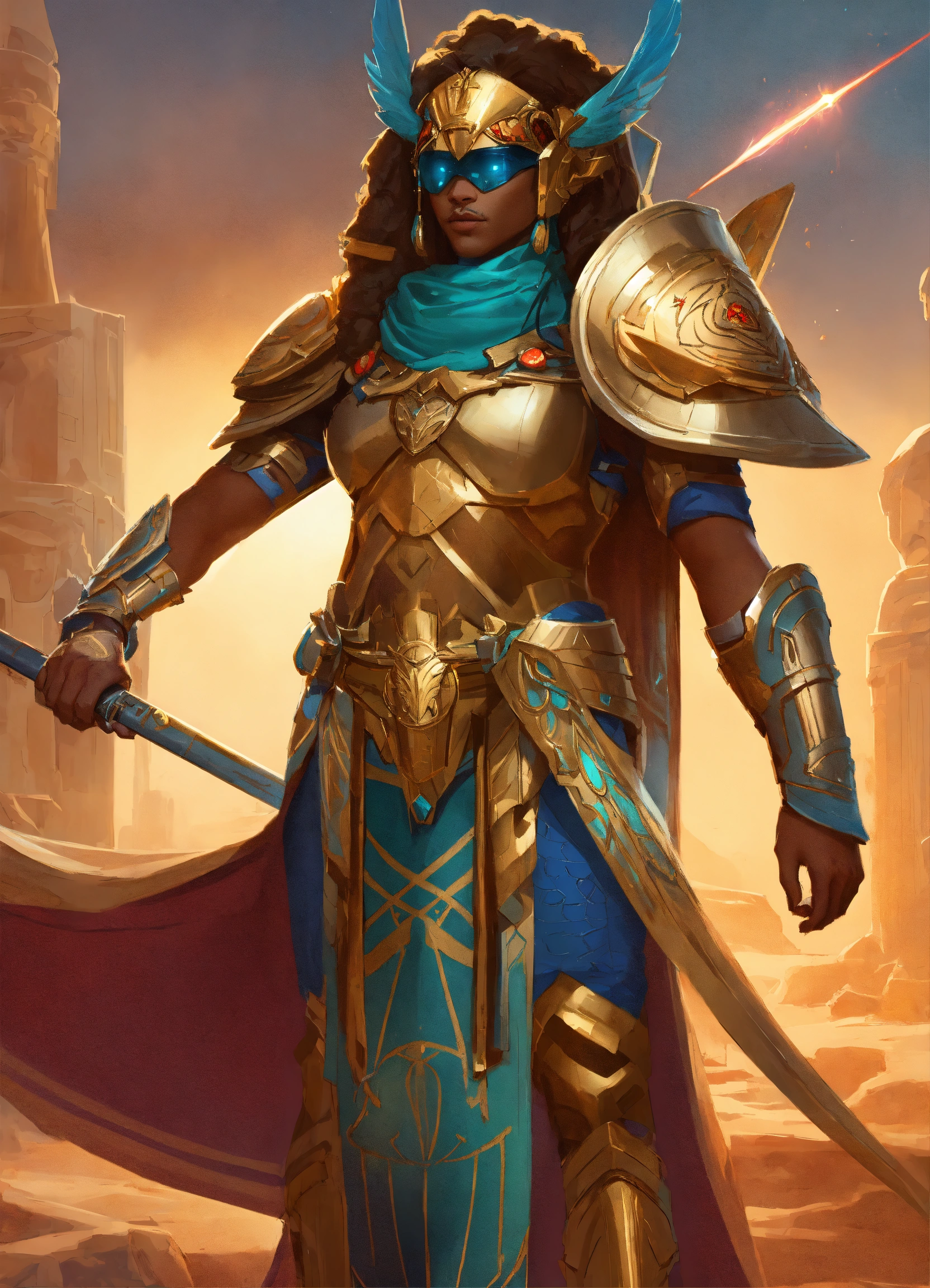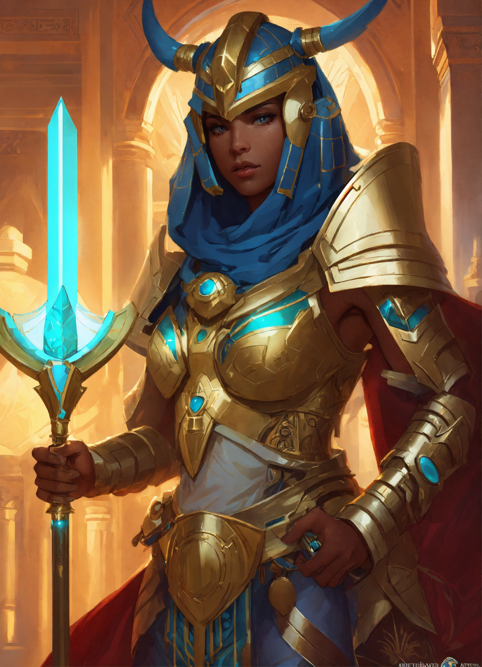 Sci-fi armor wearing anthro pony ethiopian pharaoh, holding a laser khopesh, egyptian, beetle, deep focus, d & d, fantasy, intricate, elegant, highly detailed, digital painting, artstation, concept art, matte, sharp, illustration, hearthstone, art by artgerm and greg rutkowski and alphonse mucha