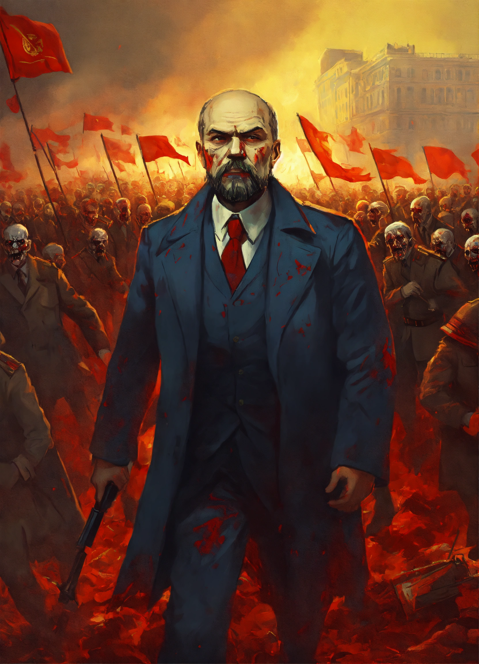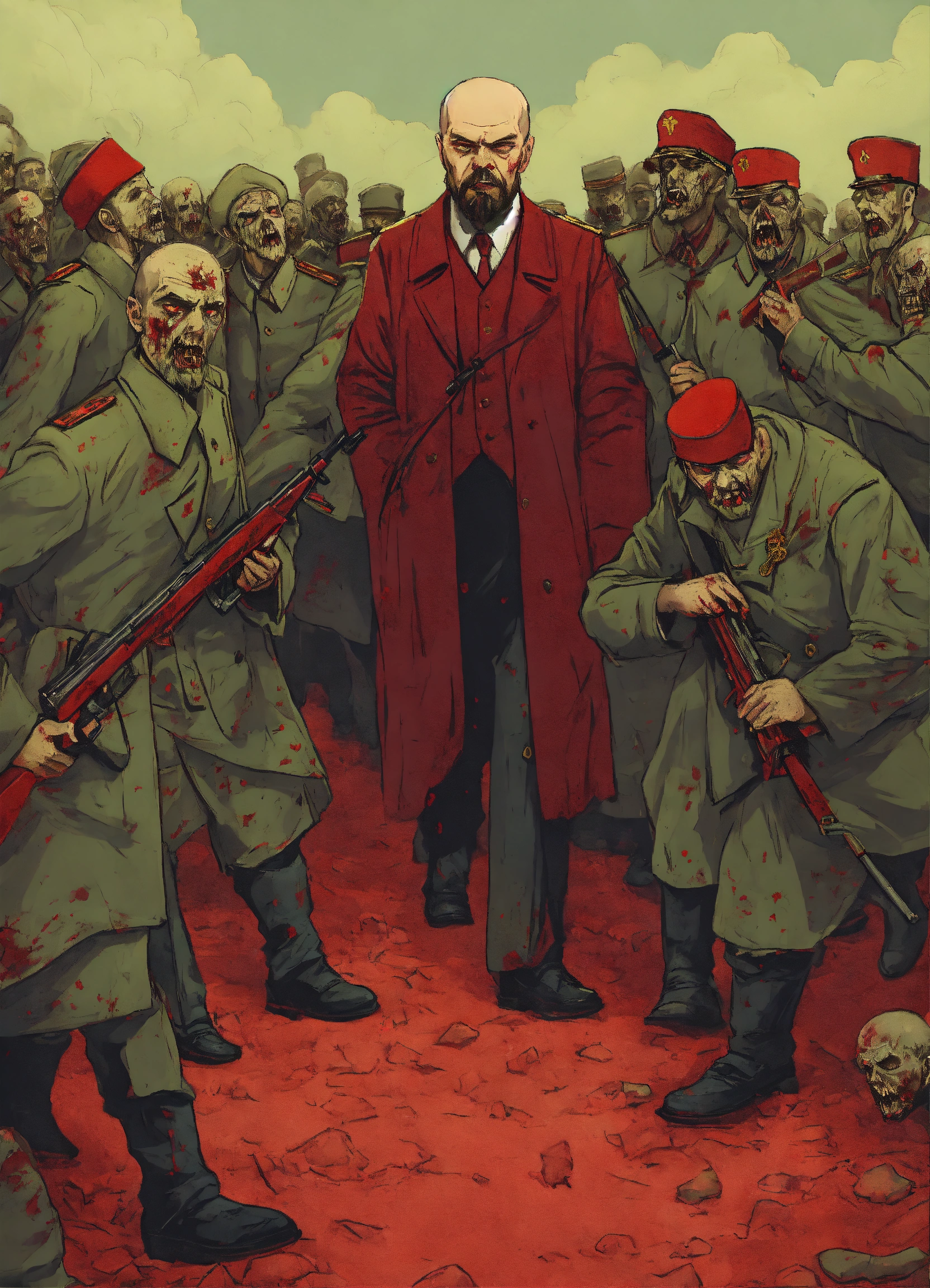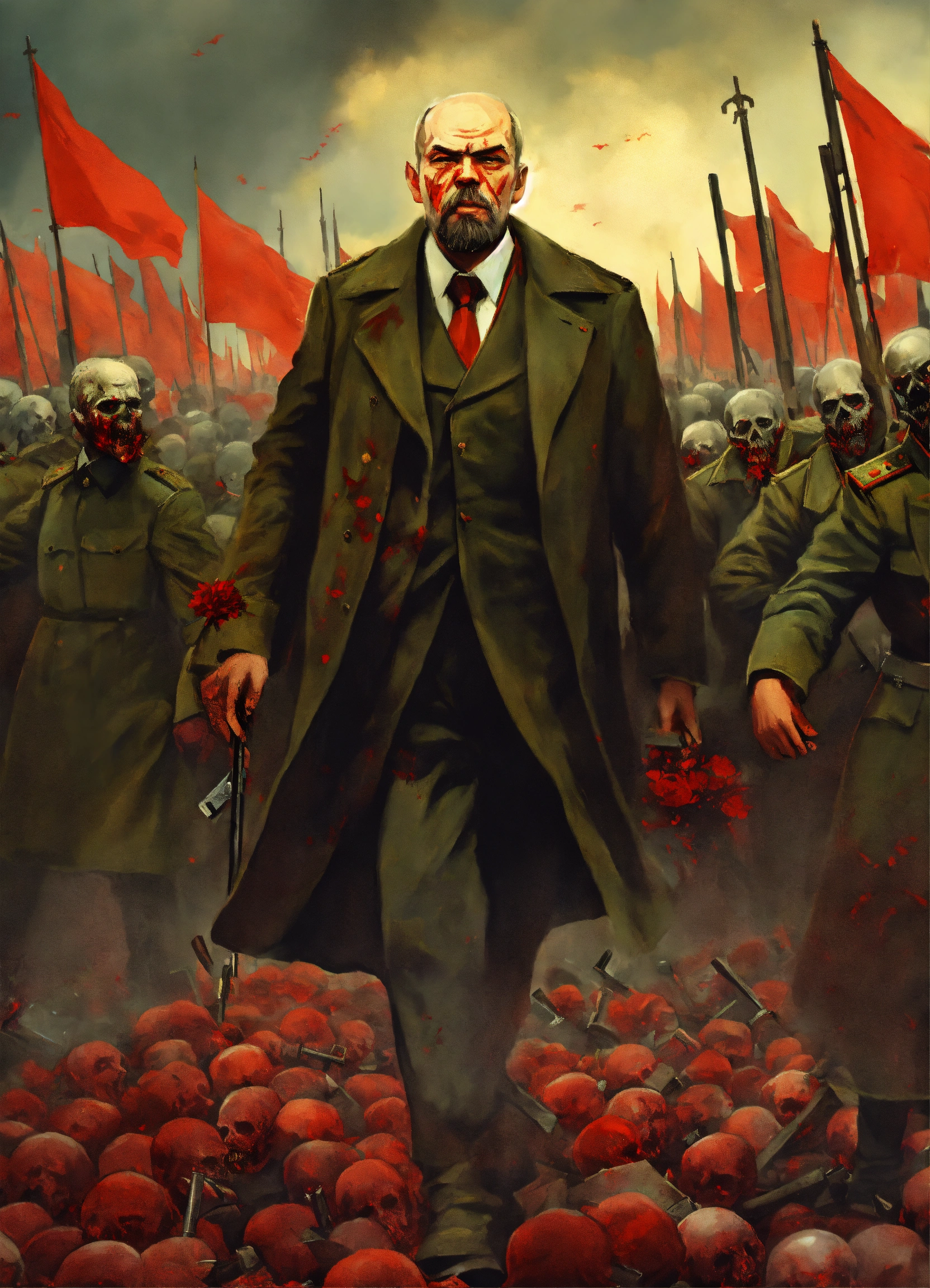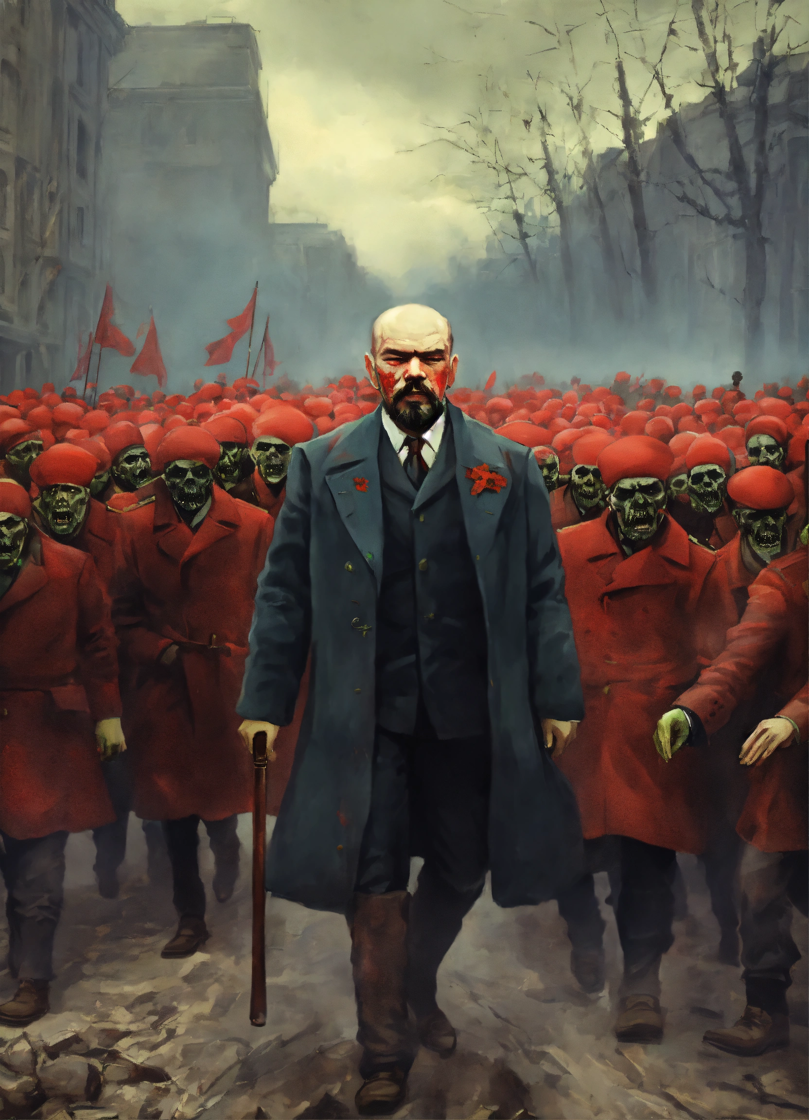A zombie lenin leading an army of undead bolsheviks in russia