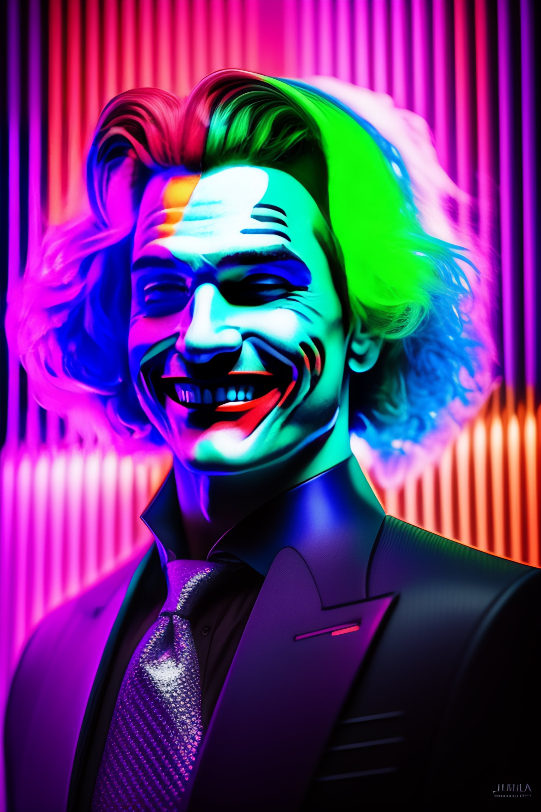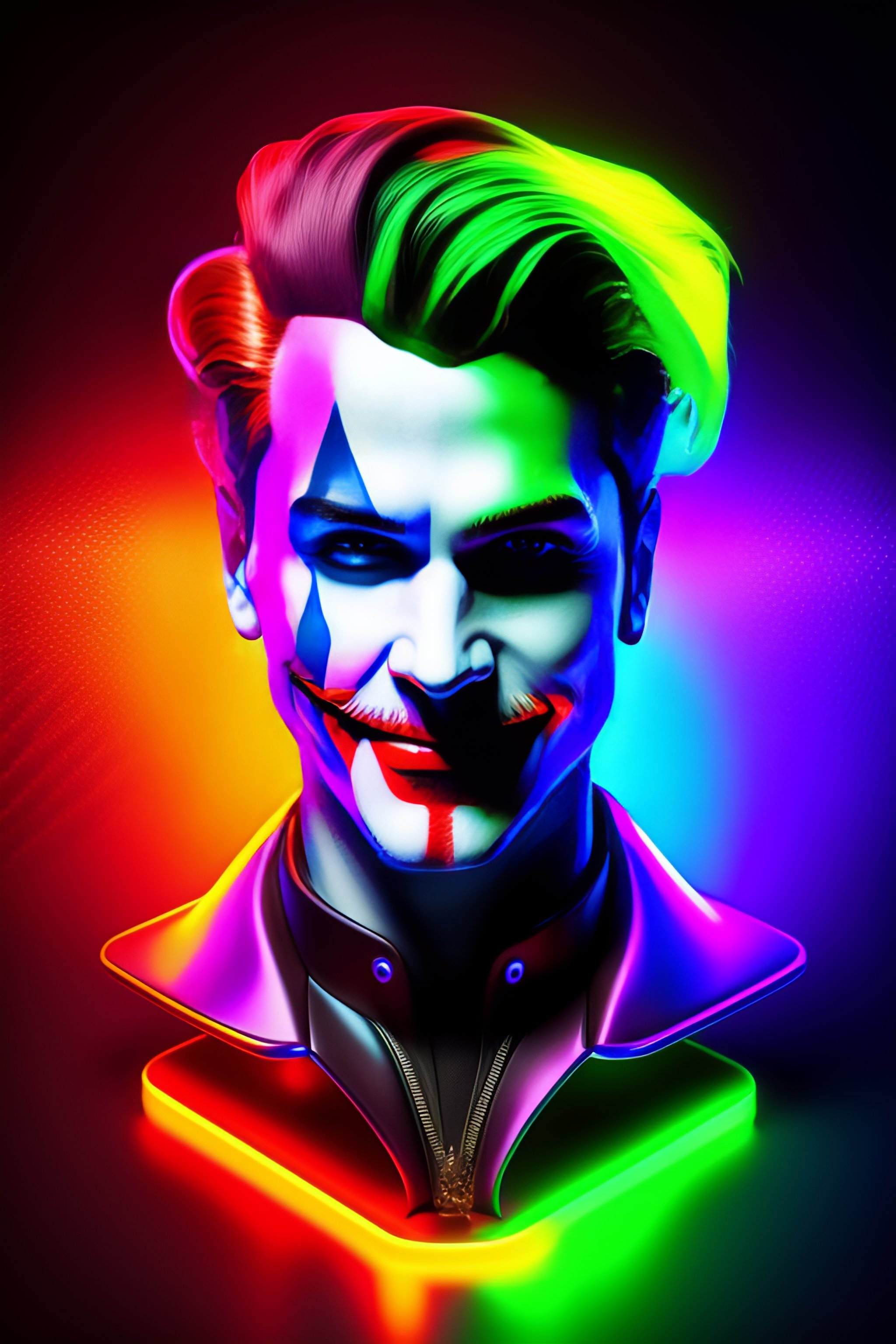 Joker colorful 3d hyperrealistic::5 carbon fiber::5 cyberpunk::2, 5 glitchart::2, 8 hell::2, 3 lsd::1 neon::1 street art::3, 4 concert lighting::1 electric arc::4, 8 fire::1 fluorescent::1 lava glow::1 neon lamp::1 nightclub lighting::1 indigo::1 neon blue color::1 rgb::1 aluminum::1 carbon fiber::1 fiber optic::1 magma::1