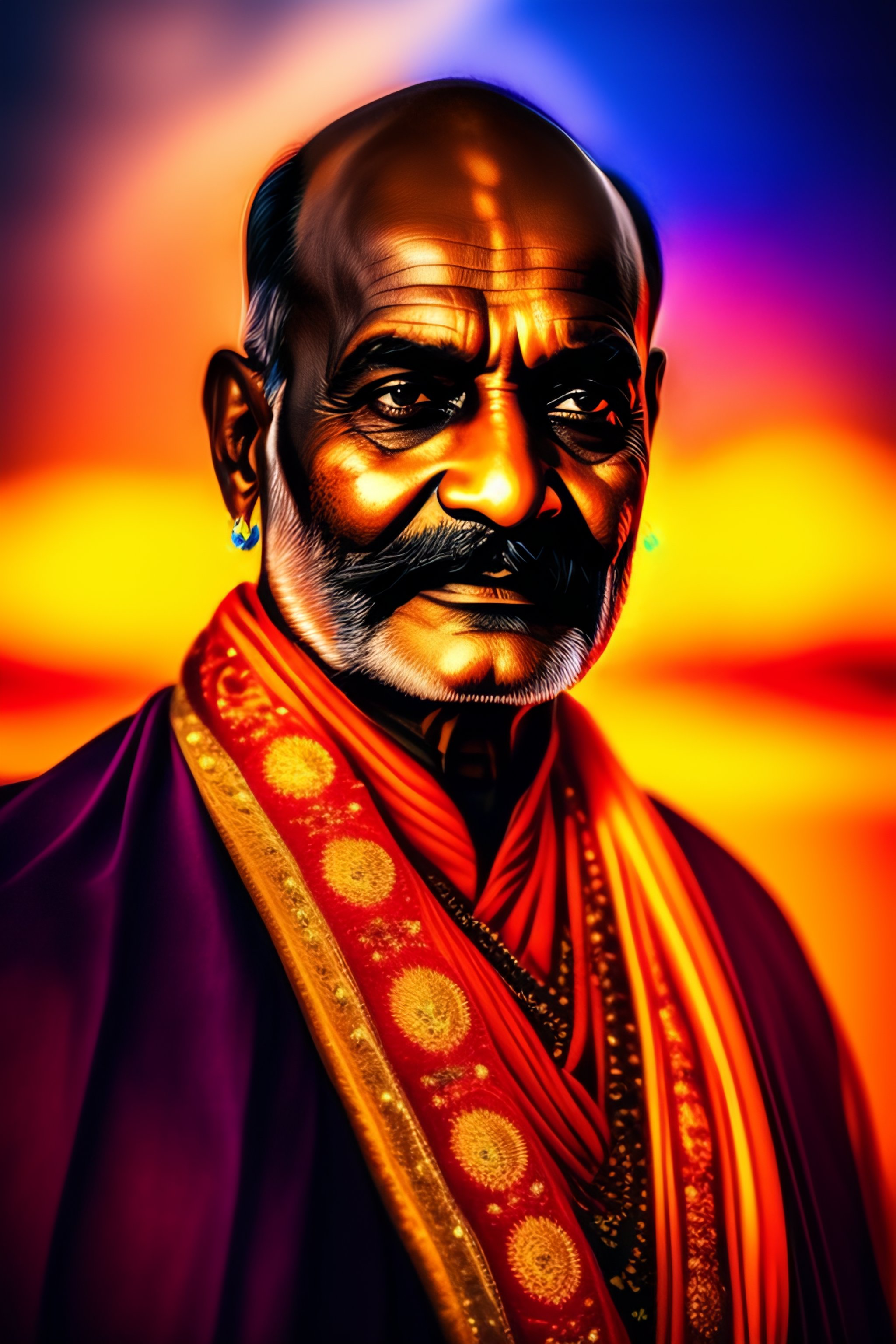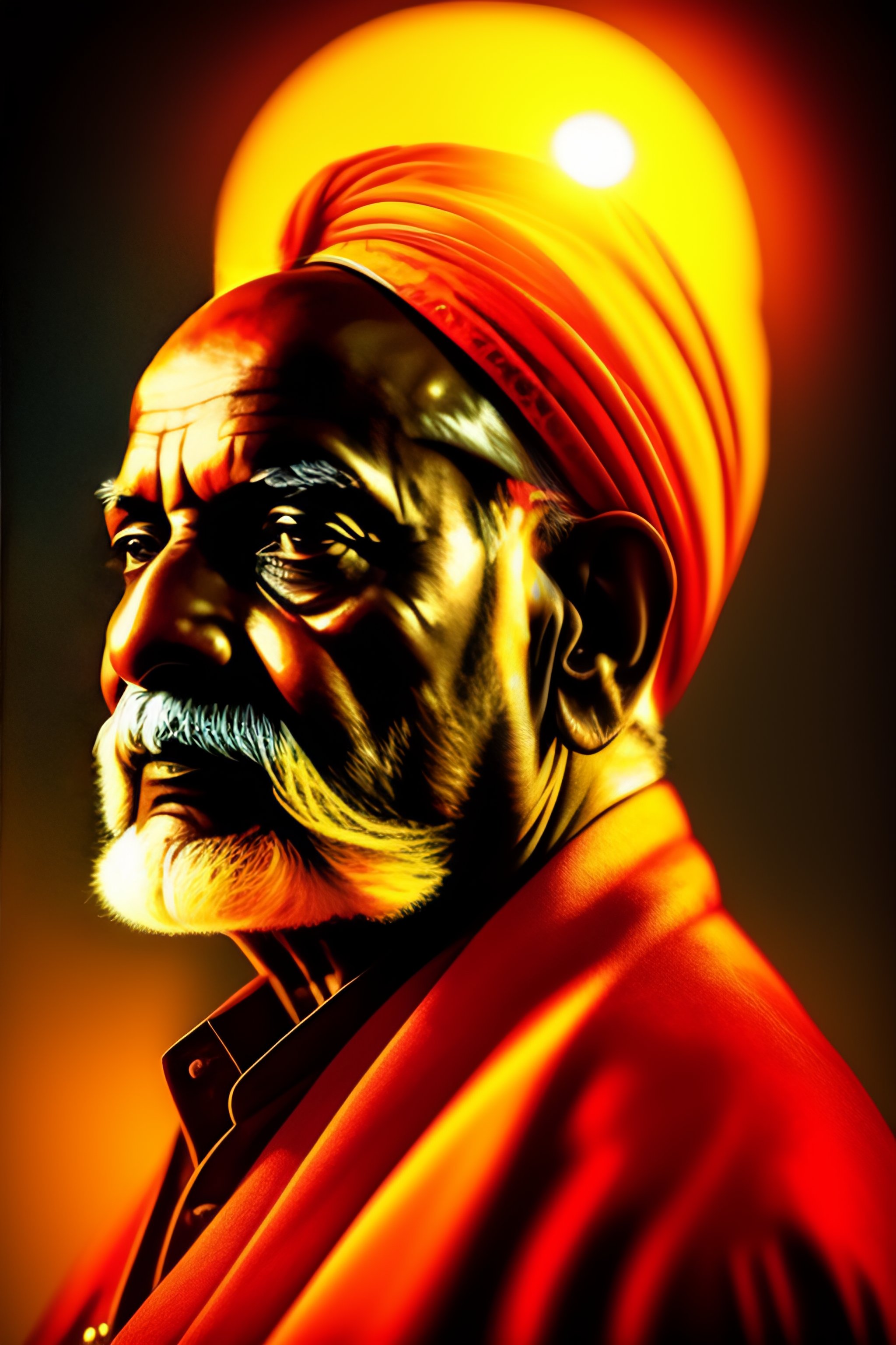 Sardar patel carricature with vivid lighting and indian background with sunrise use image:blob:https://discord, com/67db1248-64e5-46e2-92bf-8b78deb291c4
