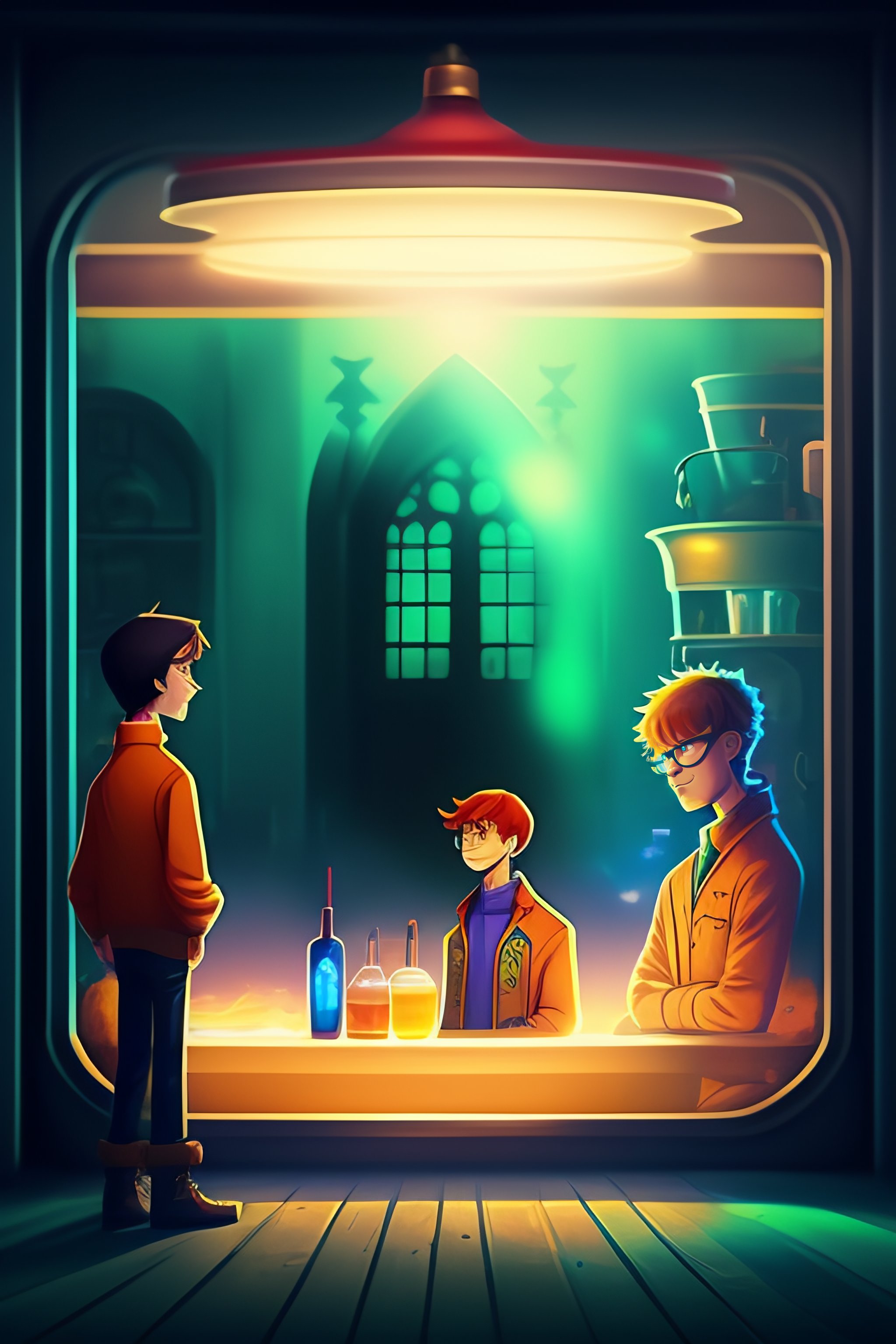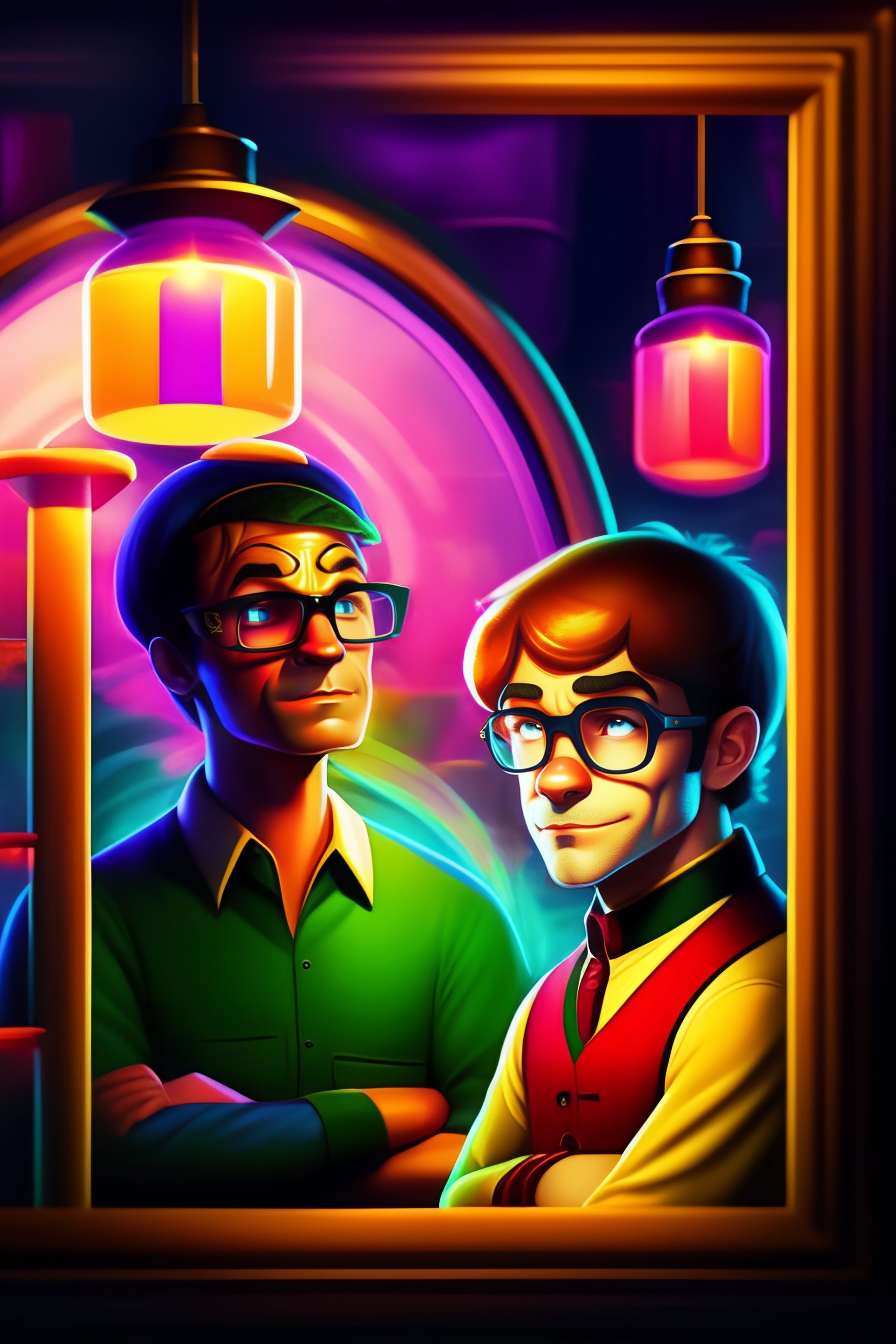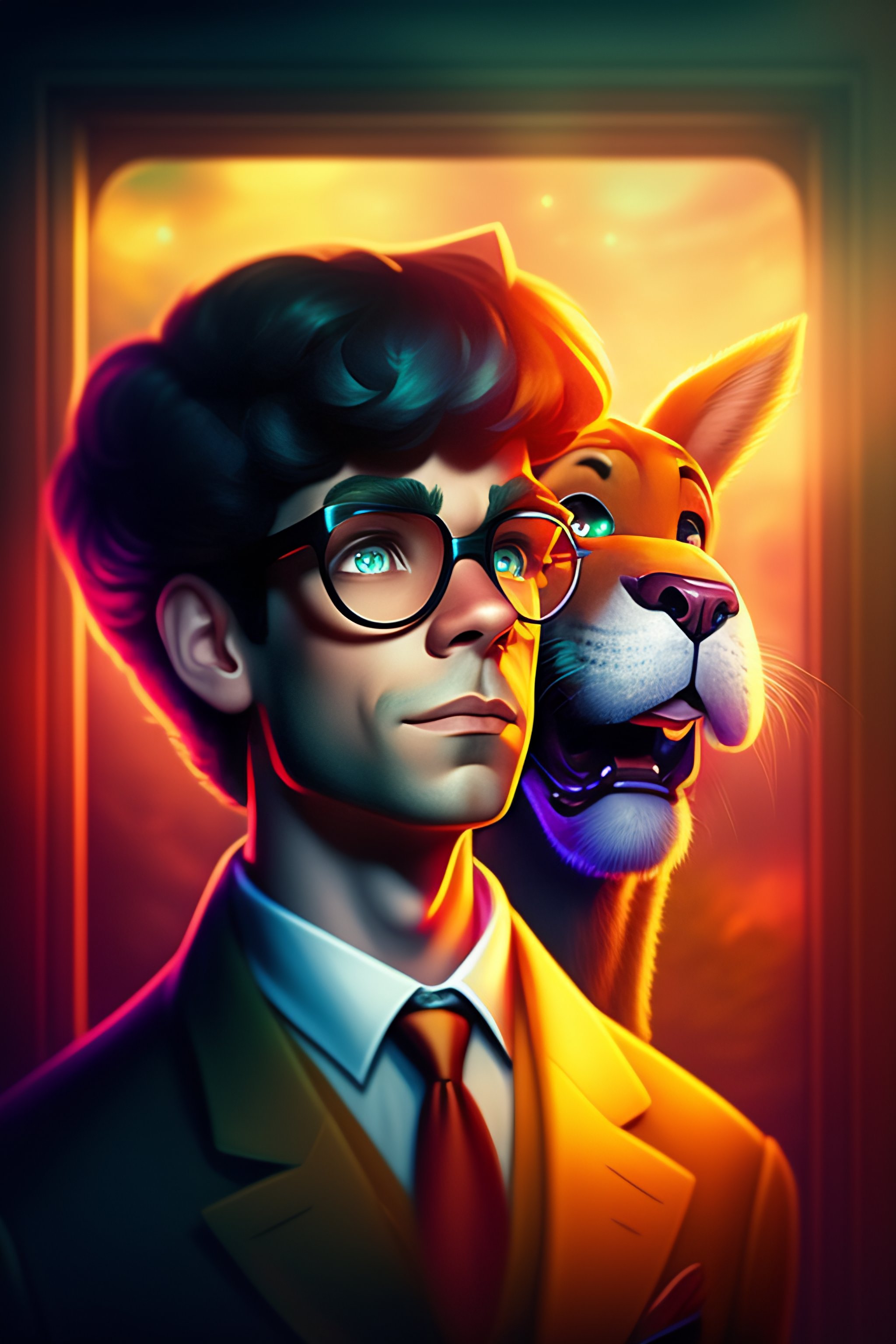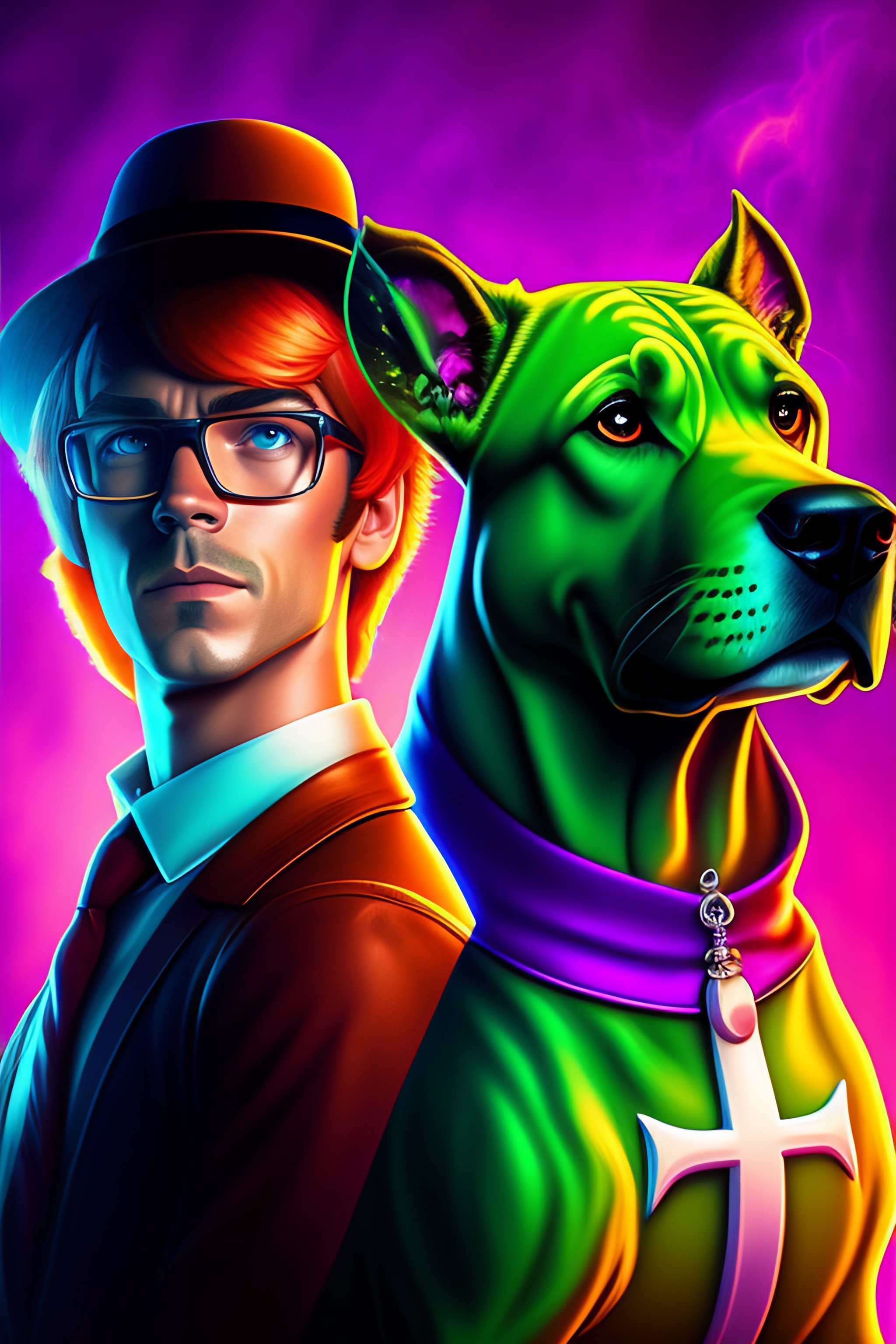 A beautiful album cover with scooby doo and shaggy in an haunted laboratory, rtx, epic photo, pixar art style