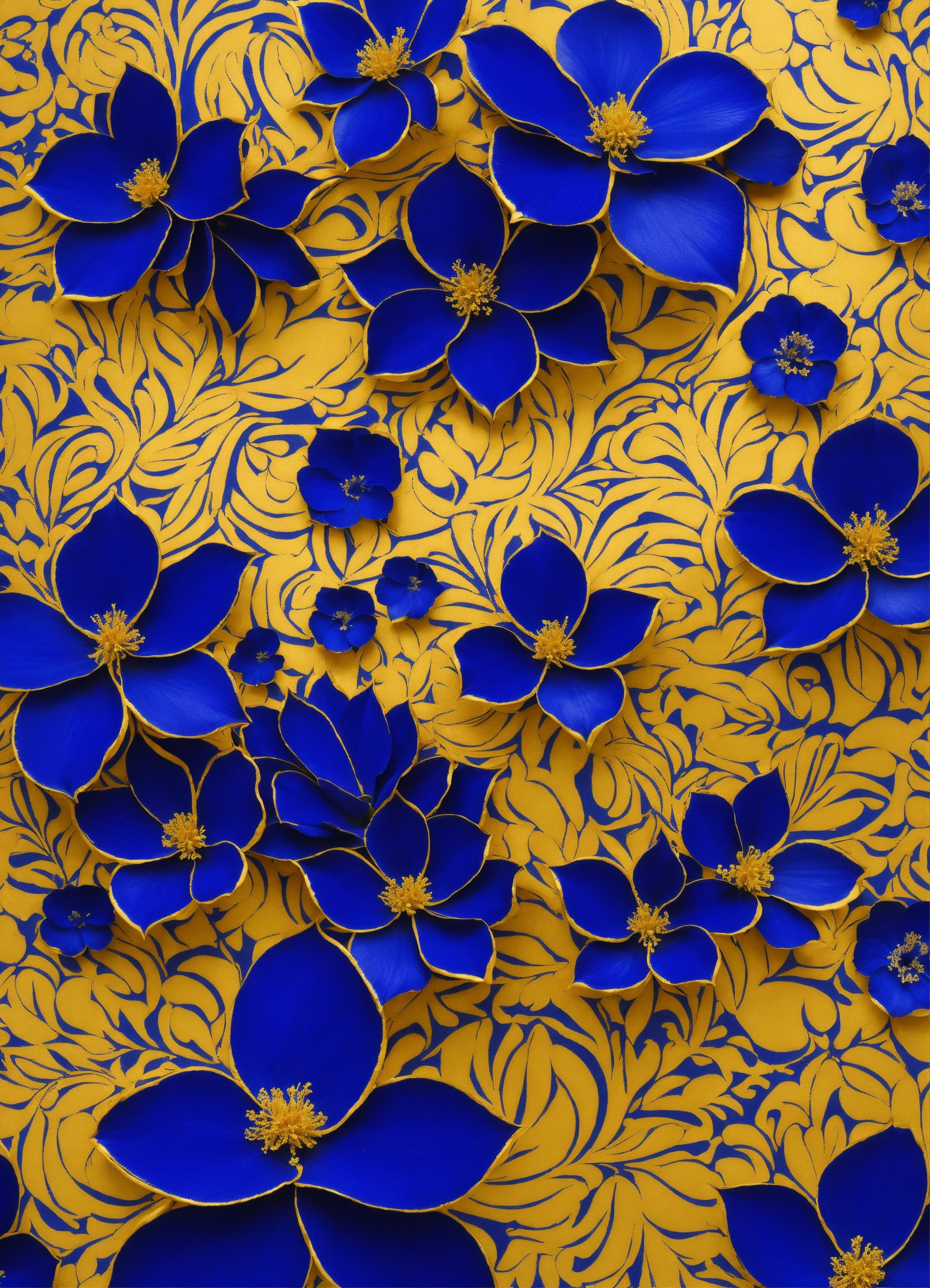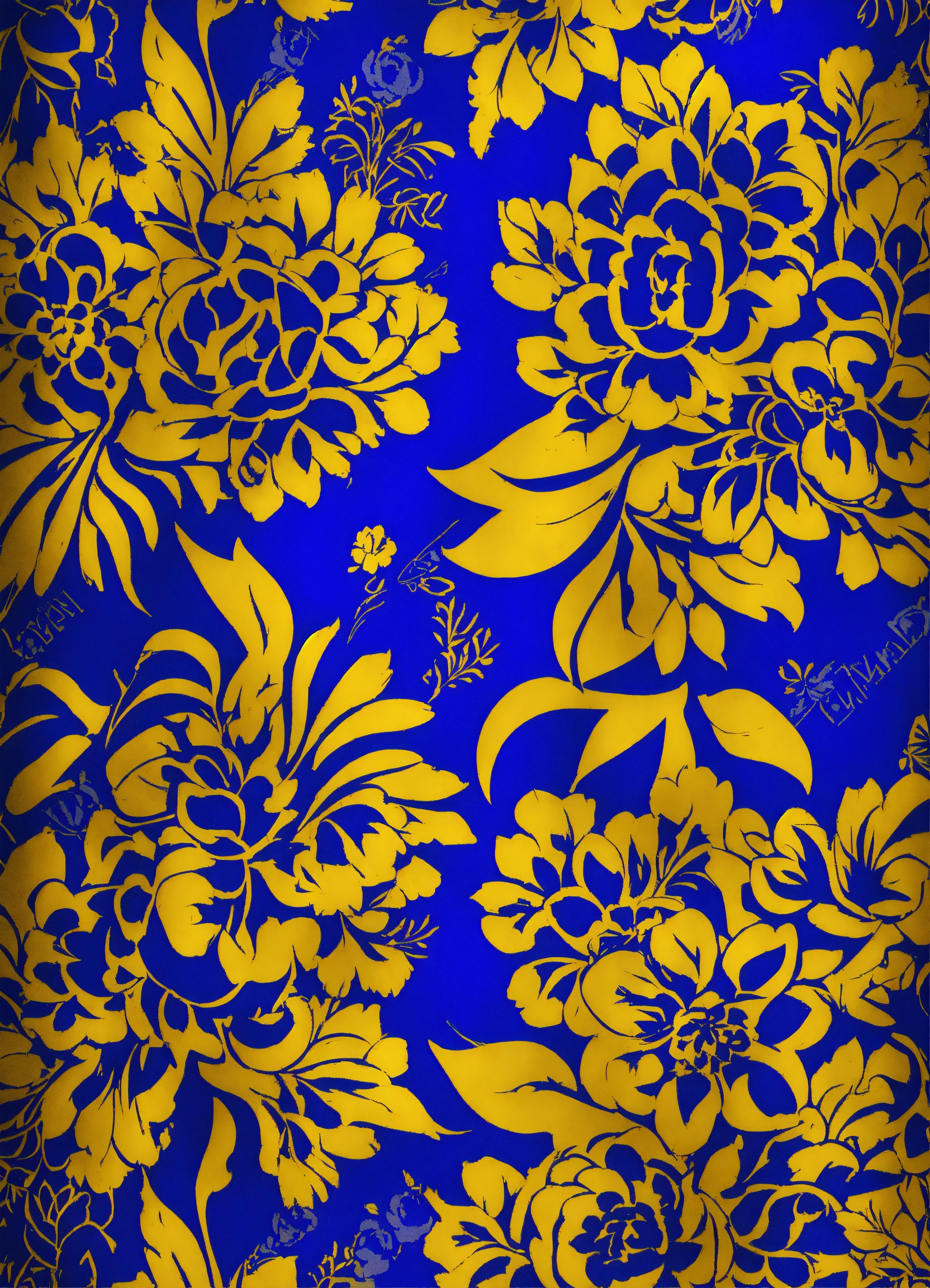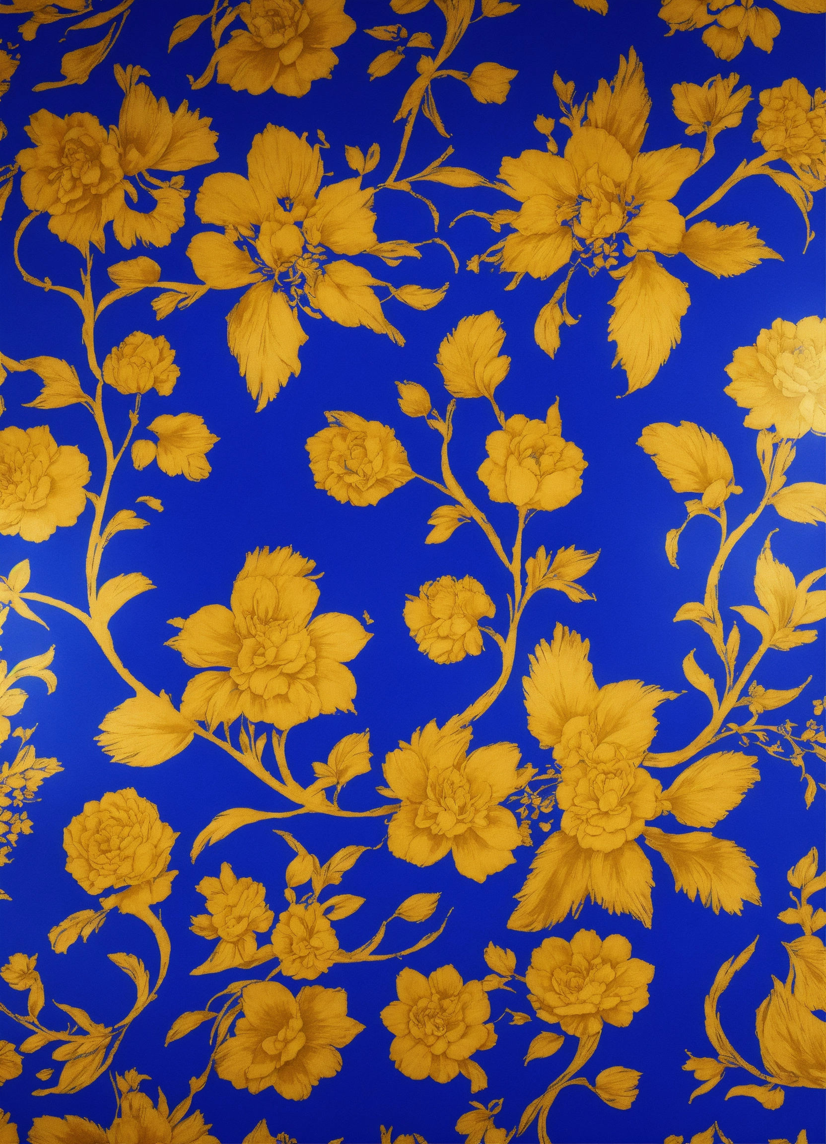 Beautiful floral pattern for gift wrapping paper in international klein blue and gold repetitive images