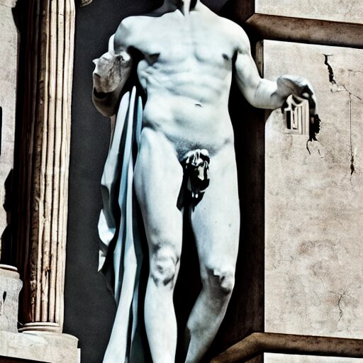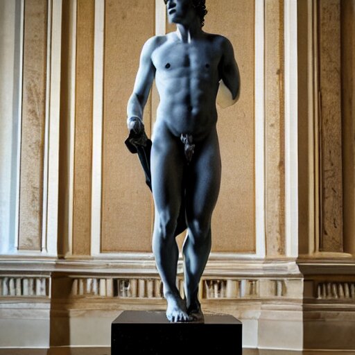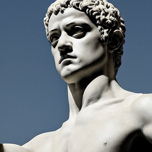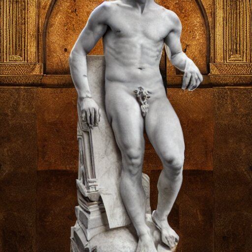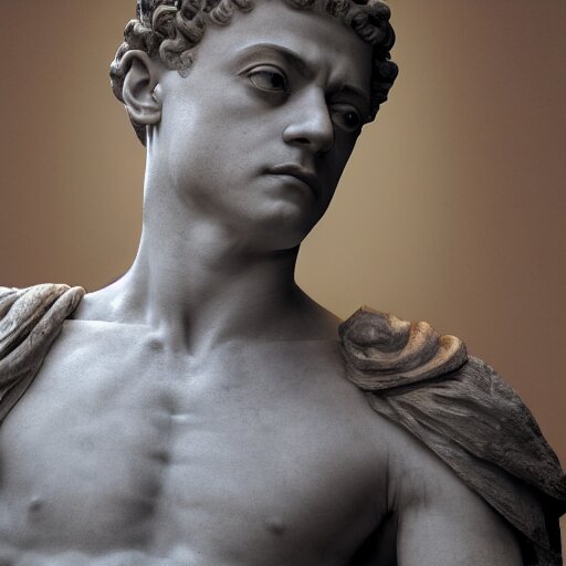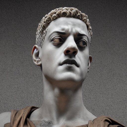 Rami malek as marble statue of ancient roman emperor, created by michelangelo, museum photoshot, 3 d photorealistic render, high resolution, 8 k