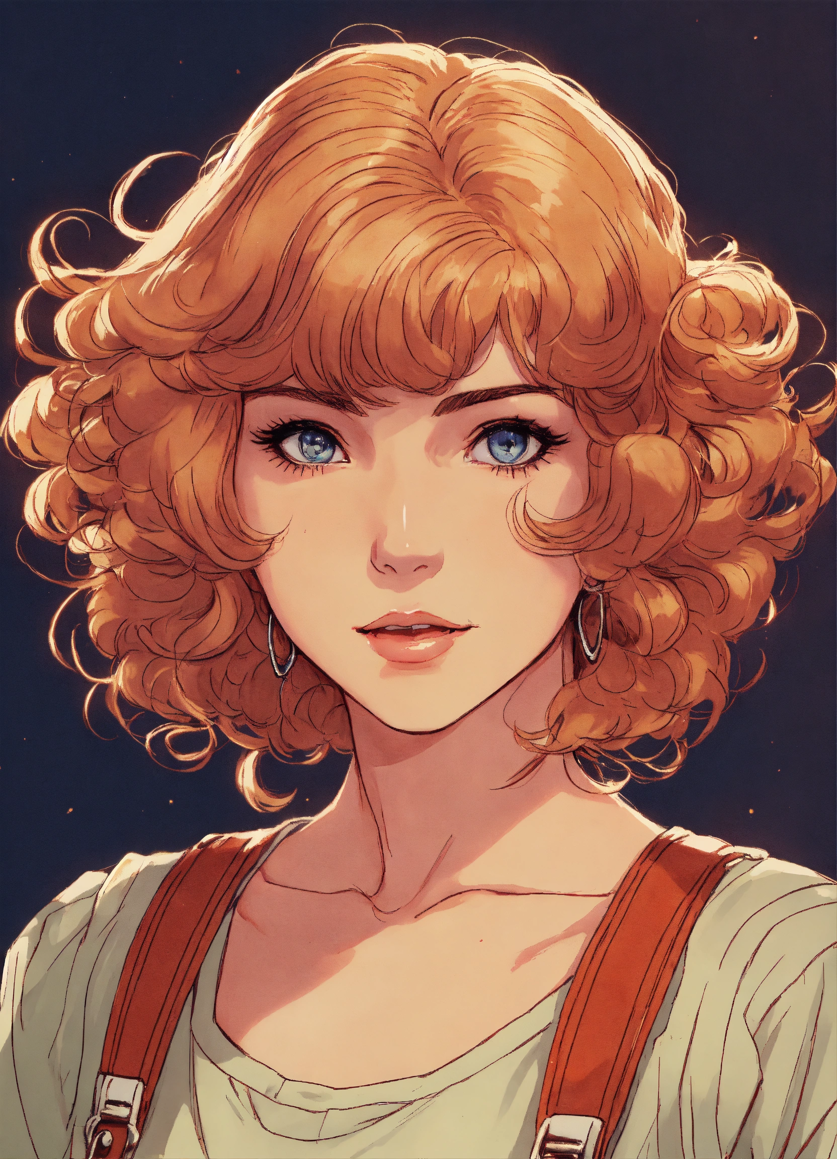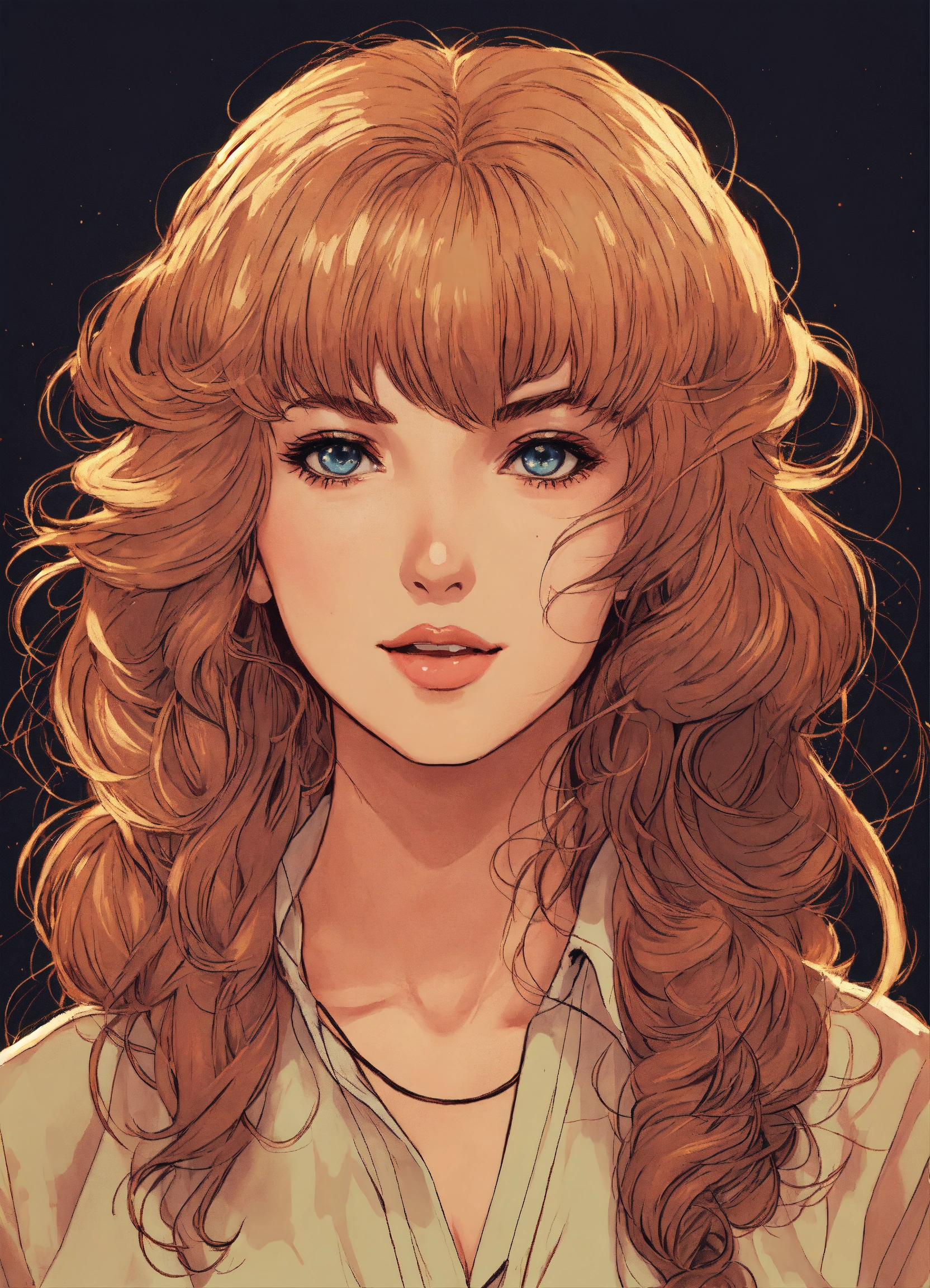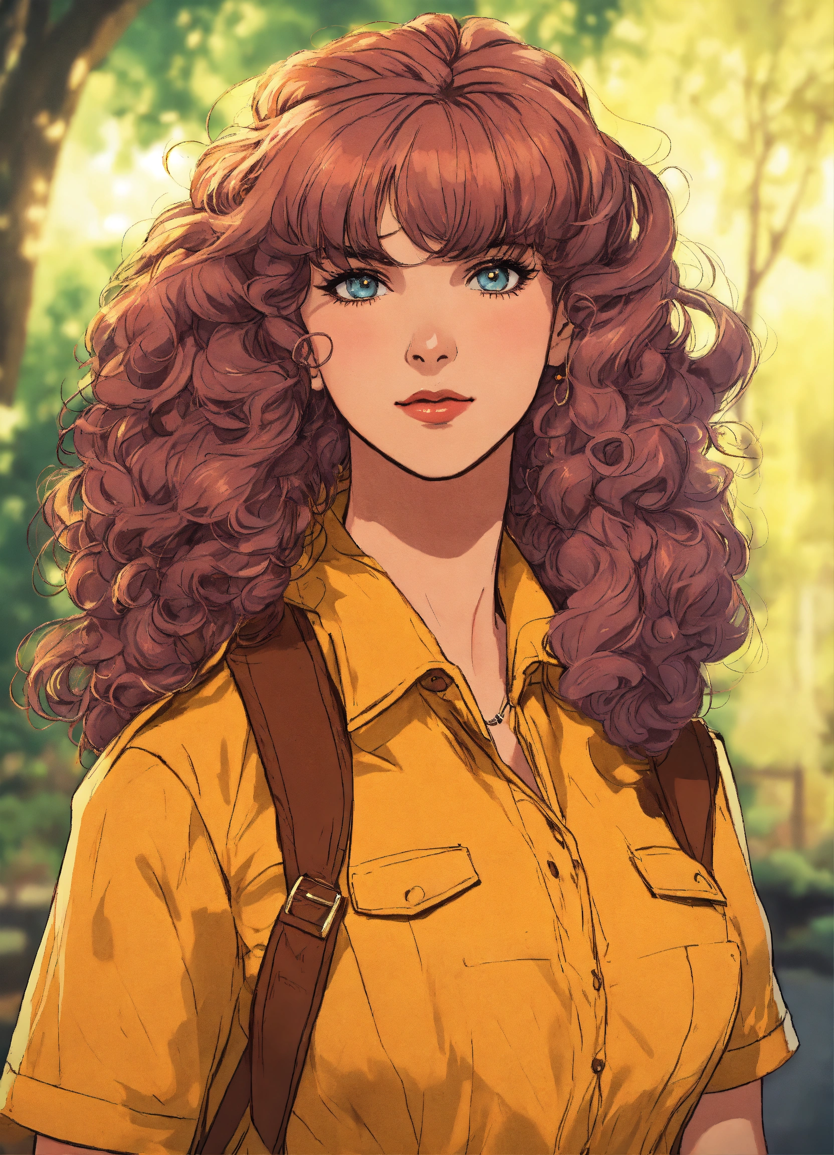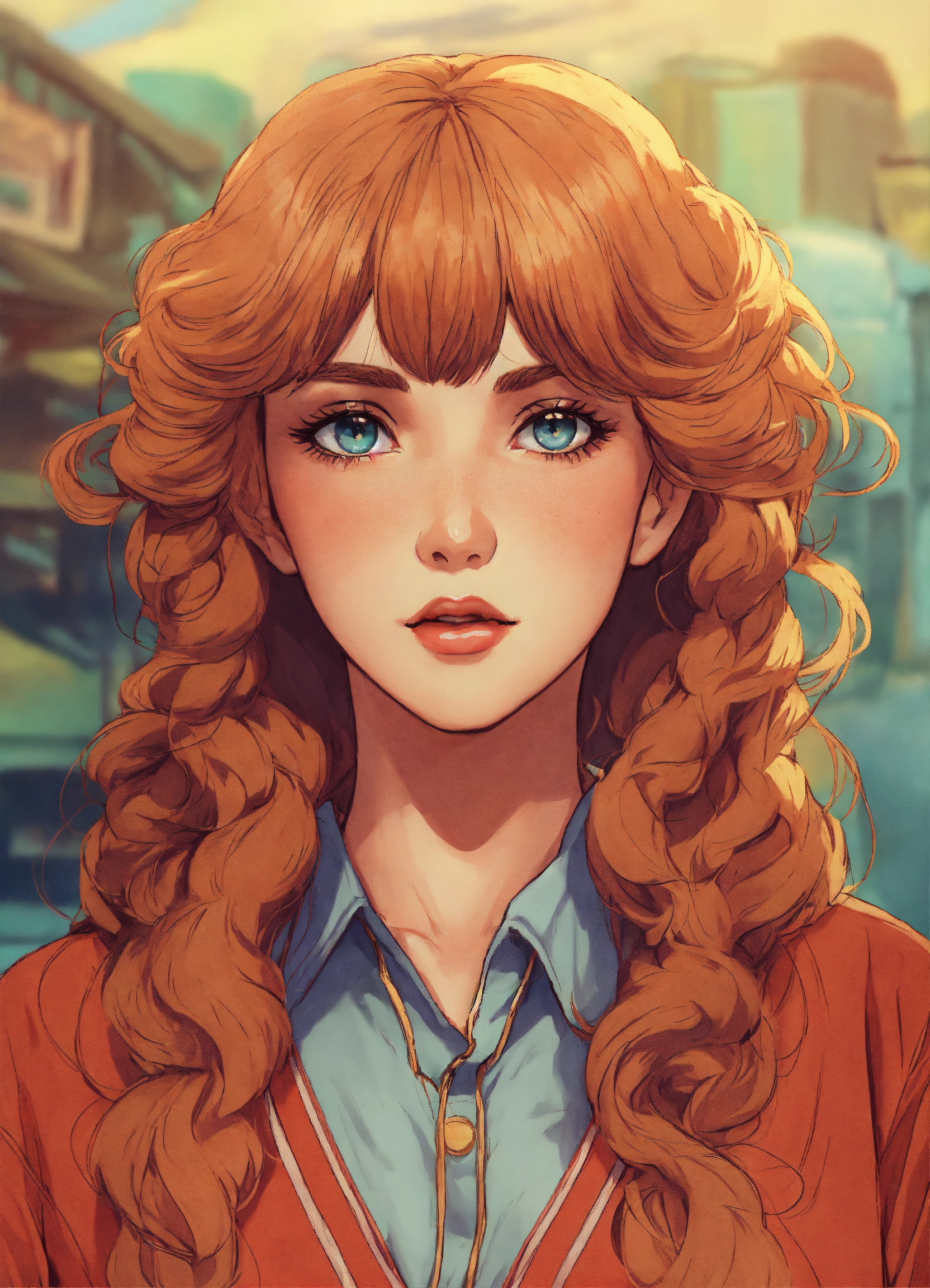 Uma garota com cabelos longos e lisos no estilo vintage de anime dos anos 80 de frente