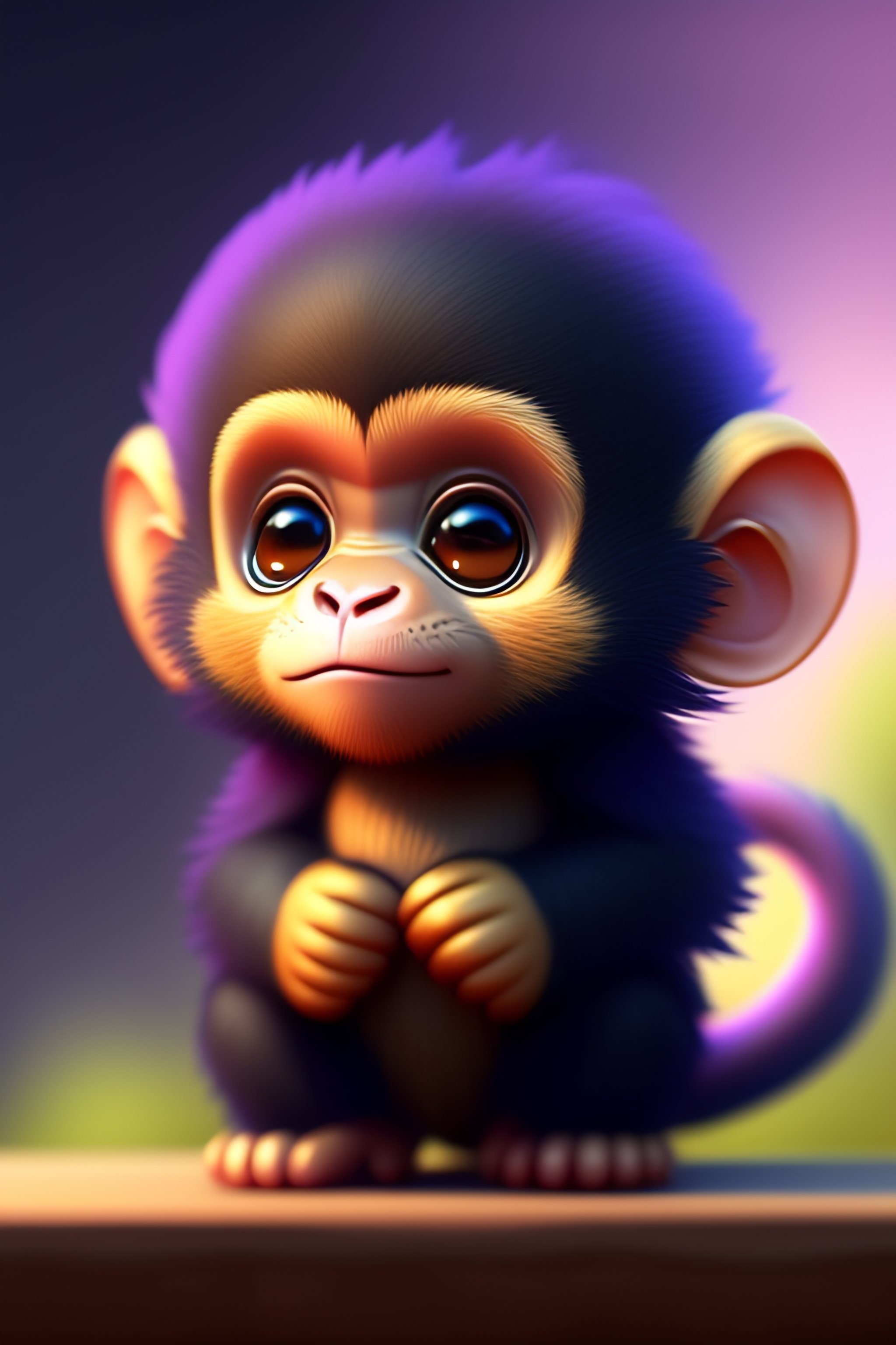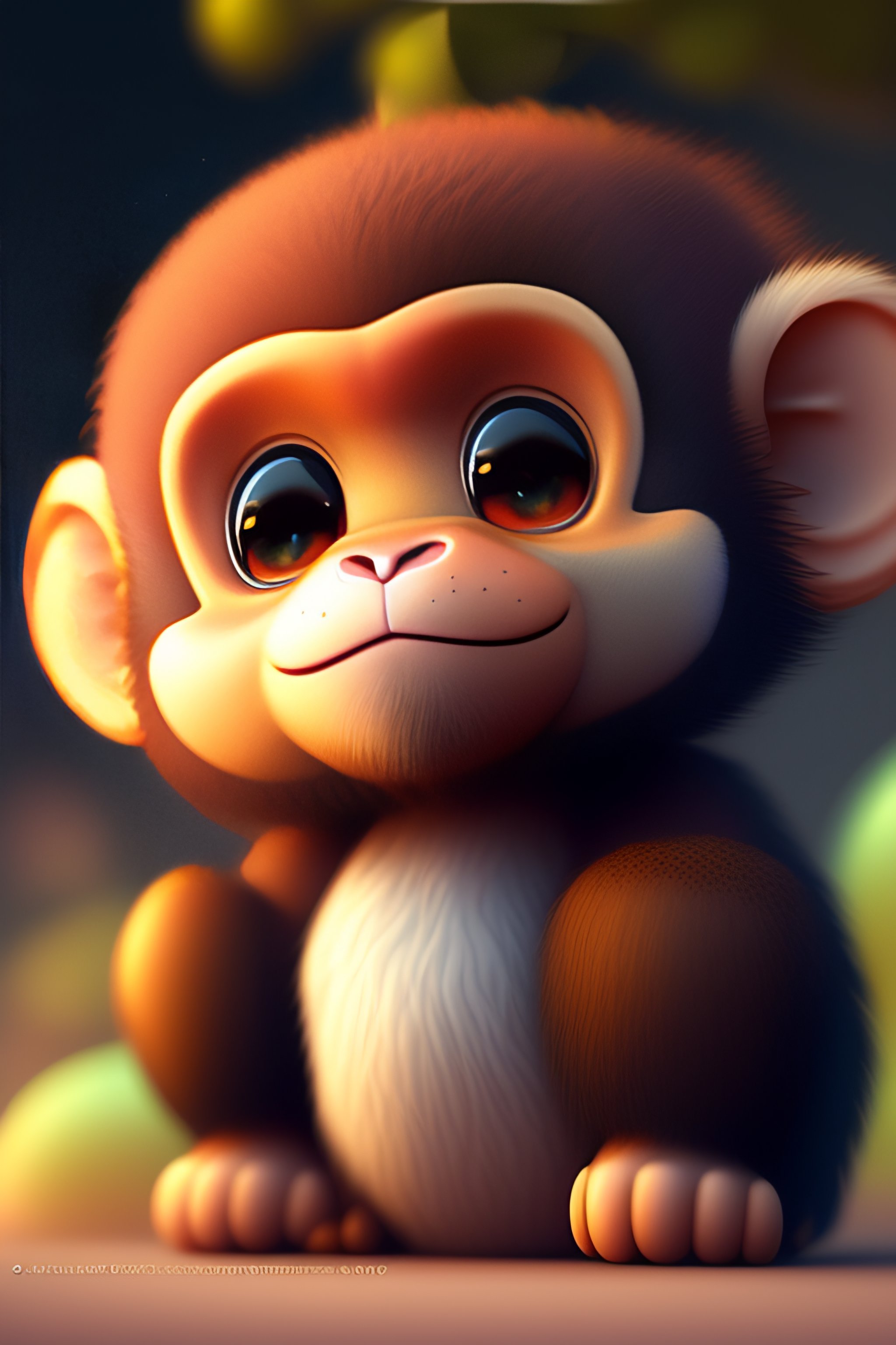 Cute and adorable cartoon fluffy baby monkey, fantasy, dreamlike, surrealism, super cute, trending on artstation