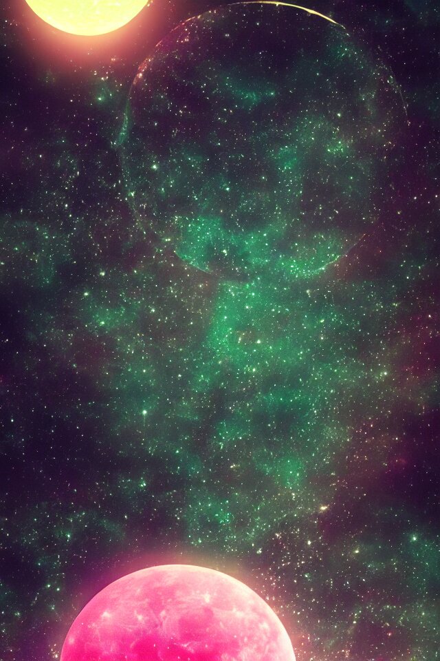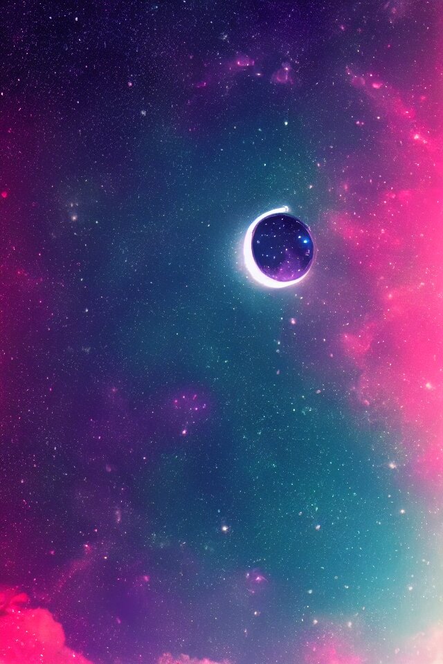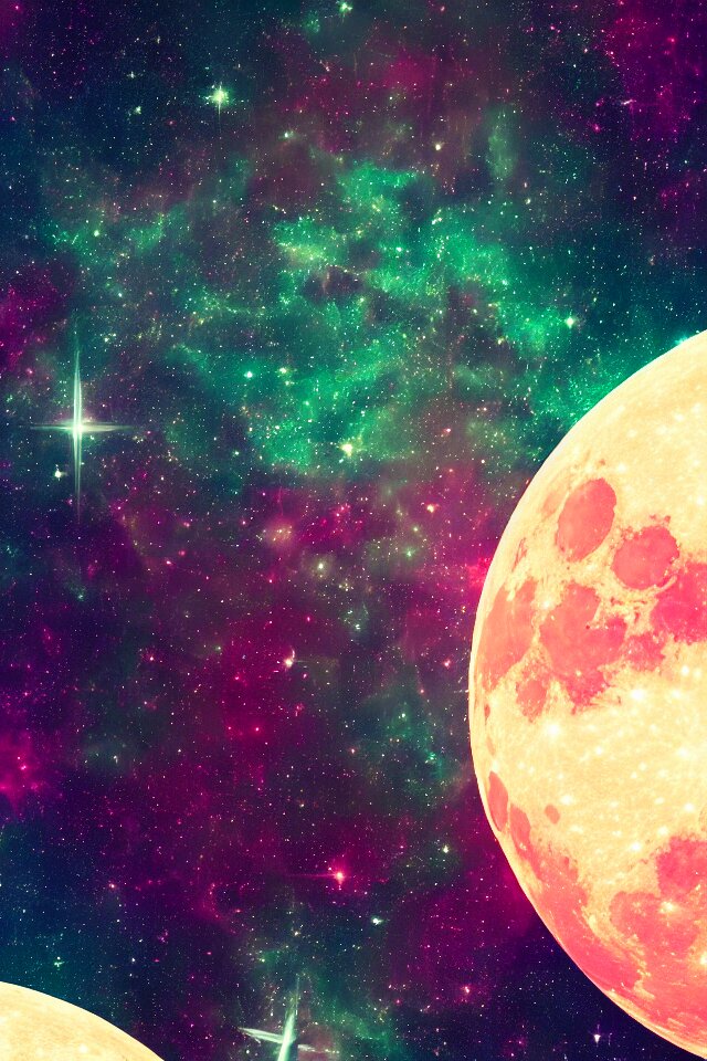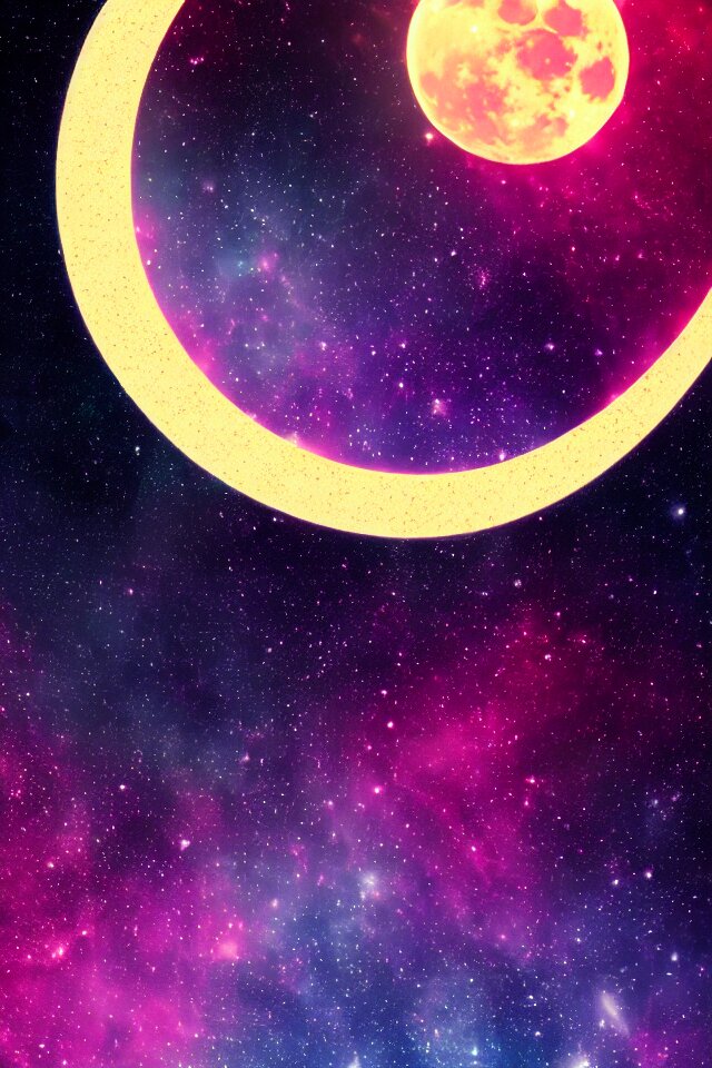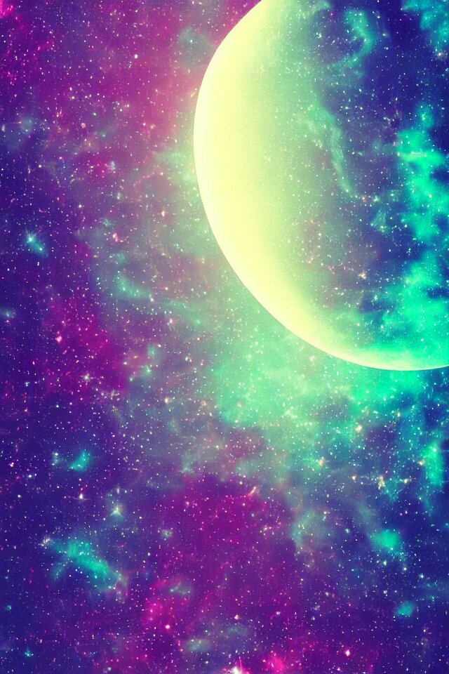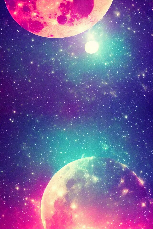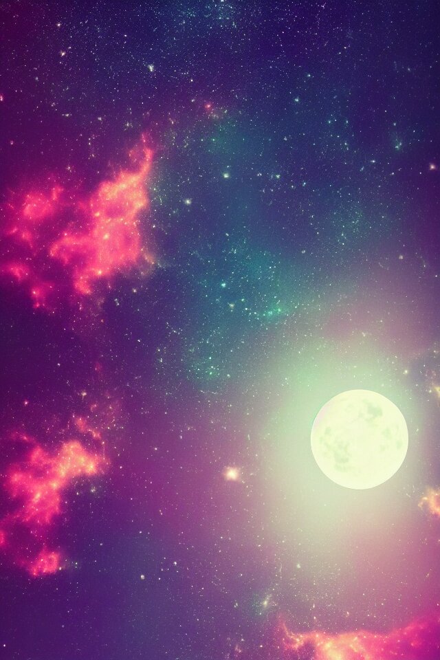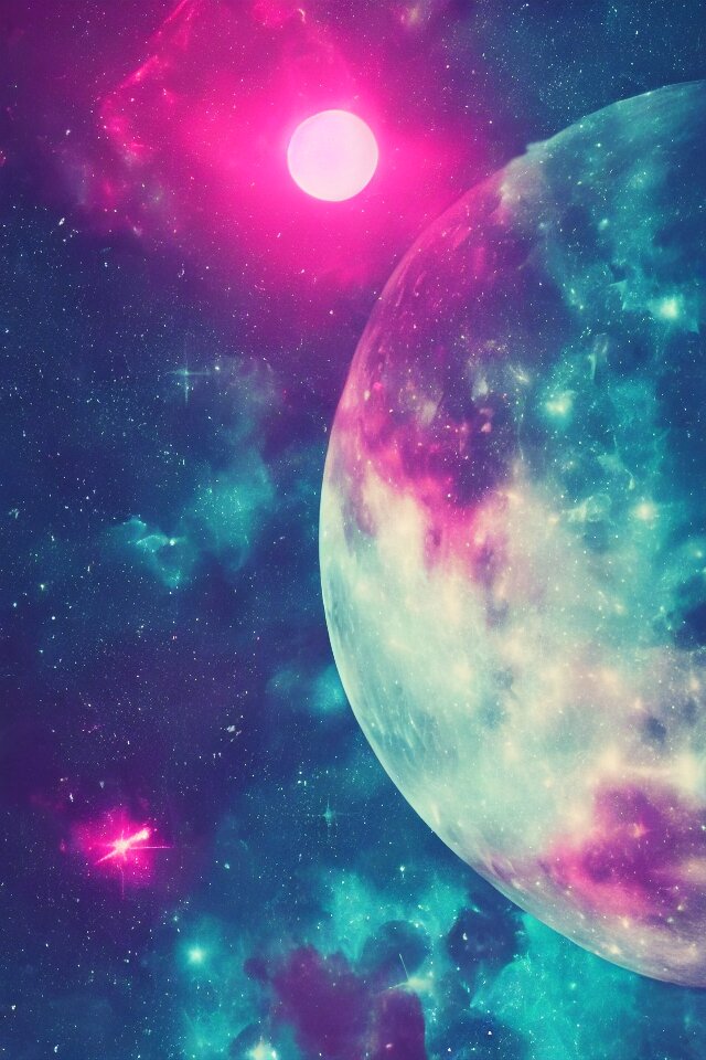 The neon vaporwave moon on a space background, stars and nebula, phone wallpaper, highly detailed, 4 k