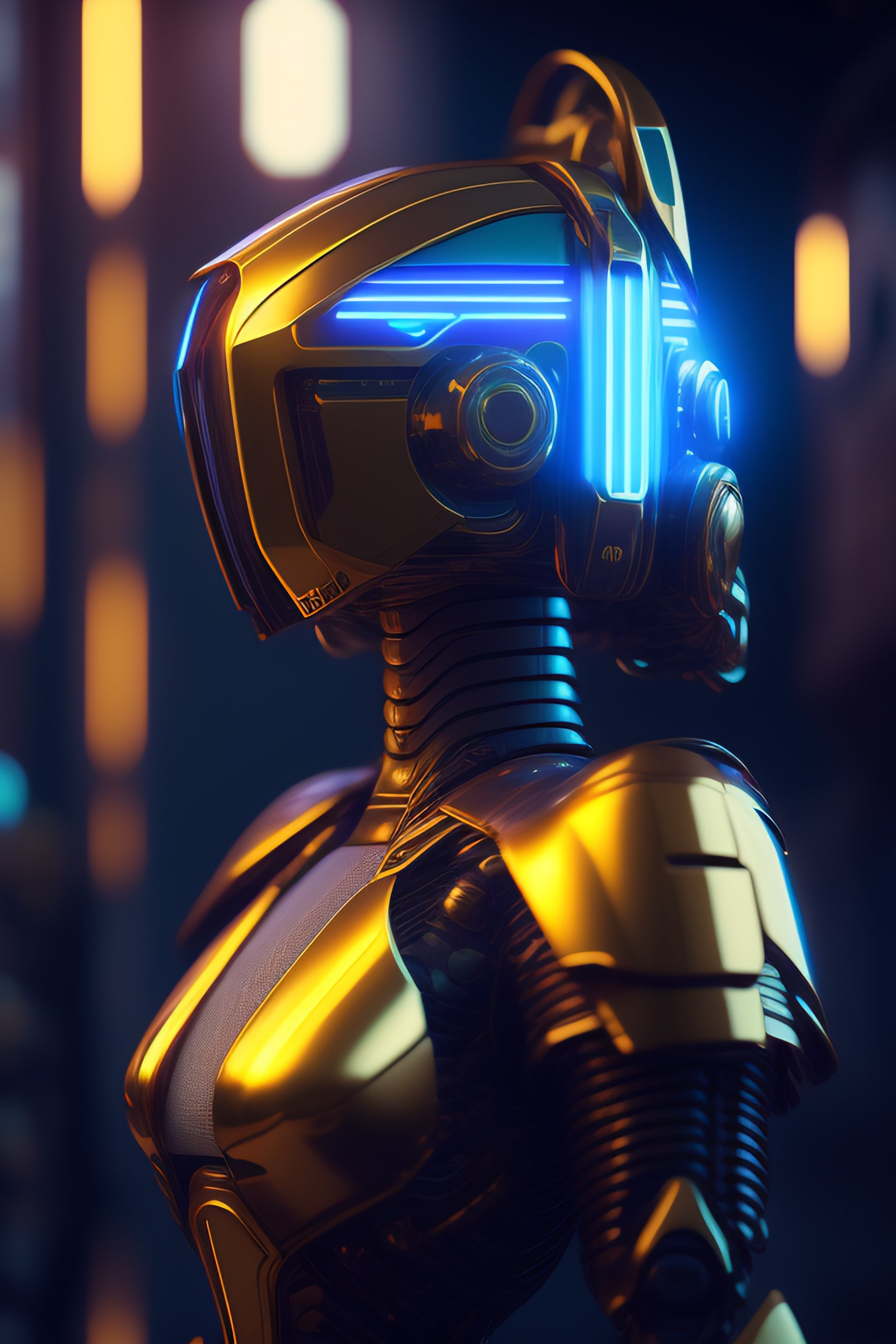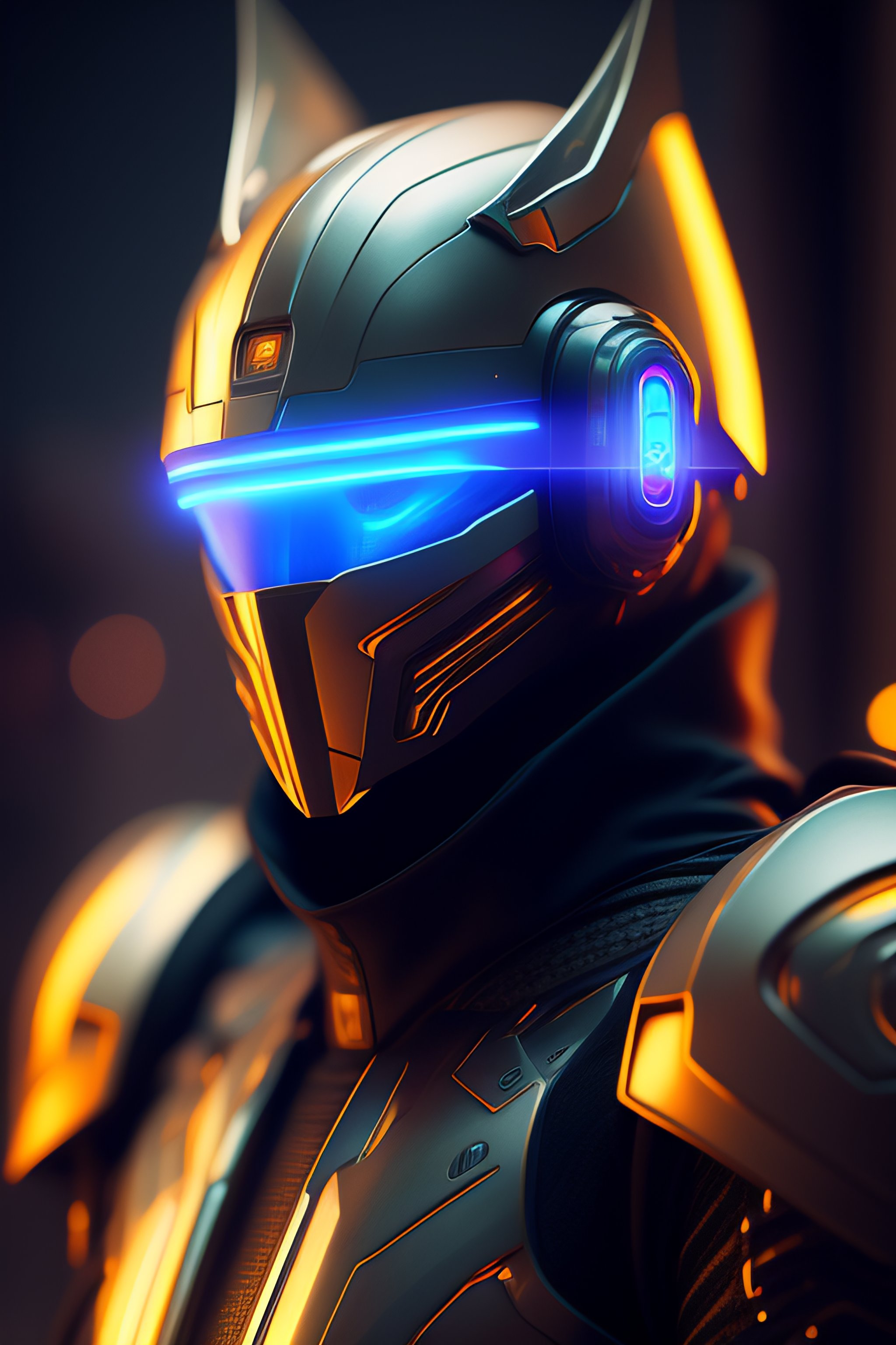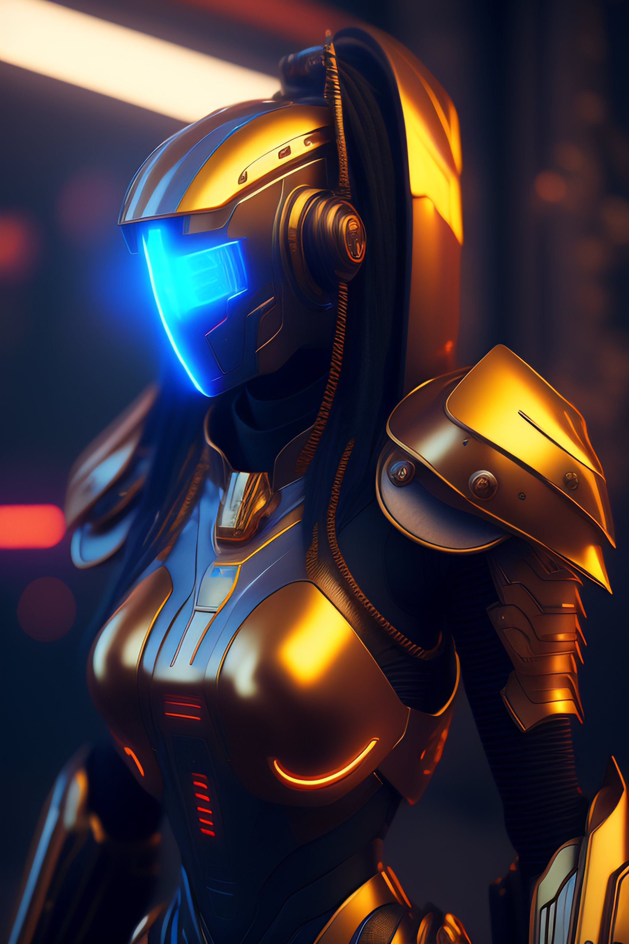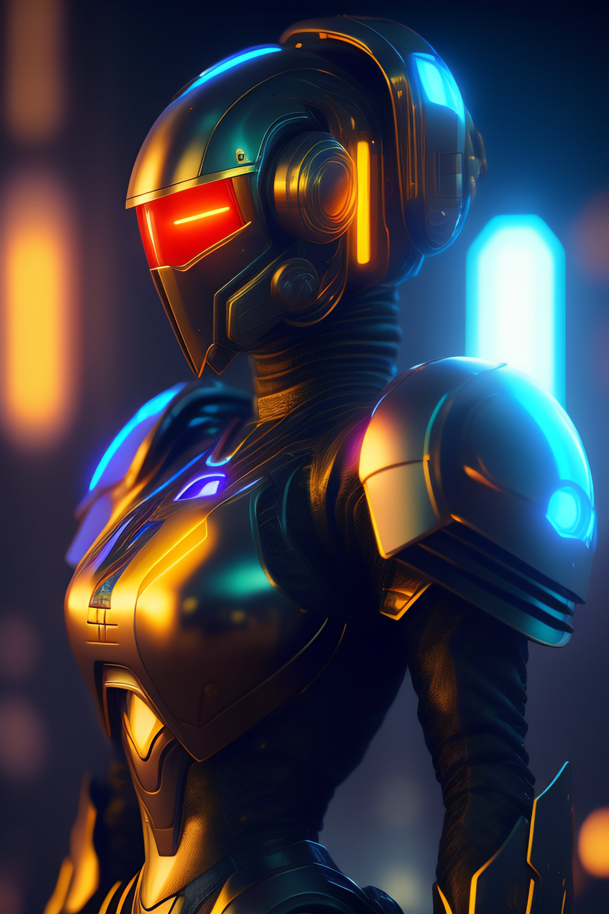 Robot cyberpunk cyborg with glowing visor as a realistic scifi cyberpunk knight, medium shot, intricate, unreal engine, cozy indoor lighting, artstation, detailed, digital painting, cinematic, character design by mark ryden and pixar and hayao miyazaki, unreal 5, daz, hyperrealistic, octane render