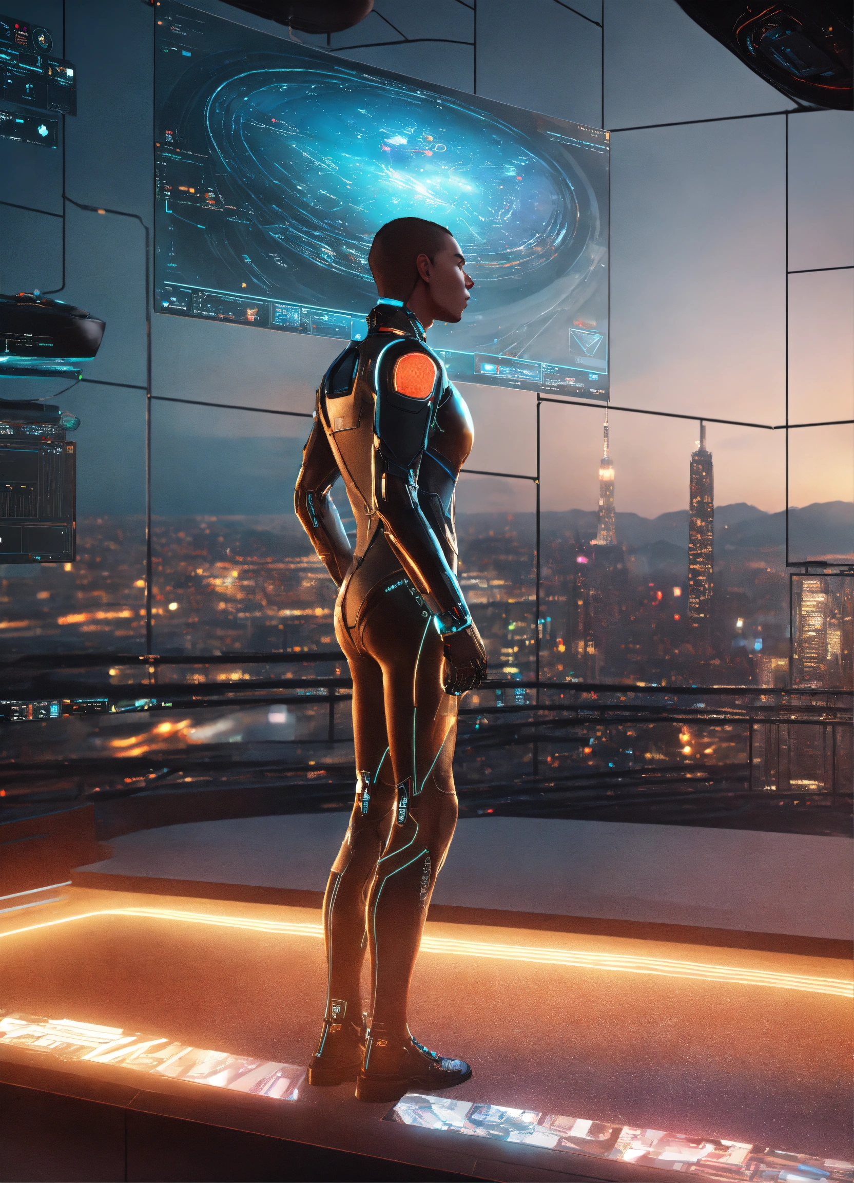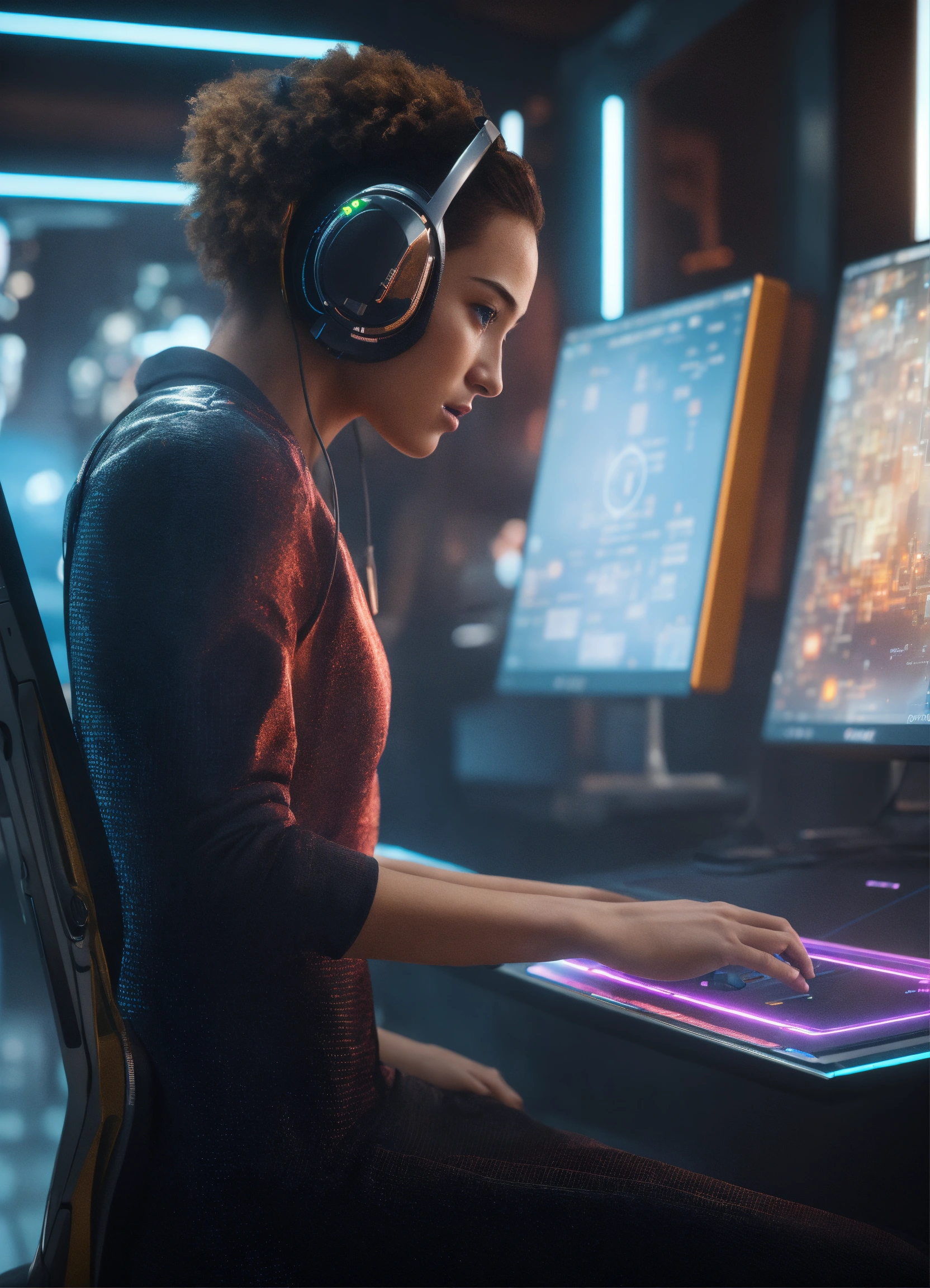 Generate a hyper-realistic 4k image showcasing a futuristic human-computer interaction with collect chat, emphasize a user-friendly interface and cutting-edge technology