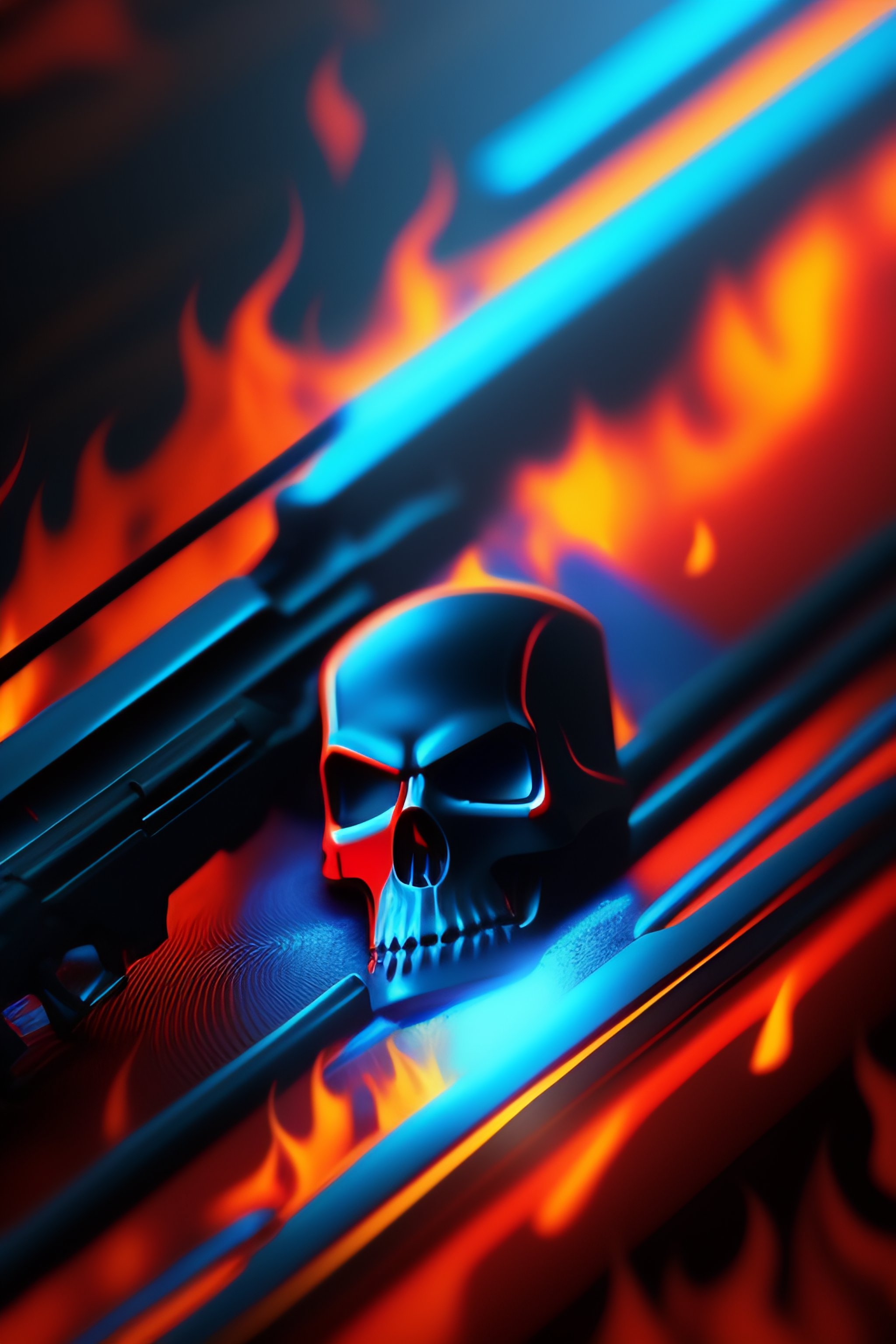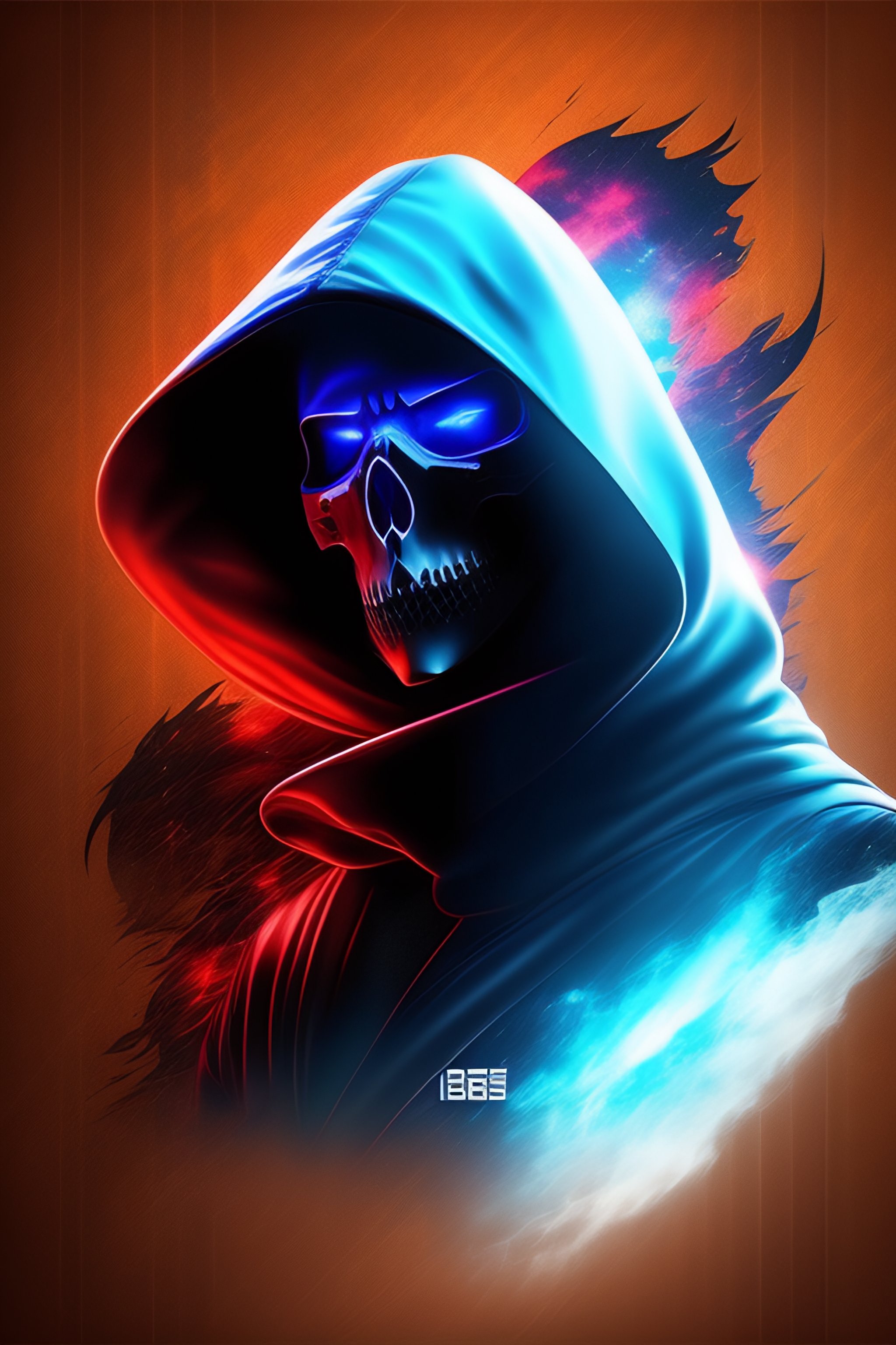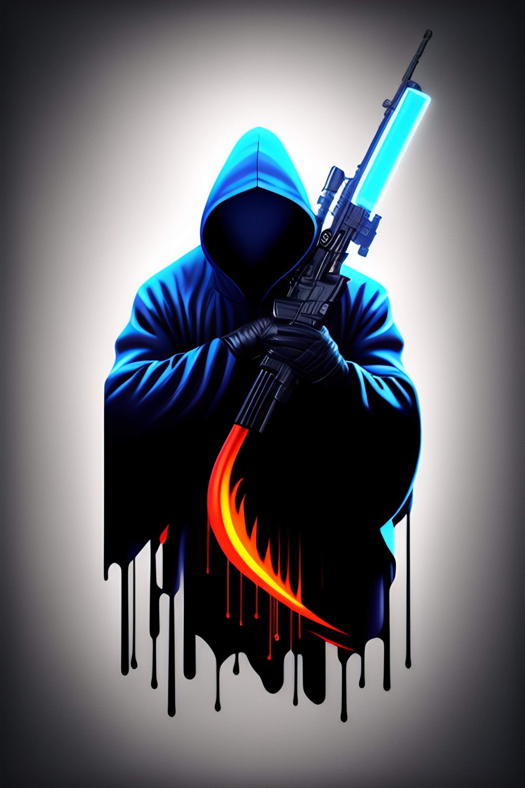Gamer tag logo, (the boss sniper), hooded grim reaper, sniper killing blood flame face action, realistic, blue