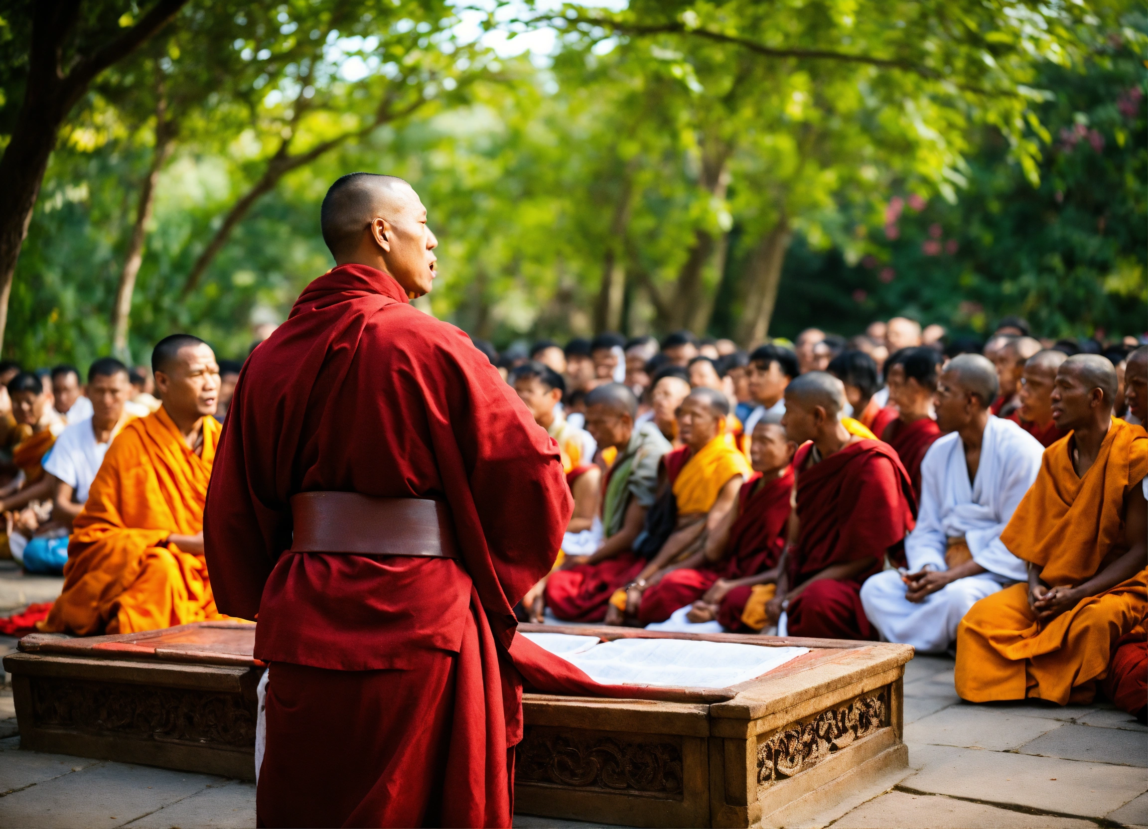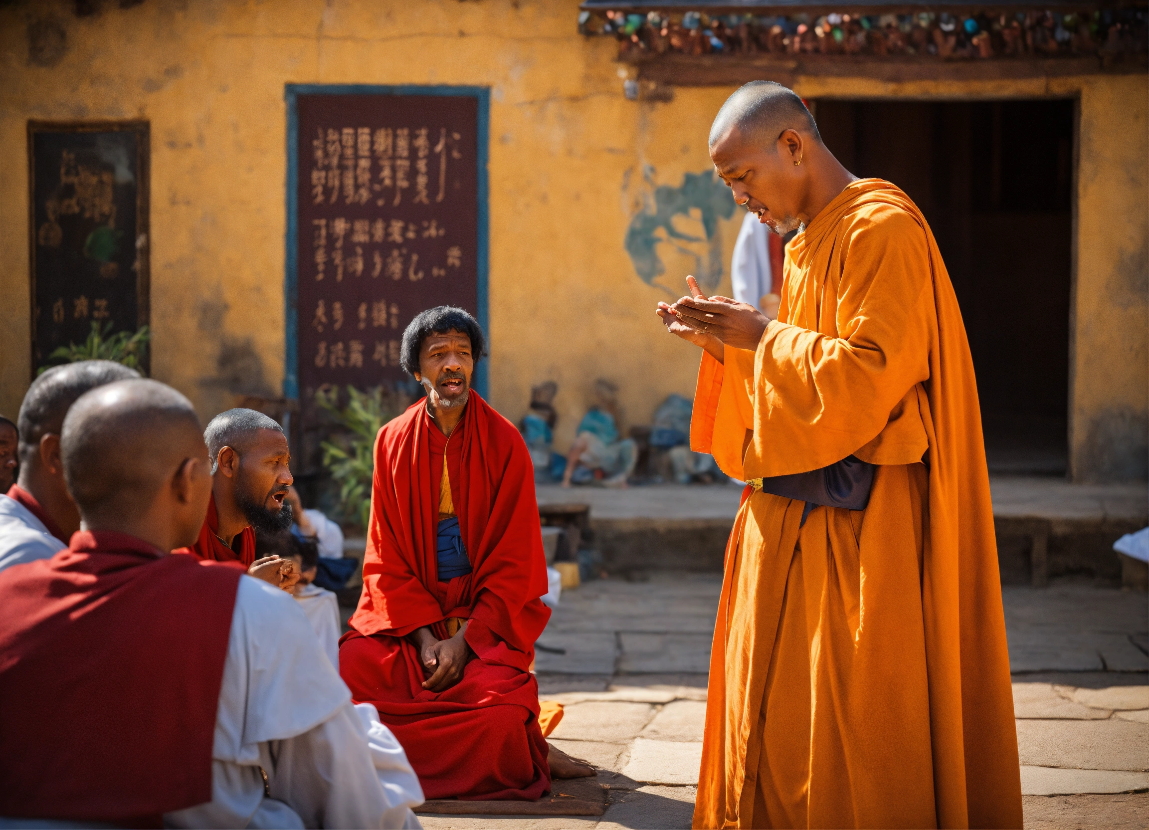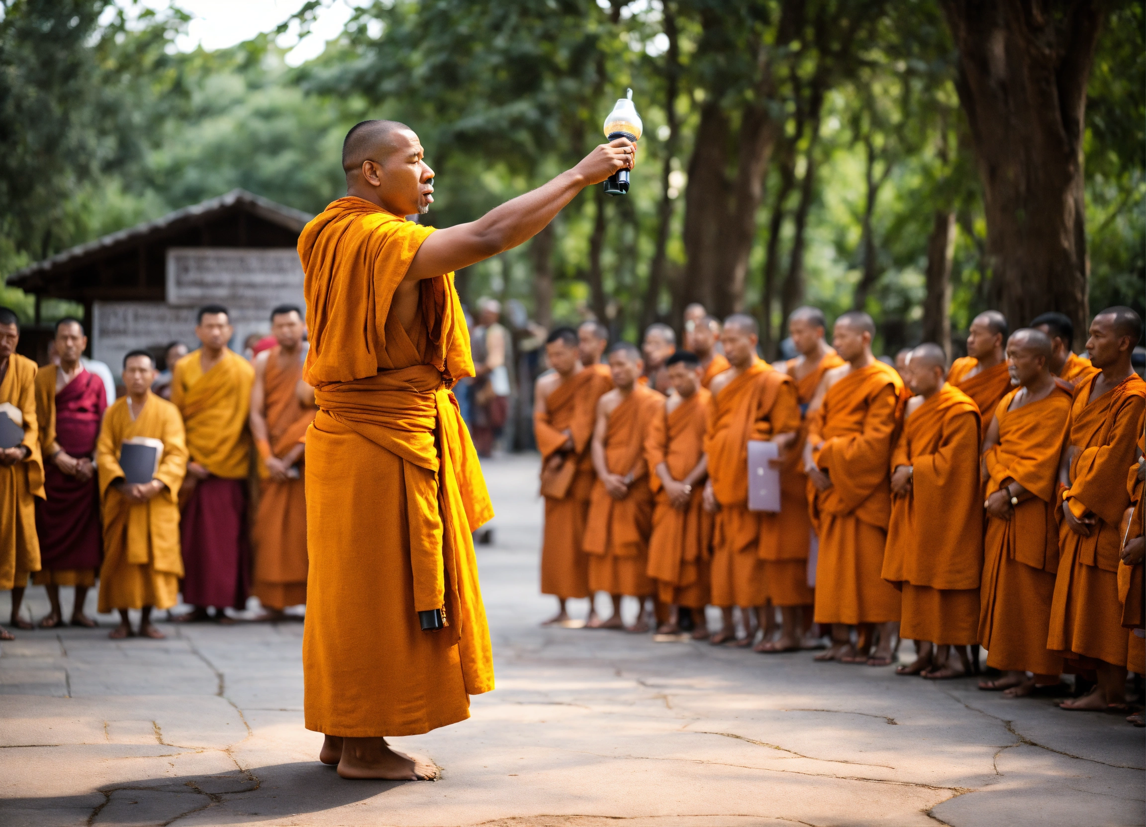 Monk preaching to people
