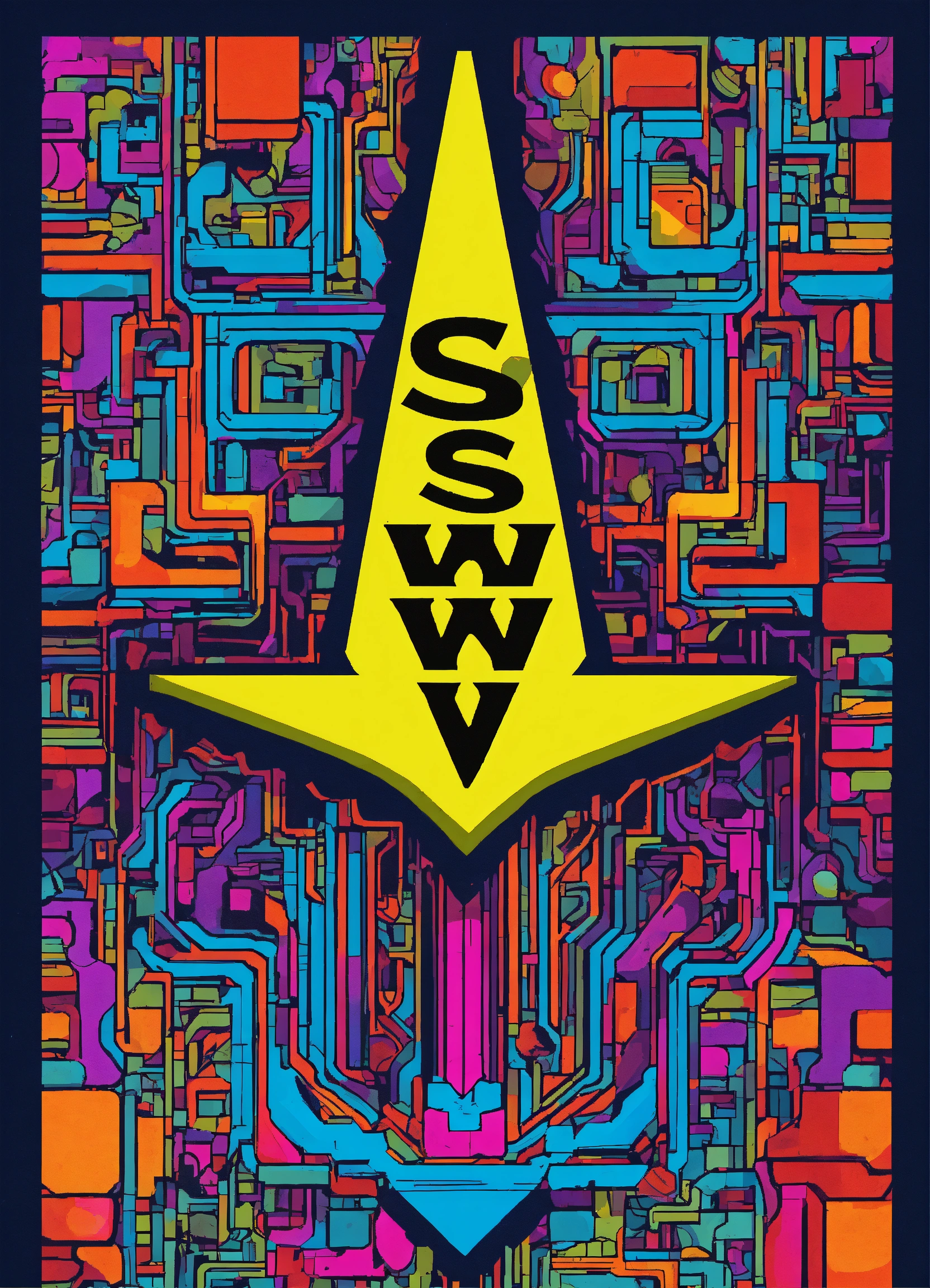 Genera un logo de "sw" con letra comic sans ms con un fondo estilo grafiti