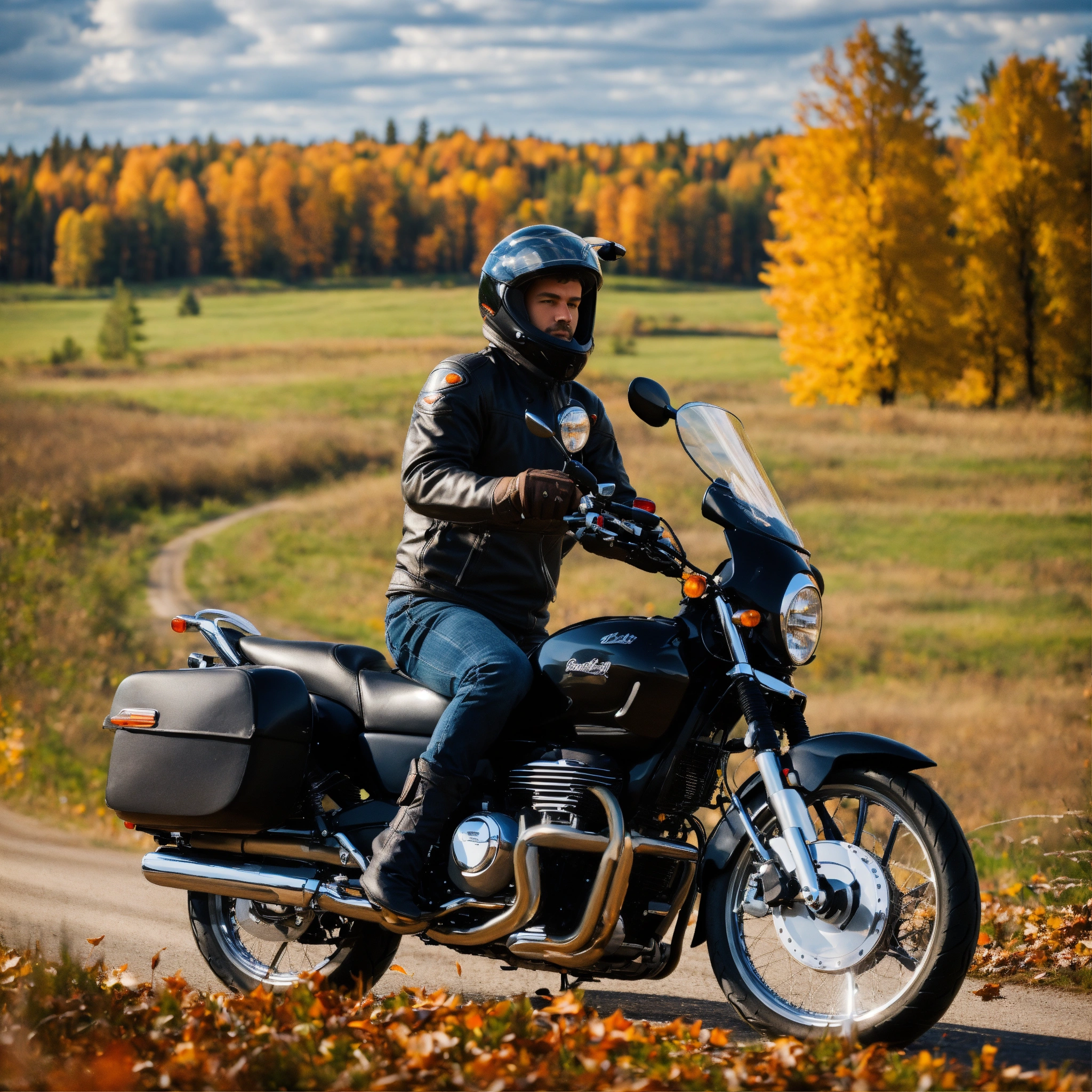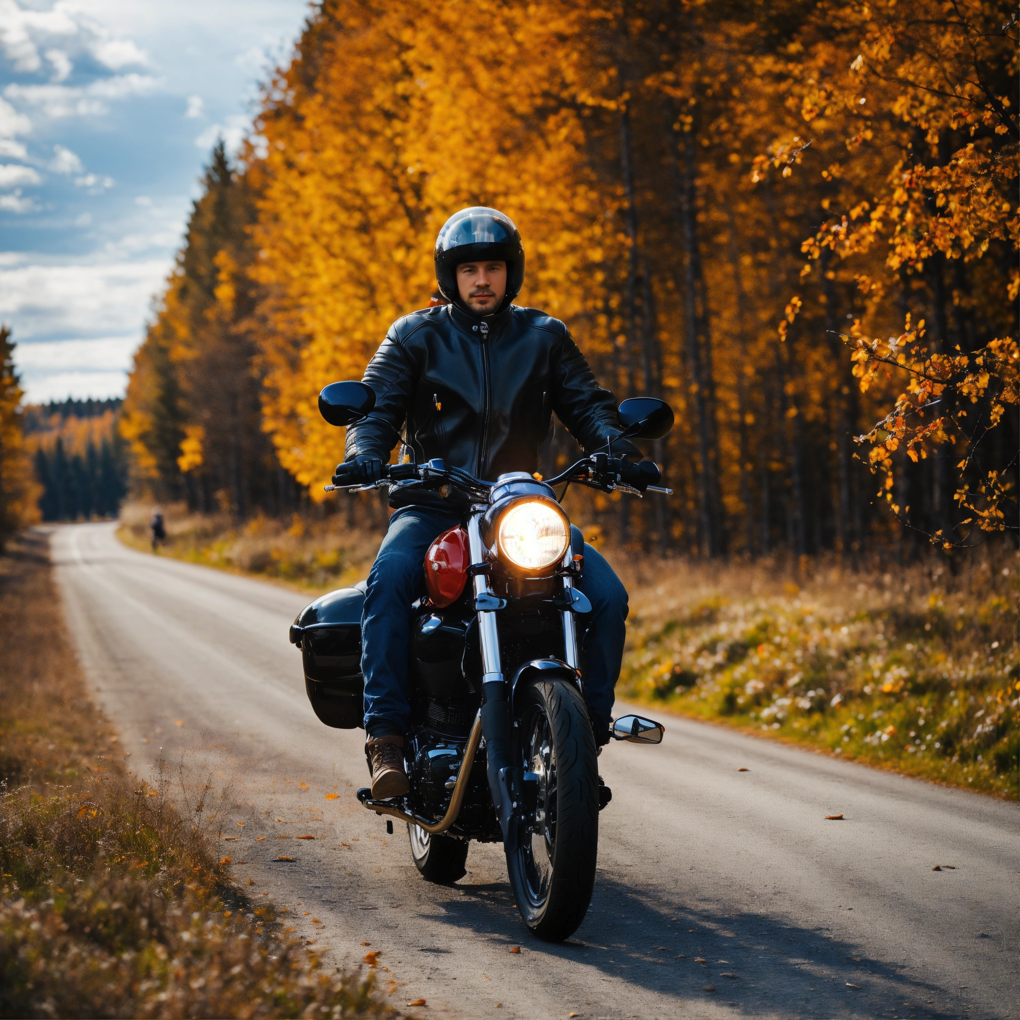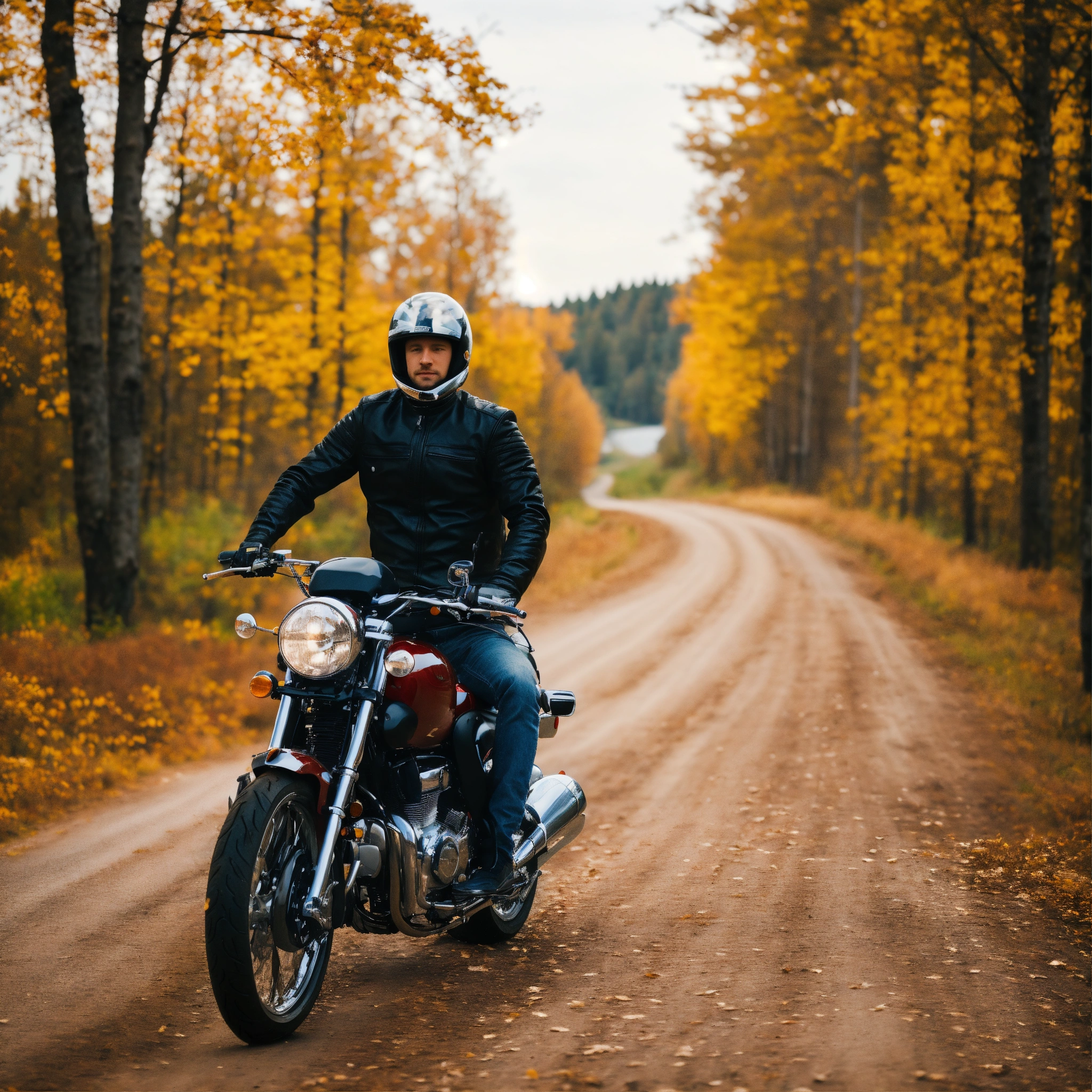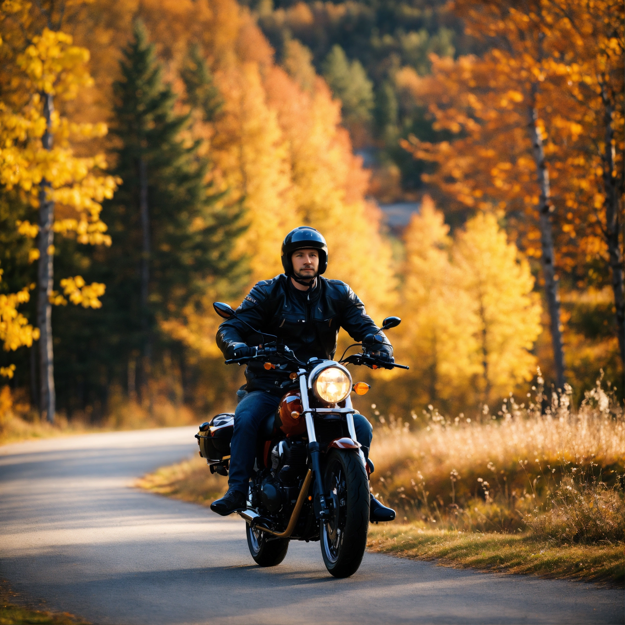 Polish guy riding hos motorcycle on a warm autumn day in swedish countryside