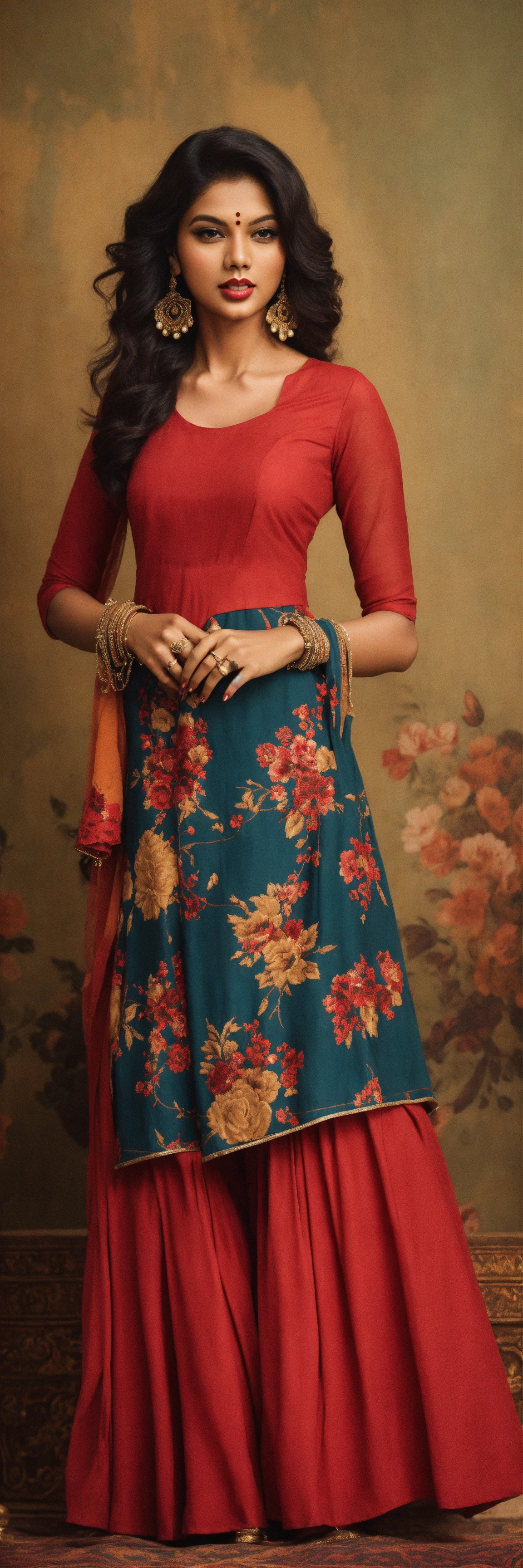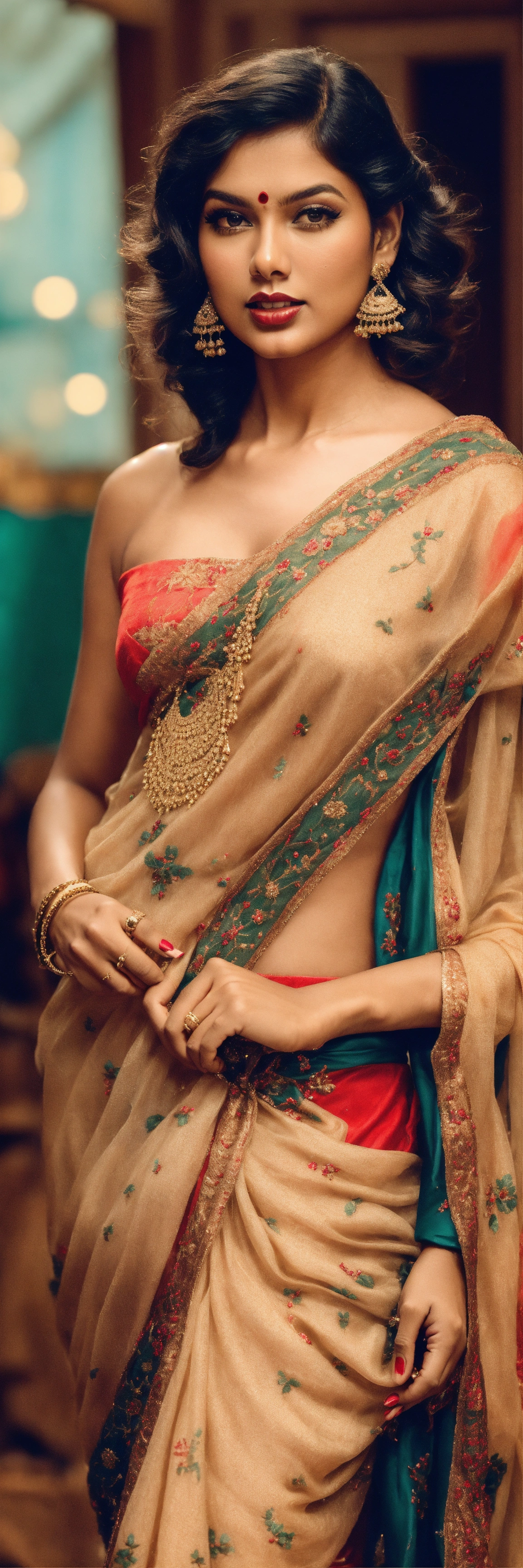 Indian woman in her 30s in vintage clothing with exquisite style looking like taylor swift